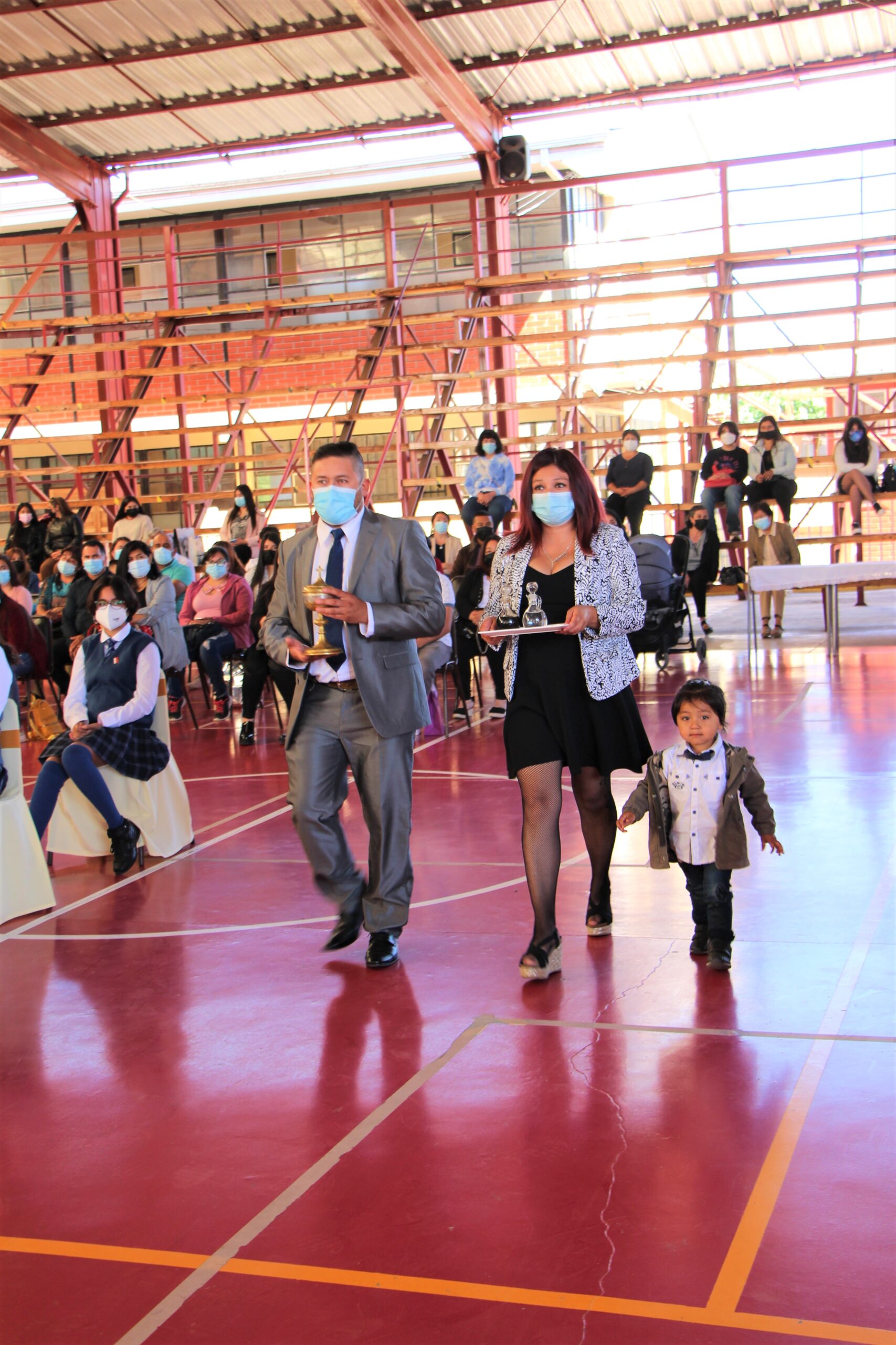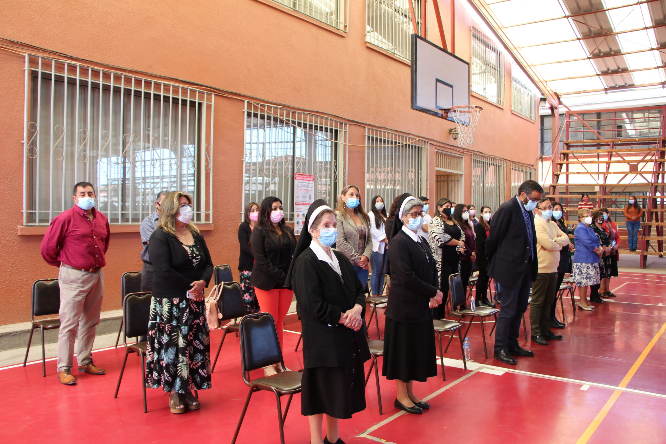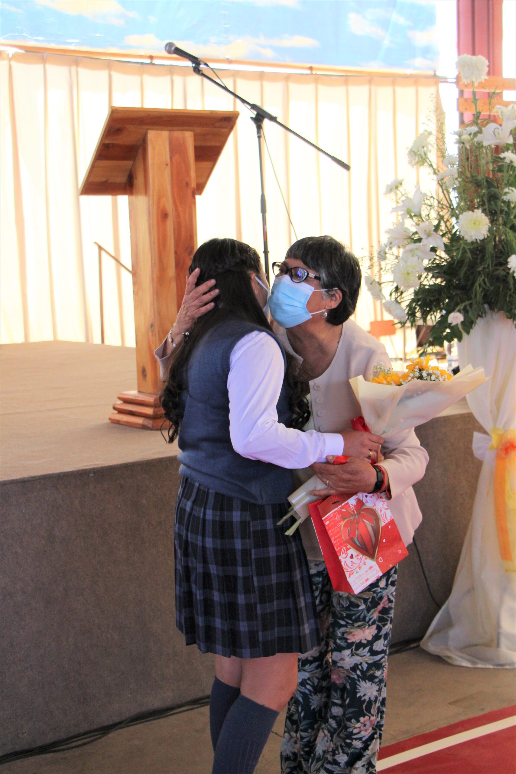 La ceremonia fue presidida por el Padre Juan Carlos Godoy y contó con la presencia de nuestro Director, señor Jorge Gormaz Barrientos, además de profesores, asistentes de la educación, padres y apoderados de las estudiantes de octavo. La jefatura estuvo a cargo de la Profesora Graciela Moreno, quien con profunda entrega logró guiar y transmitir el cariño a pesar de la distancia debido a la Pandemia.