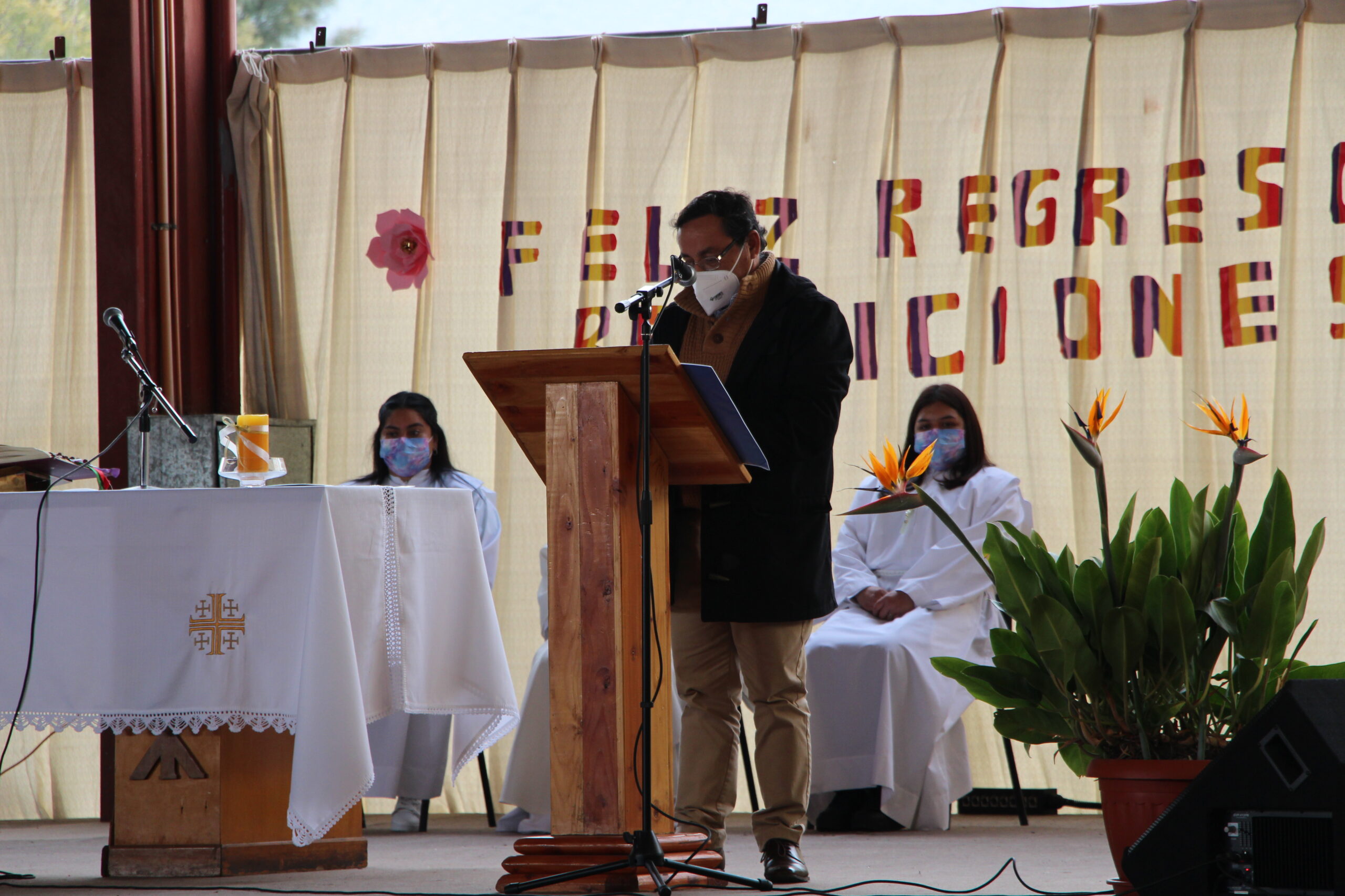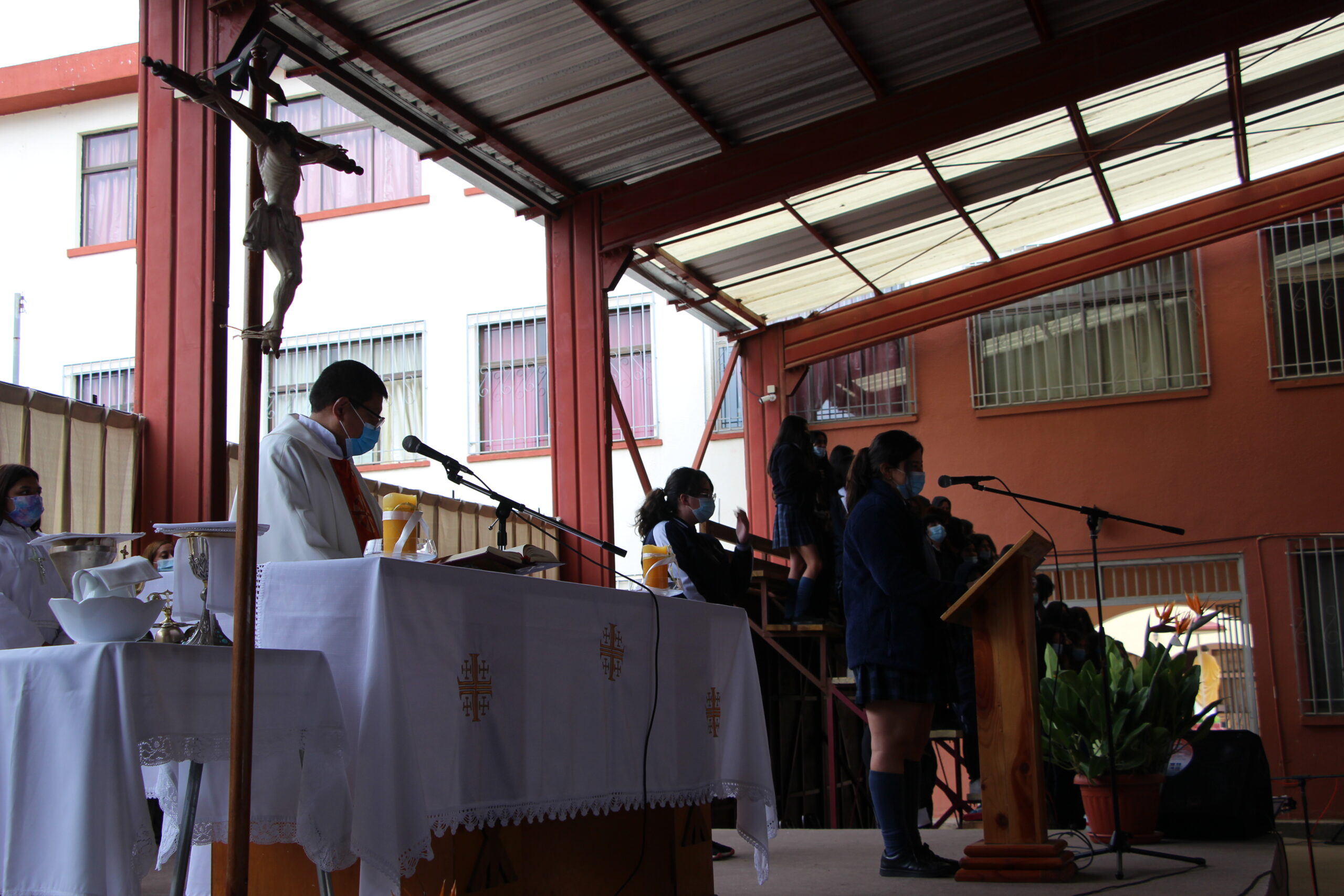 El Padre Pedro de la Paz, fue nuestro Sacerdote Celebrante, con quien entregamos oración a nuestras familias, estudiantes, apoderados, profesores y asistentes de la educación , con todas las intenciones personales que tenemos para esta segunda parte del año, donde emprendemos nuevos sueños y desafíos, juntos y unidos en la oración.