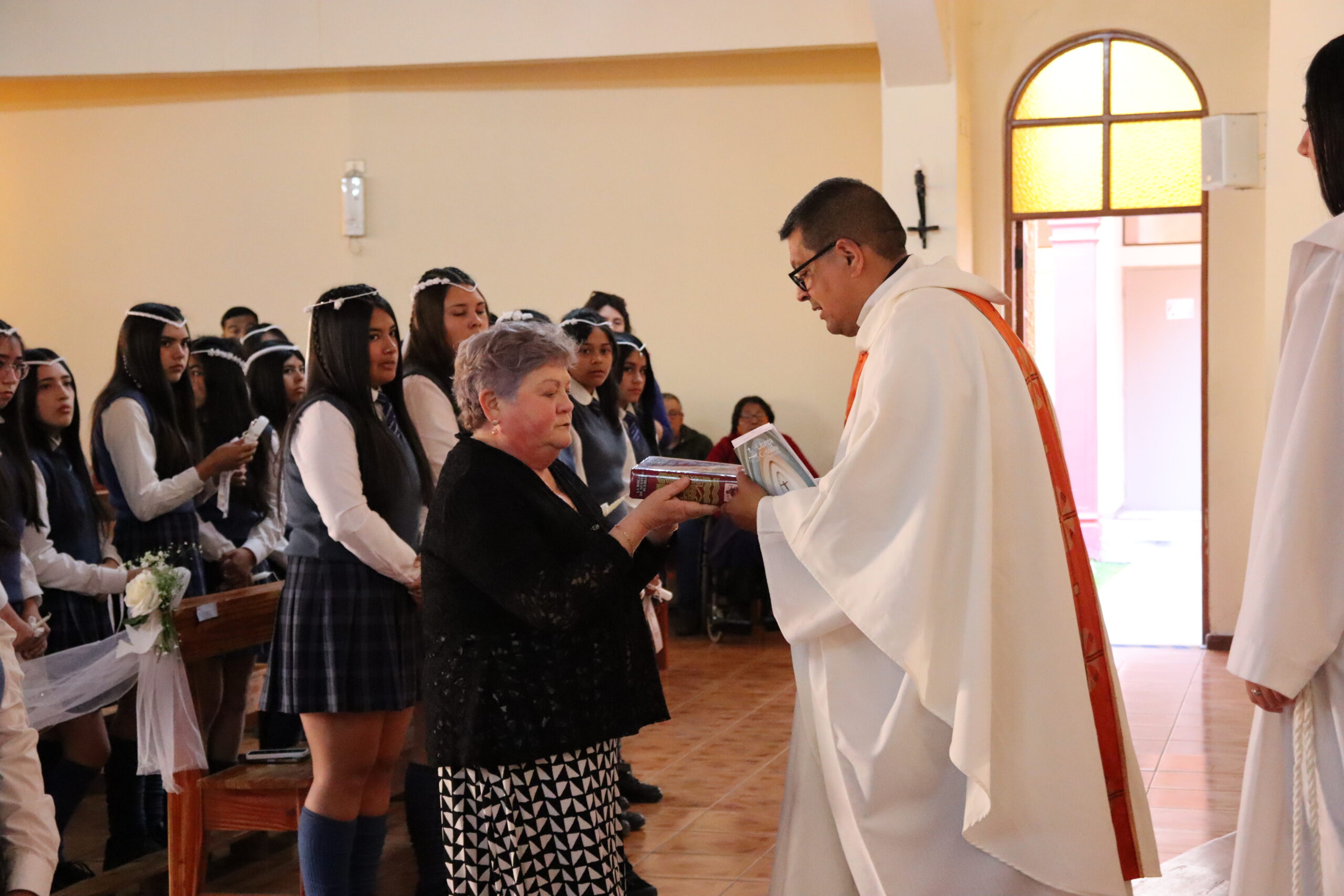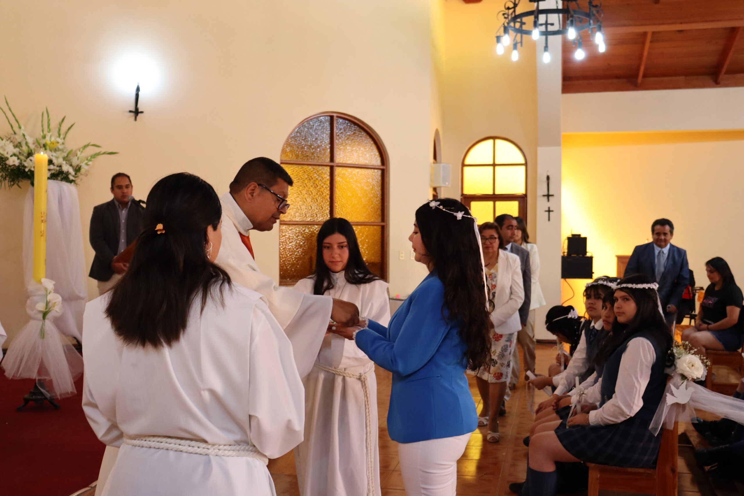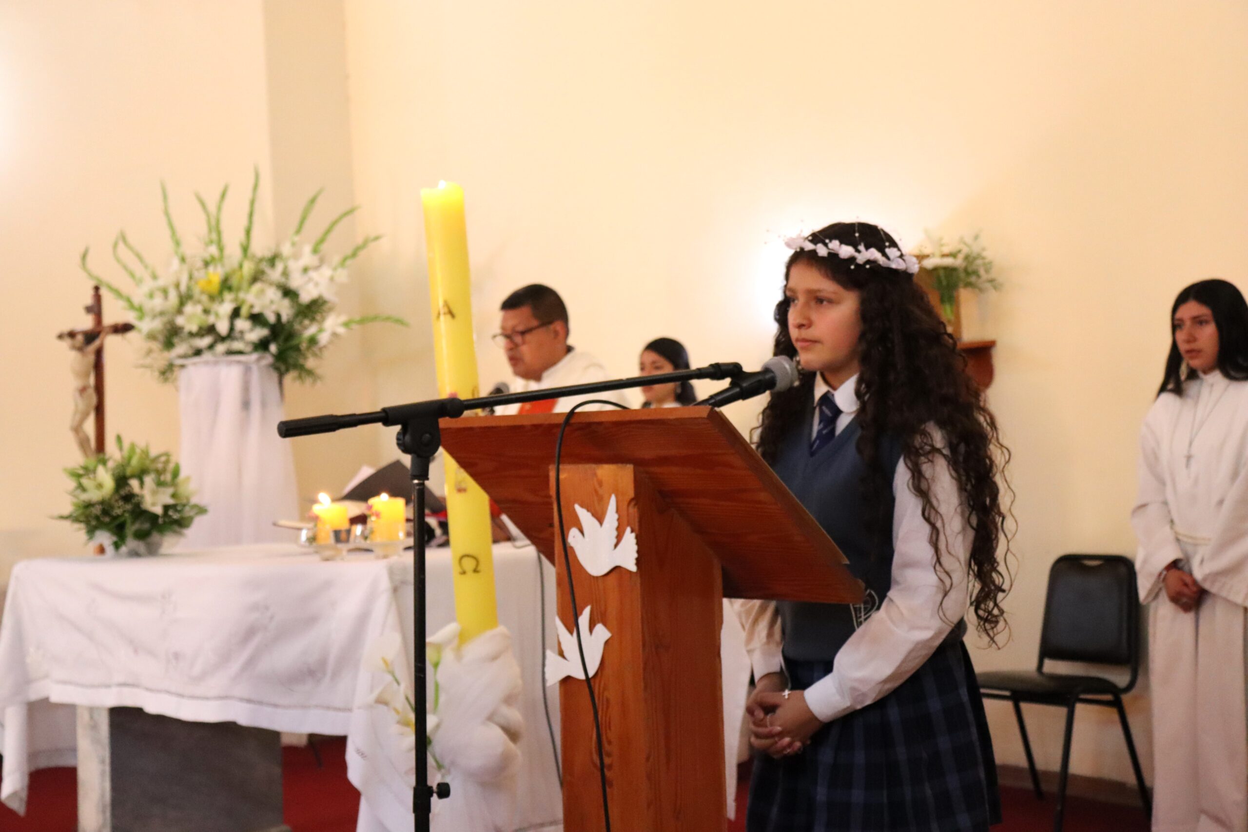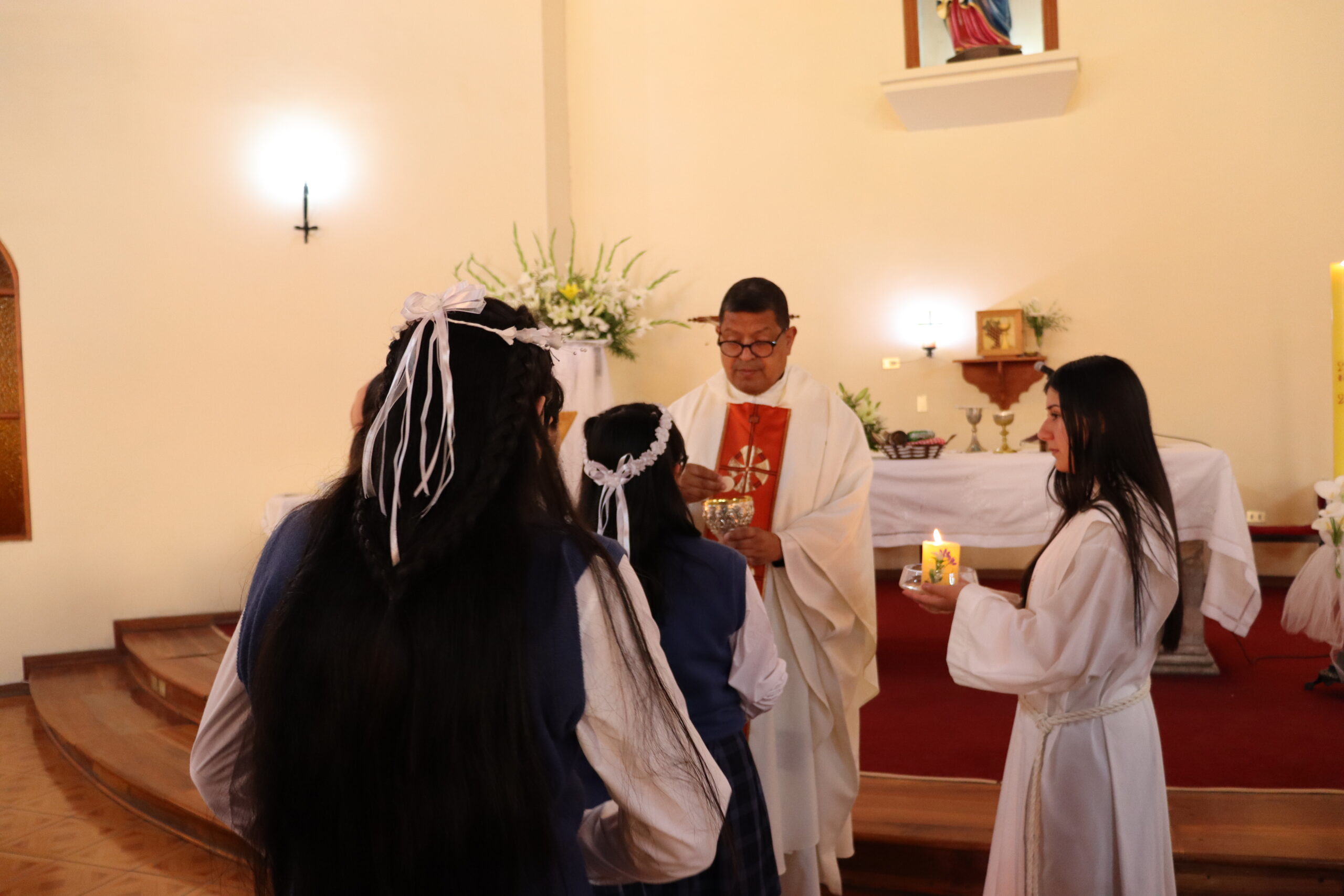 Durante la Eucaristía se agradeció a las catequistas quienes generosamente realizan esta tarea de fe, instruyendo el conocimiento del Señor, de su Palabra, en la formación y fortalecimiento de su fe, para abrir hoy las puertas del corazón y de su ser y recibirlo por primera vez. A los padres se les agradece por el apoyo y presencia para ratificar que la familia, los padres son los primeros educadores de los hijos en la fe. Deseamos que el Señor les acompañe y bendiga siempre en la misión de formar, educar y acompañar a sus hijos e hijas.