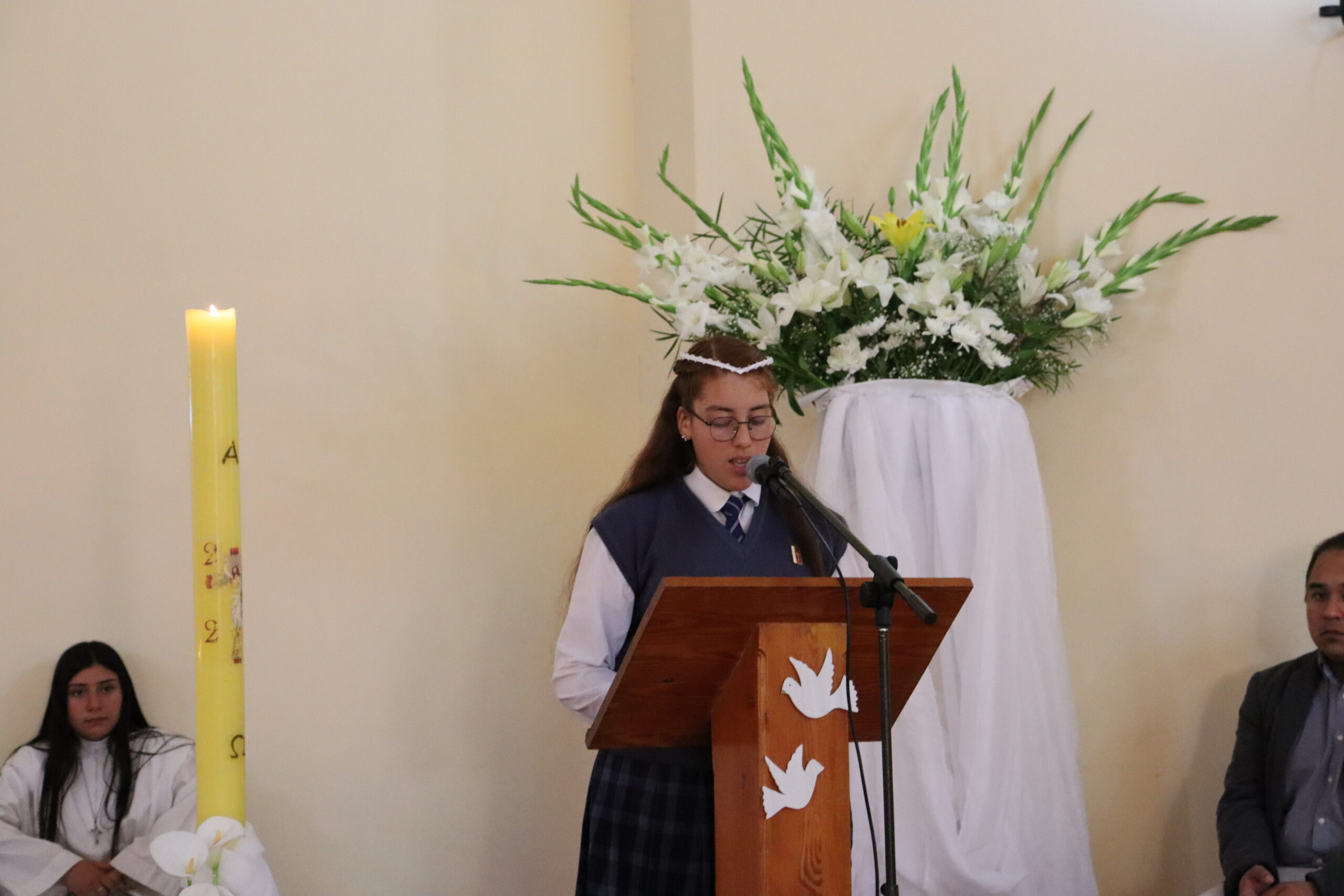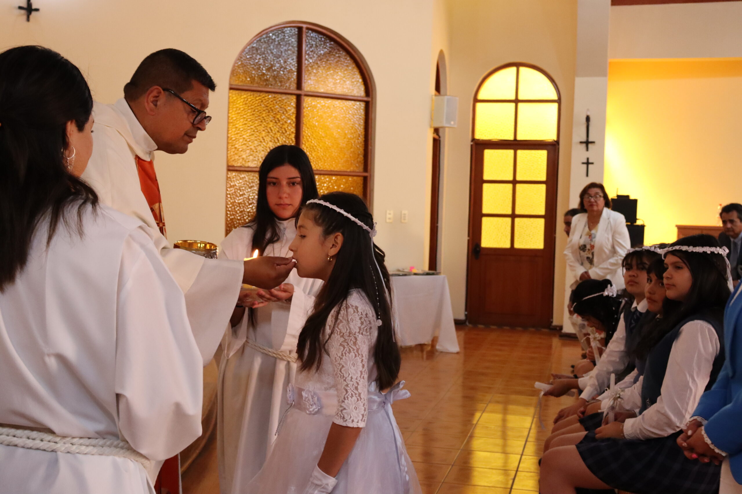 El día 5 de noviembre vivimos una eucaristía de la mano del Padre Pedro de la Paz, donde 52 estudiantes, una funcionaria y una hija de funcionaria, realizaron su primera comunión en la capilla de nuestro establecimiento, acompañadas de sus catequistas, familiares y amigos que compartieron y celebraron la unión entre el hombre y Dios.