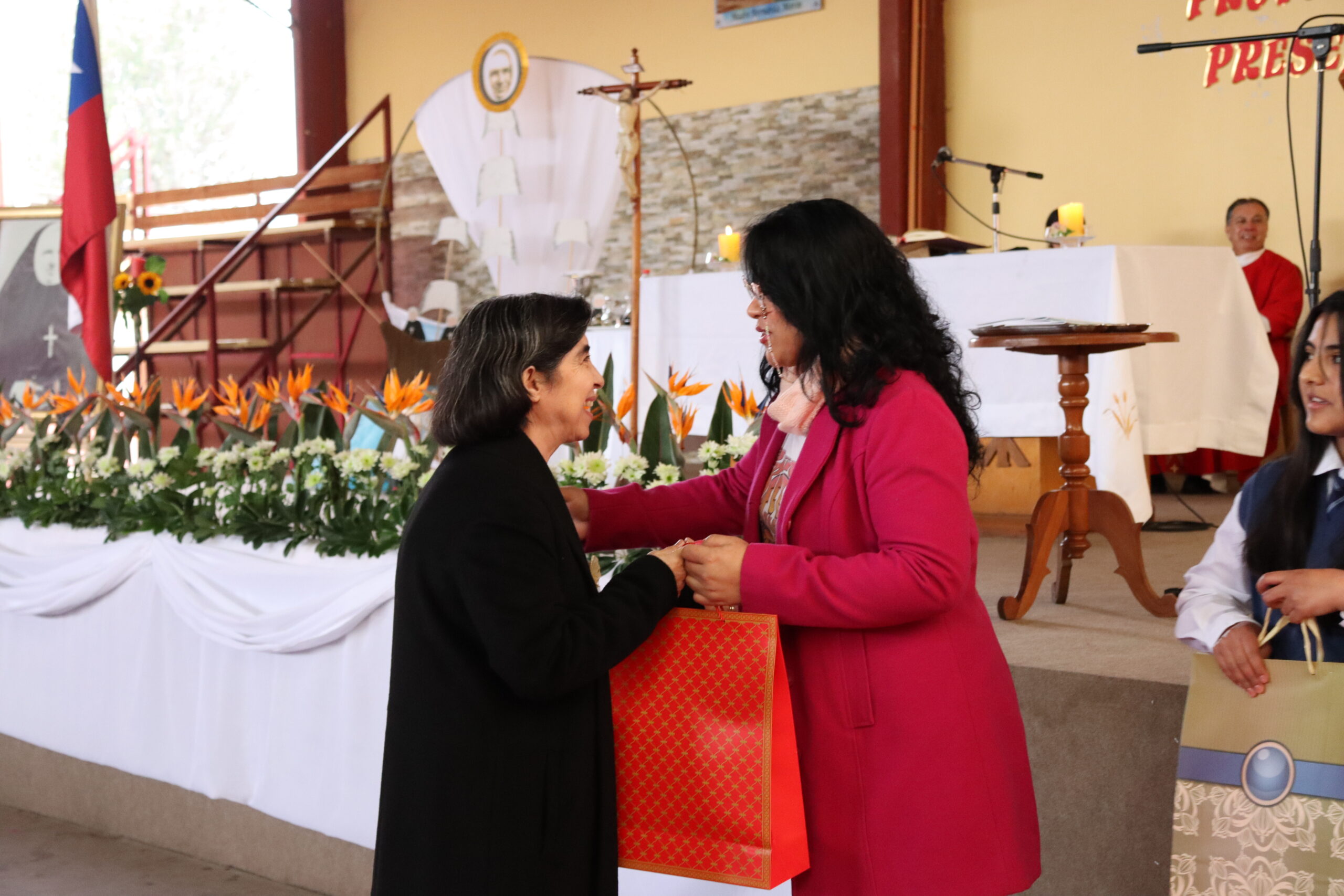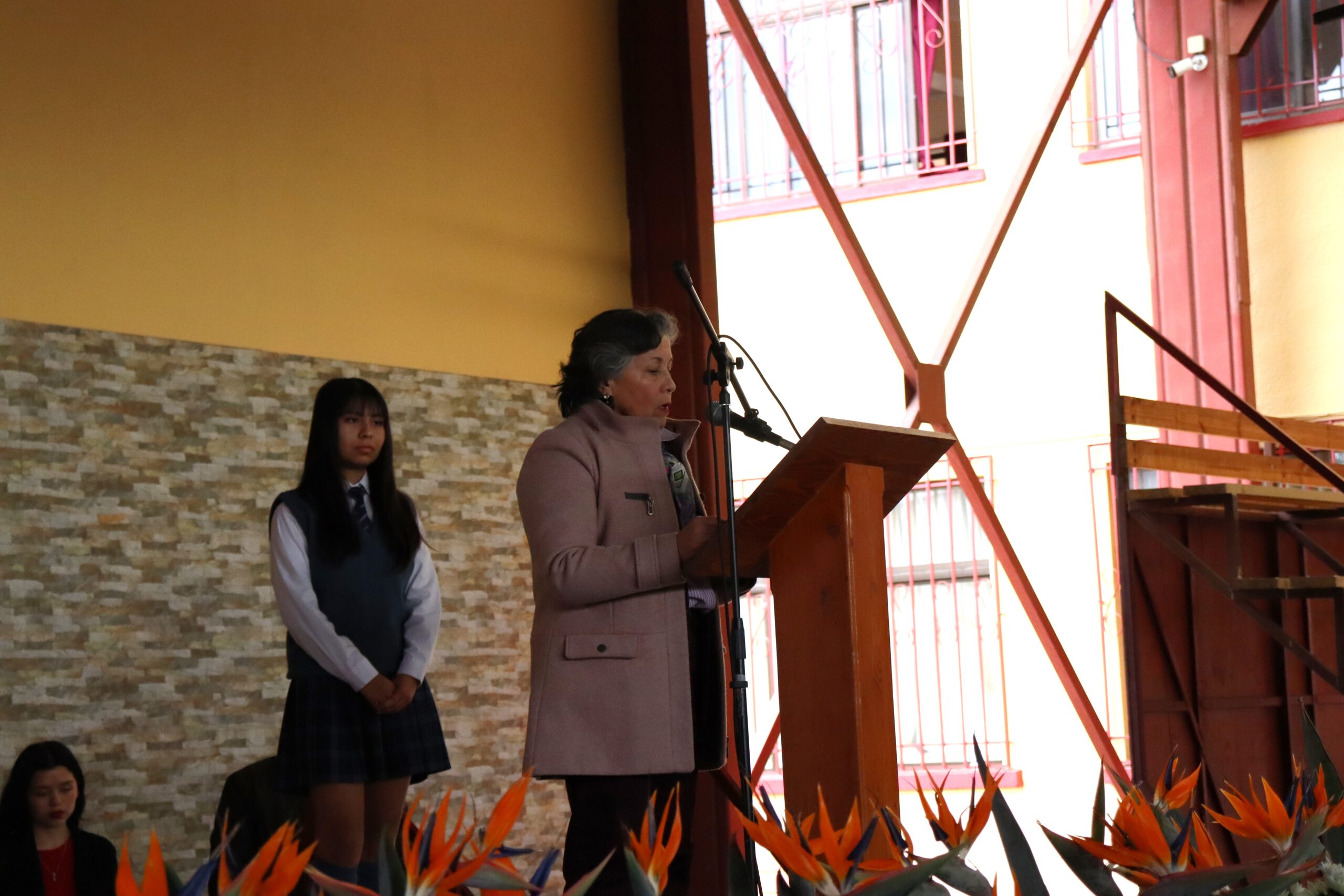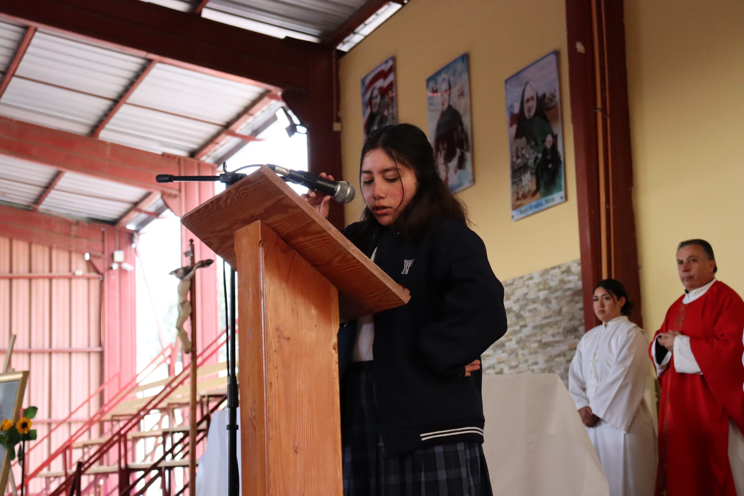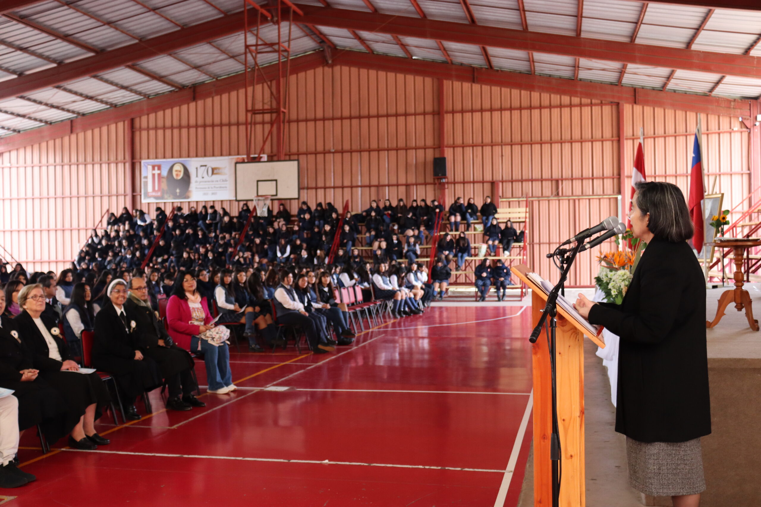 Hna. Gloria García, Superiora Provincial, agradeció y felicitó a las estudiantes por la hermosa misa celebrada, sobre todo por el ambiente de respeto e introspección logrado en esta Eucaristía, recordando el cariño que tiene por nuestra comunidad, ya que fue en ese mismo lugar, la cancha donde desempeñaba su labor como docente de Educación Física, donde recibió el llamado para ser religiosa, y además de contar que, al ser ovallina, es aún más especial visitar la comunidad.