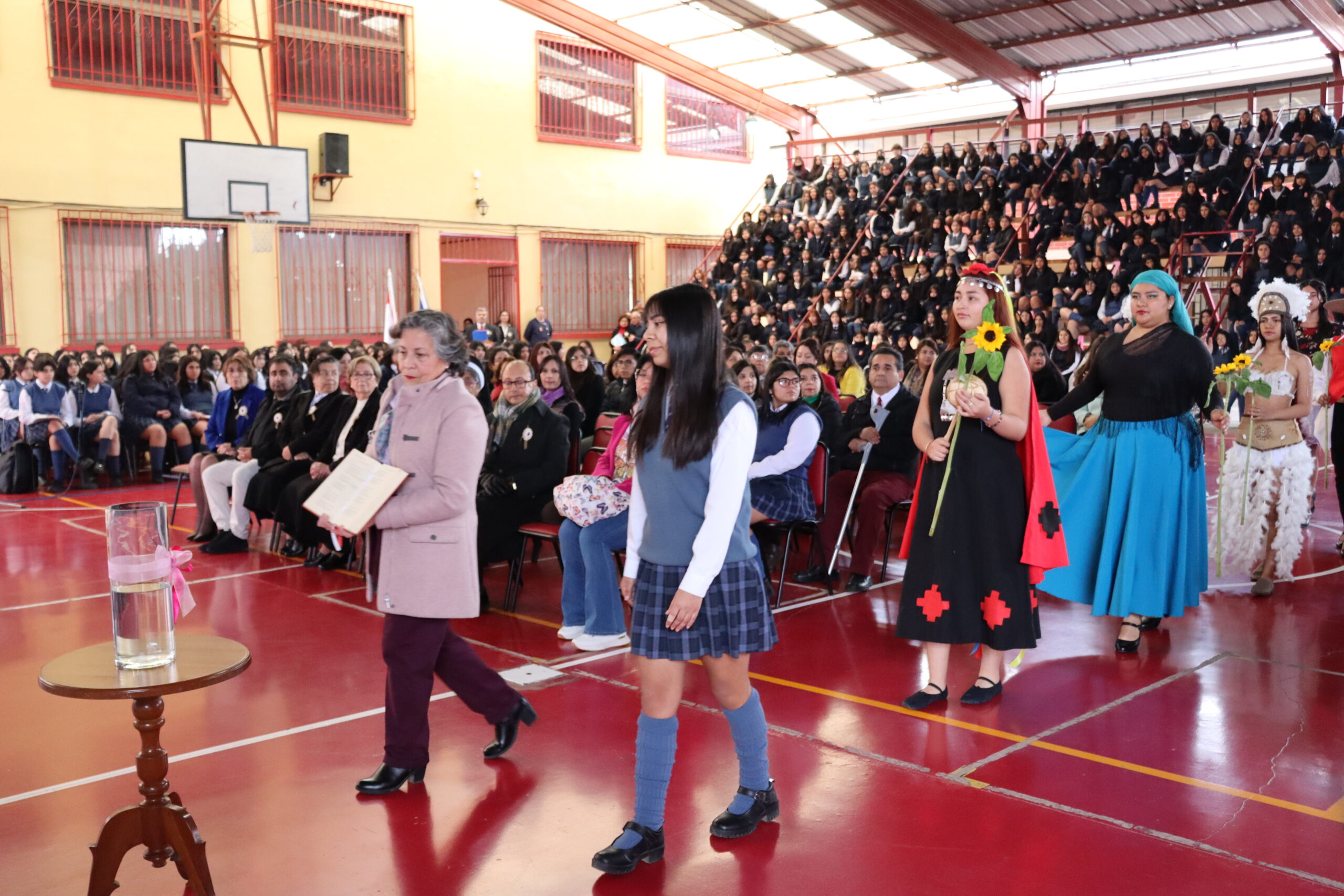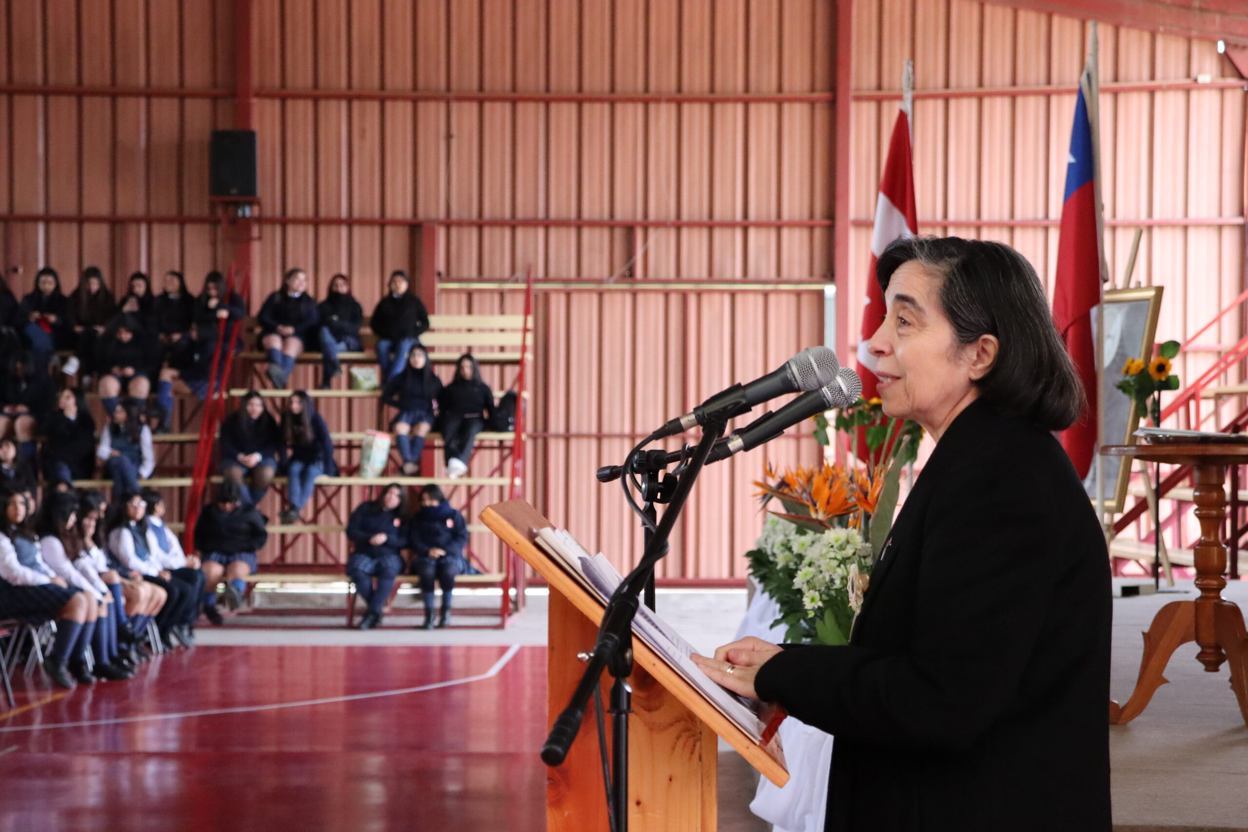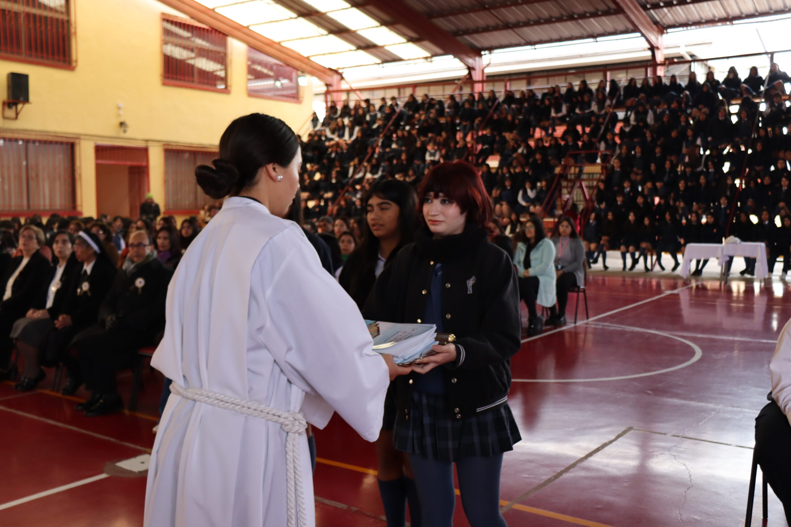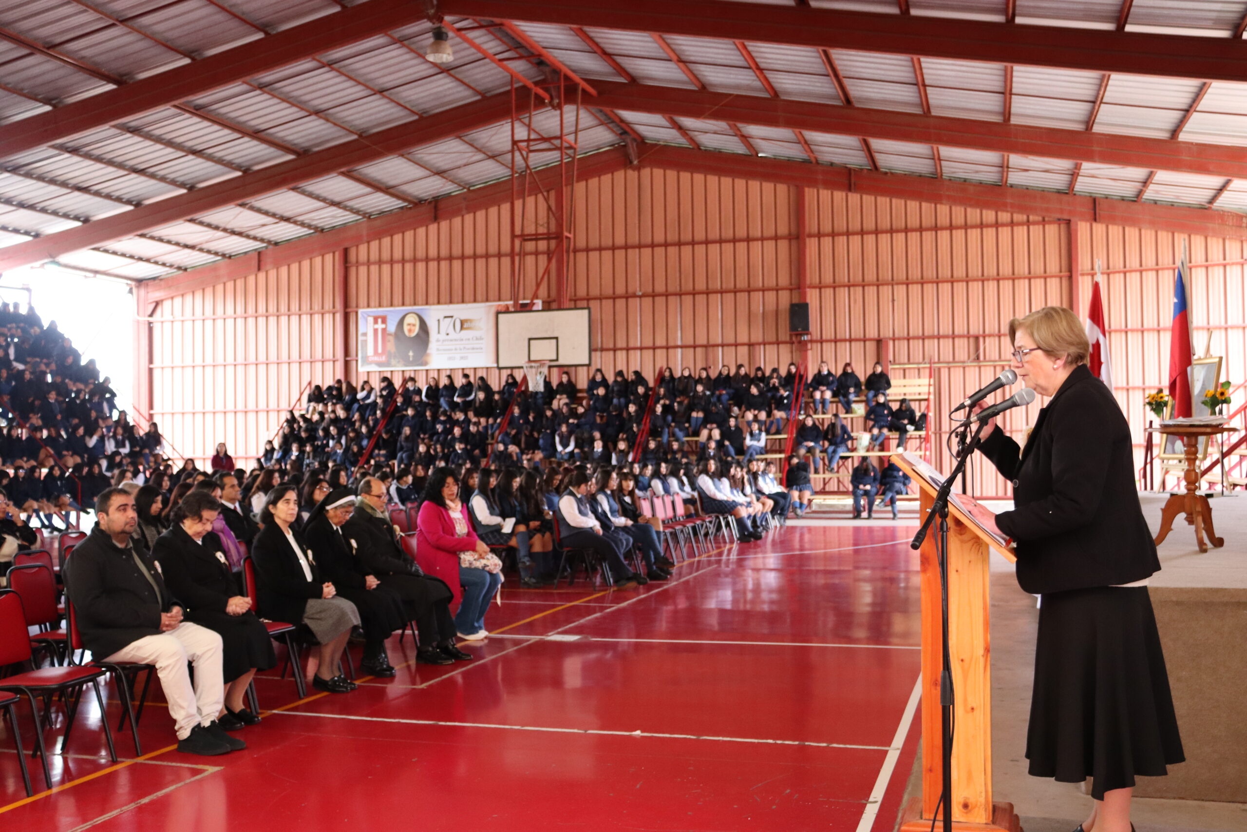 Hna. Gloria García, Superiora Provincial, agradeció y felicitó a las estudiantes por la hermosa misa celebrada, sobre todo por el ambiente de respeto e introspección logrado en esta Eucaristía, recordando el cariño que tiene por nuestra comunidad, ya que fue en ese mismo lugar, la cancha donde desempeñaba su labor como docente de Educación Física, donde recibió el llamado para ser religiosa, y además de contar que, al ser ovallina, es aún más especial visitar la comunidad.