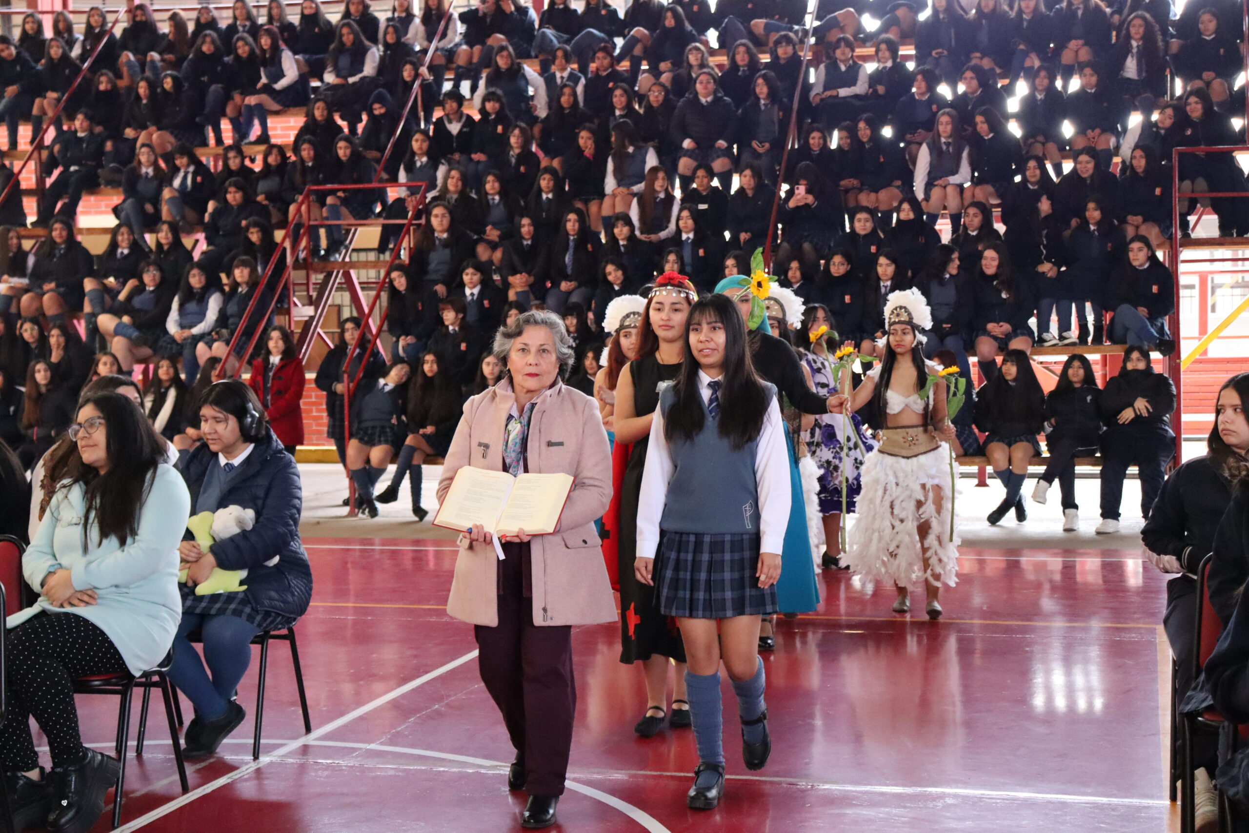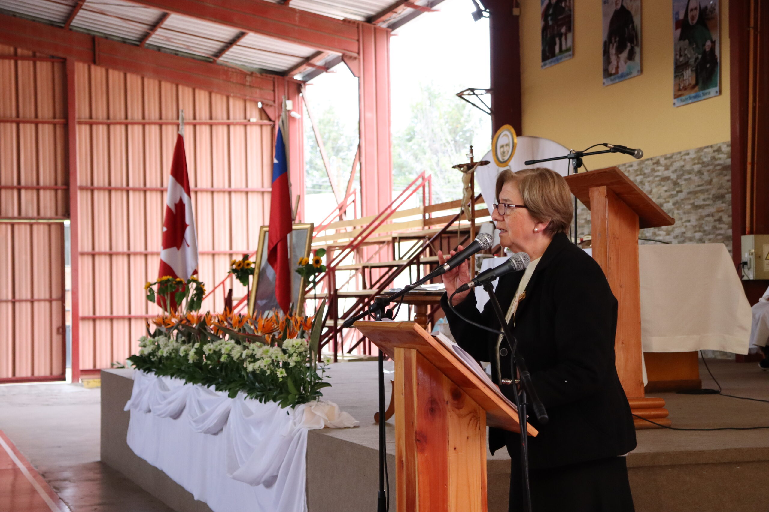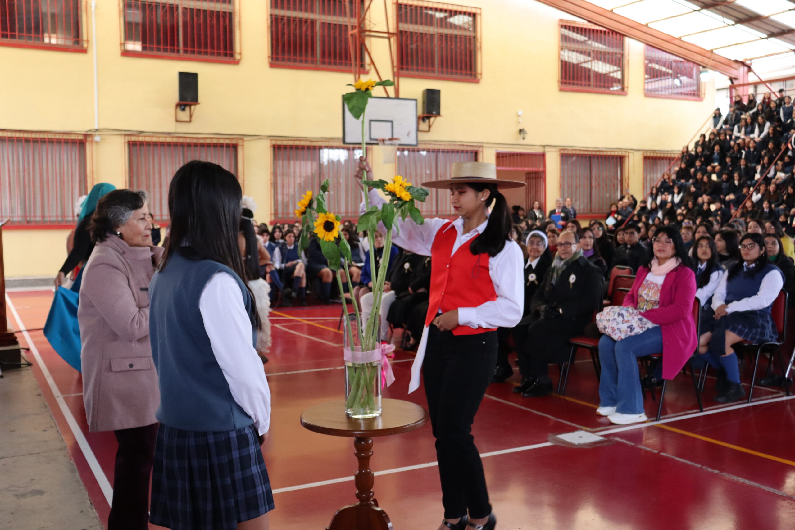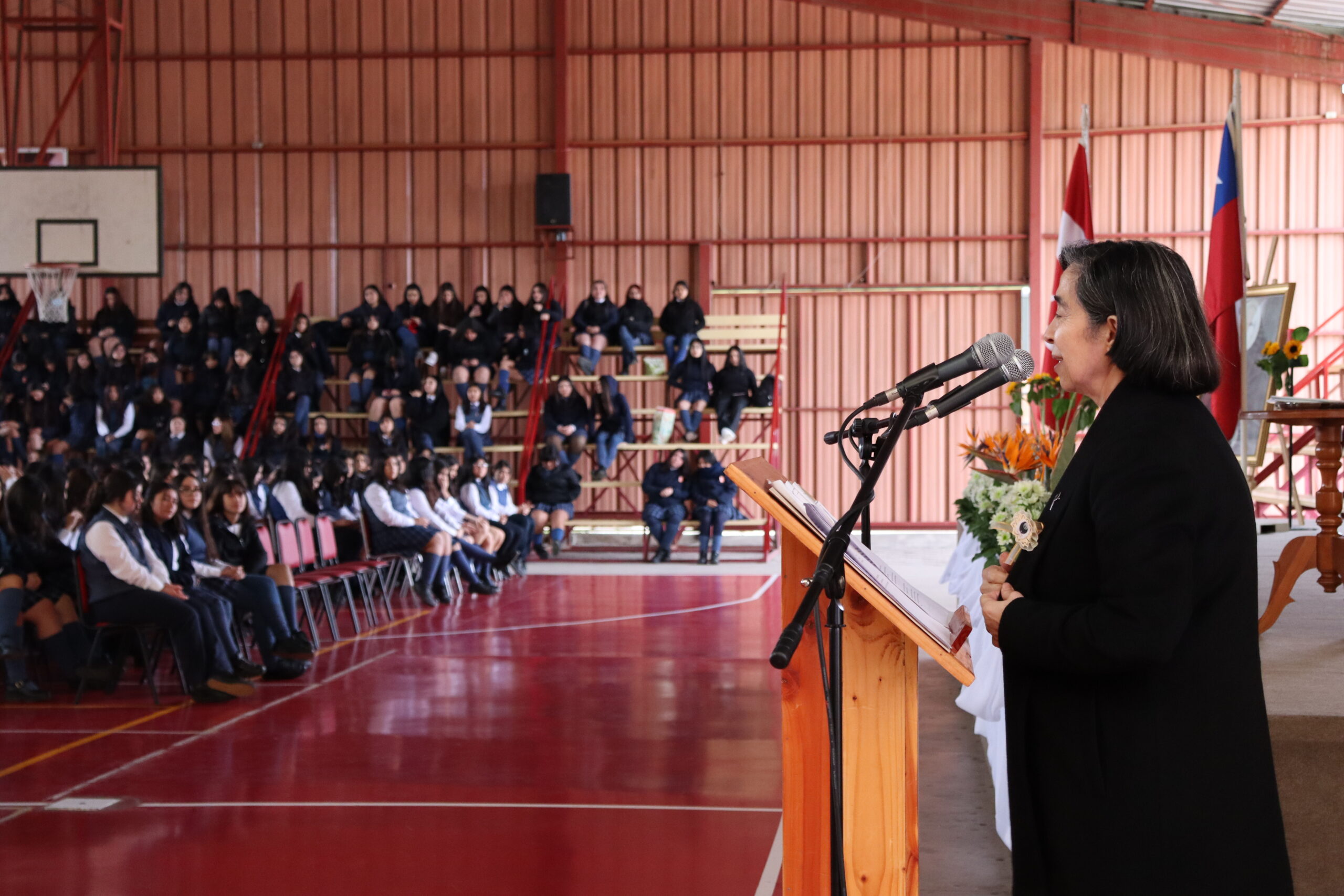 Hna. Gloria García, Superiora Provincial, agradeció y felicitó a las estudiantes por la hermosa misa celebrada, sobre todo por el ambiente de respeto e introspección logrado en esta Eucaristía, recordando el cariño que tiene por nuestra comunidad, ya que fue en ese mismo lugar, la cancha donde desempeñaba su labor como docente de Educación Física, donde recibió el llamado para ser religiosa, y además de contar que, al ser ovallina, es aún más especial visitar la comunidad.