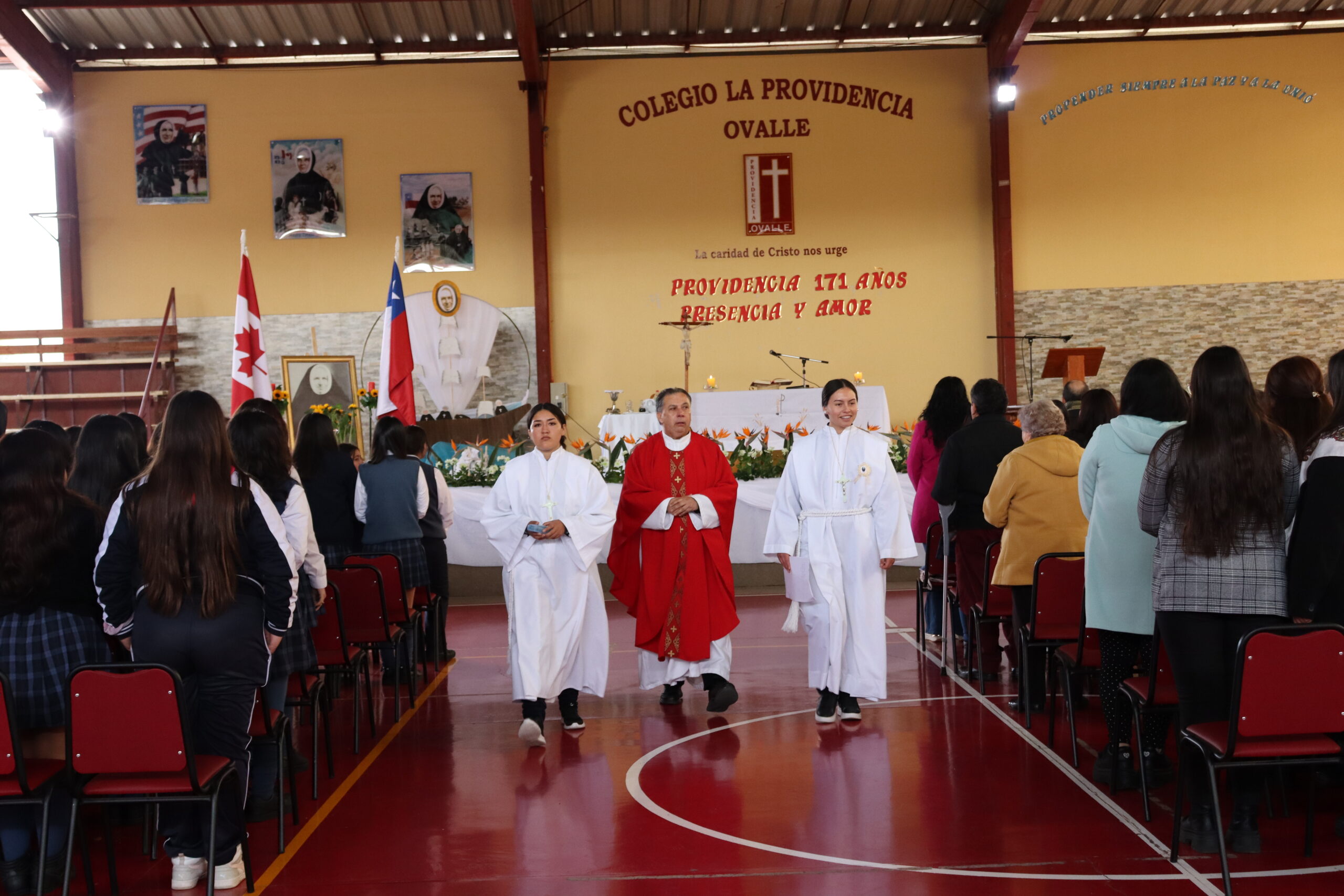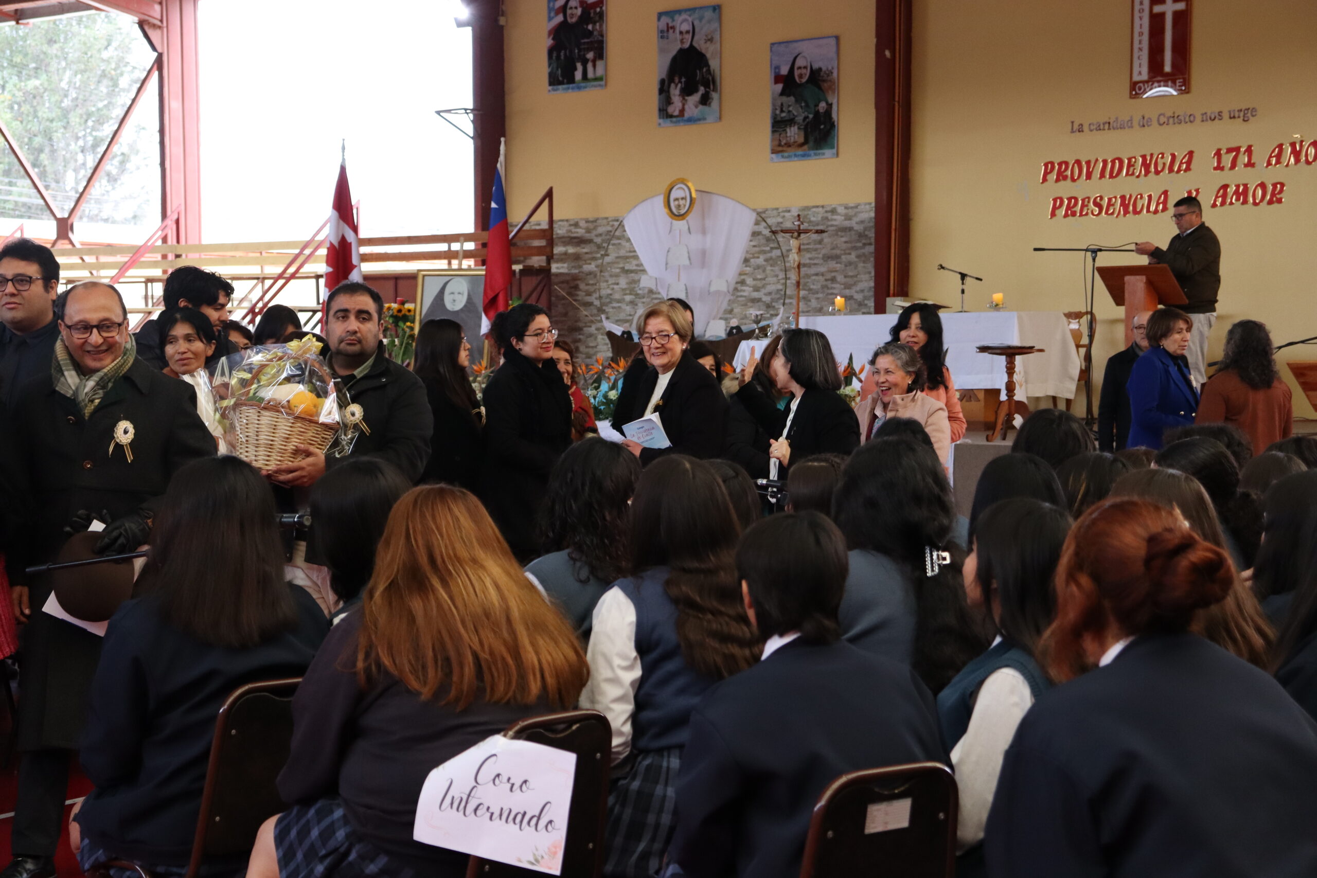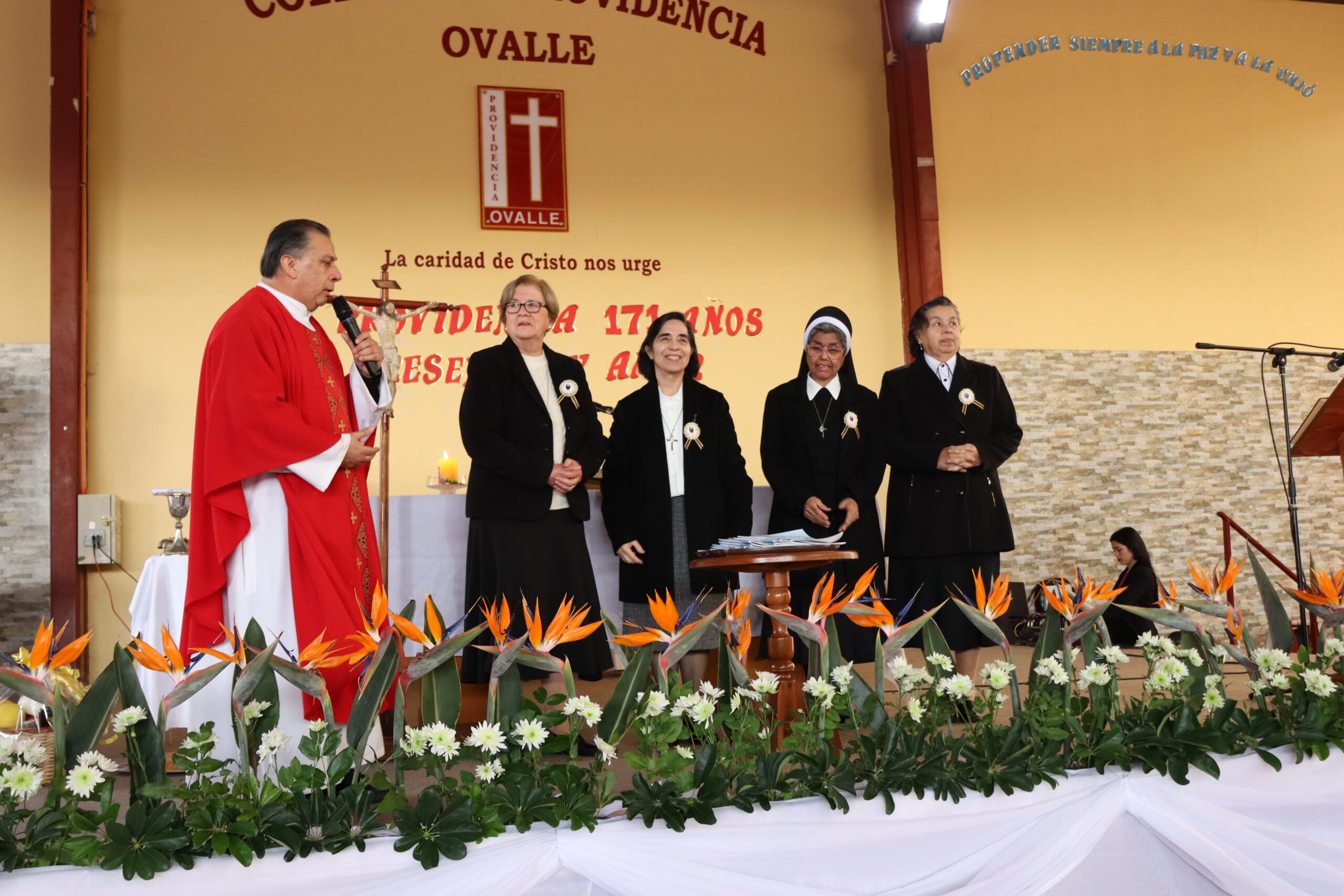 En una emotiva ceremonia de Eucaristía el pasado 11 de junio, las estudiantes, docentes y miembros de la comunidad se reunieron para celebrar la llegada de las Hermanas de la Providencia a Chile. La Misa fue presidida por el Padre Jorge Arancibia, y contamos con la presencia de Hna. Gloria García, superiora provincial, Hna. Cristina Urbina, consejera provincial y la Hna. Elvira Letelier, coordinadora Pastoral de nuestro Colegio.