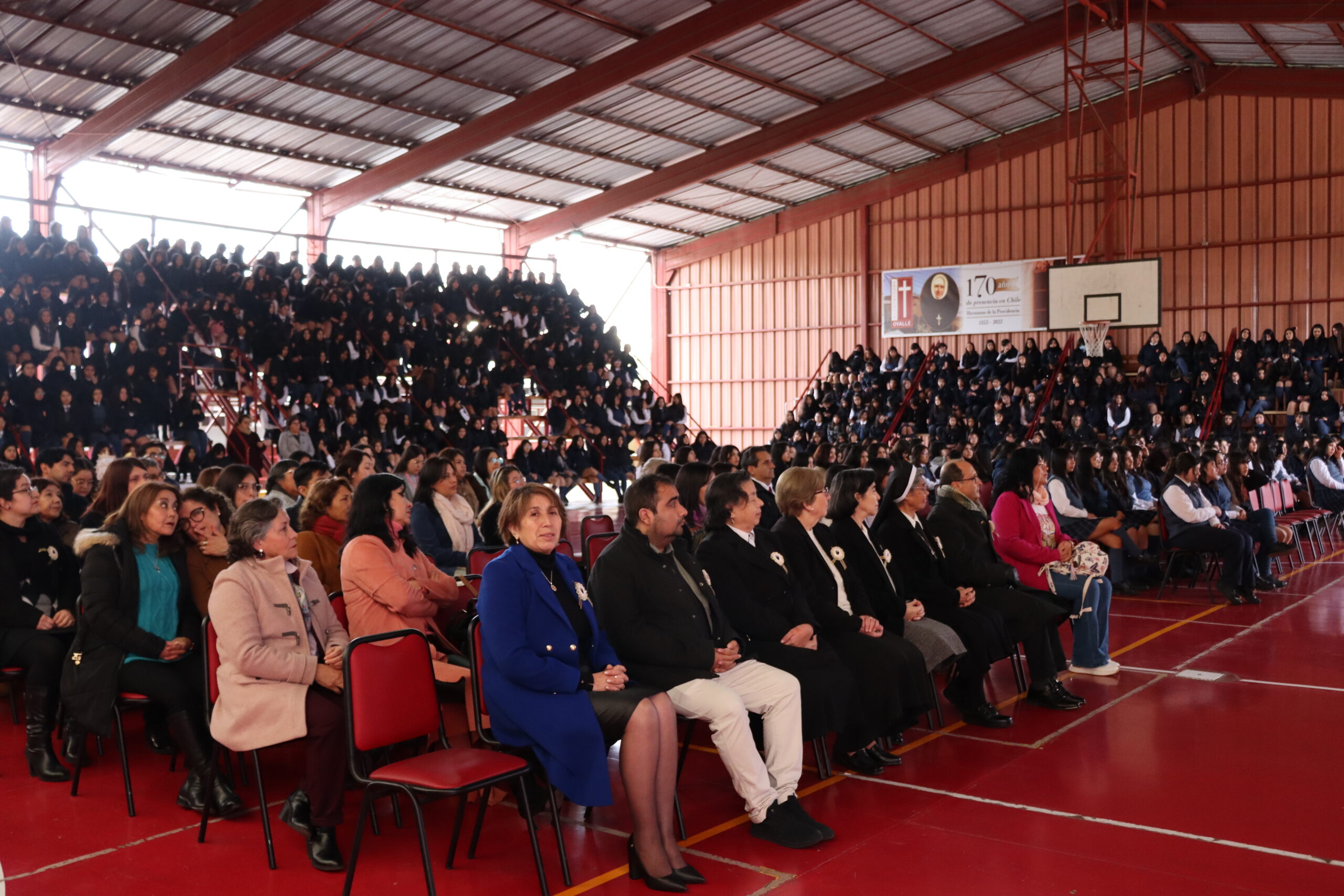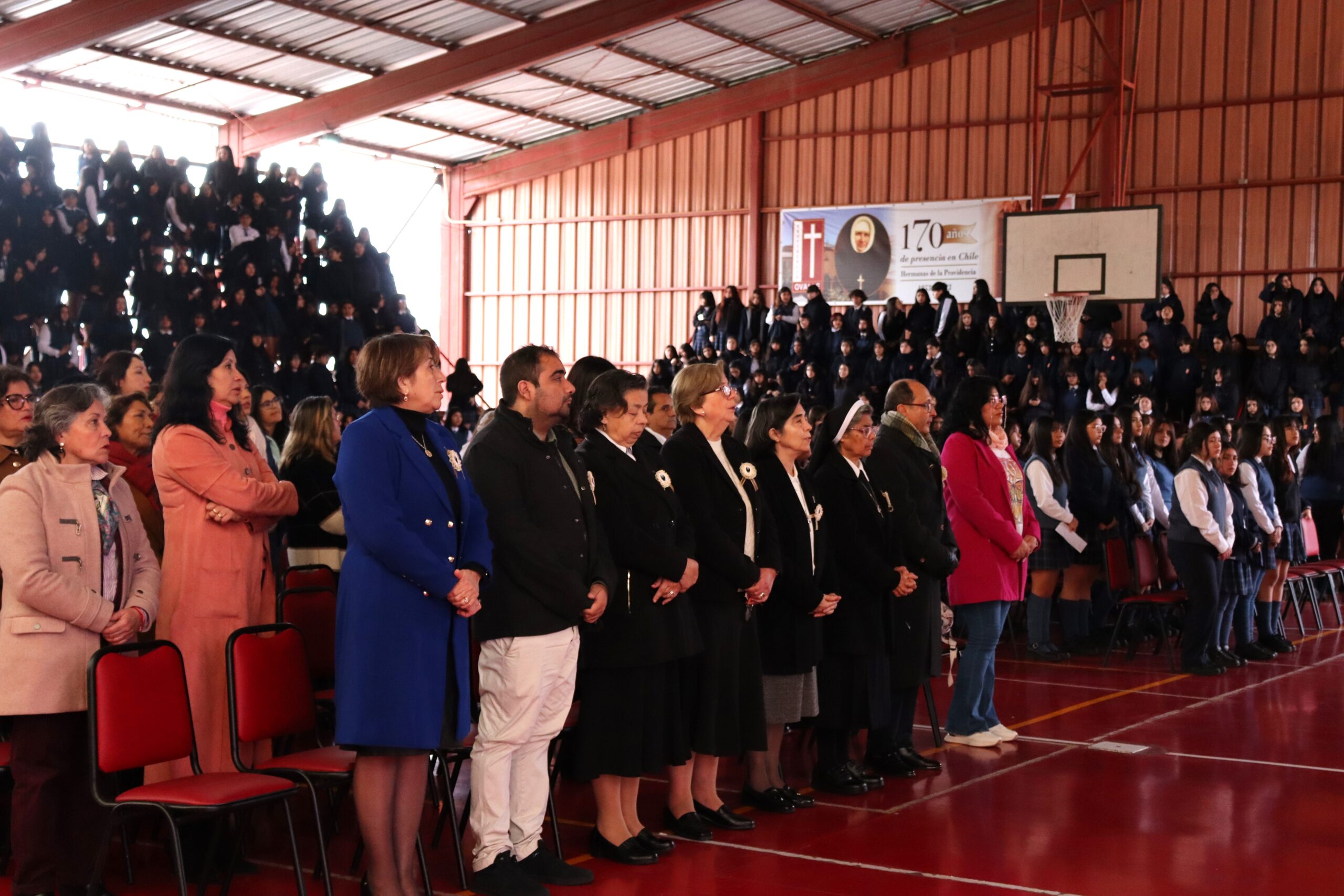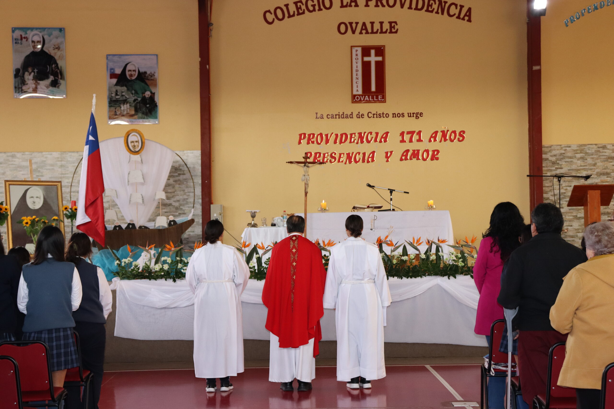 En una emotiva ceremonia de Eucaristía el pasado 11 de junio, las estudiantes, docentes y miembros de la comunidad se reunieron para celebrar la llegada de las Hermanas de la Providencia a Chile. La Misa fue presidida por el Padre Jorge Arancibia, y contamos con la presencia de Hna. Gloria García, superiora provincial, Hna. Cristina Urbina, consejera provincial y la Hna. Elvira Letelier, coordinadora Pastoral de nuestro Colegio.