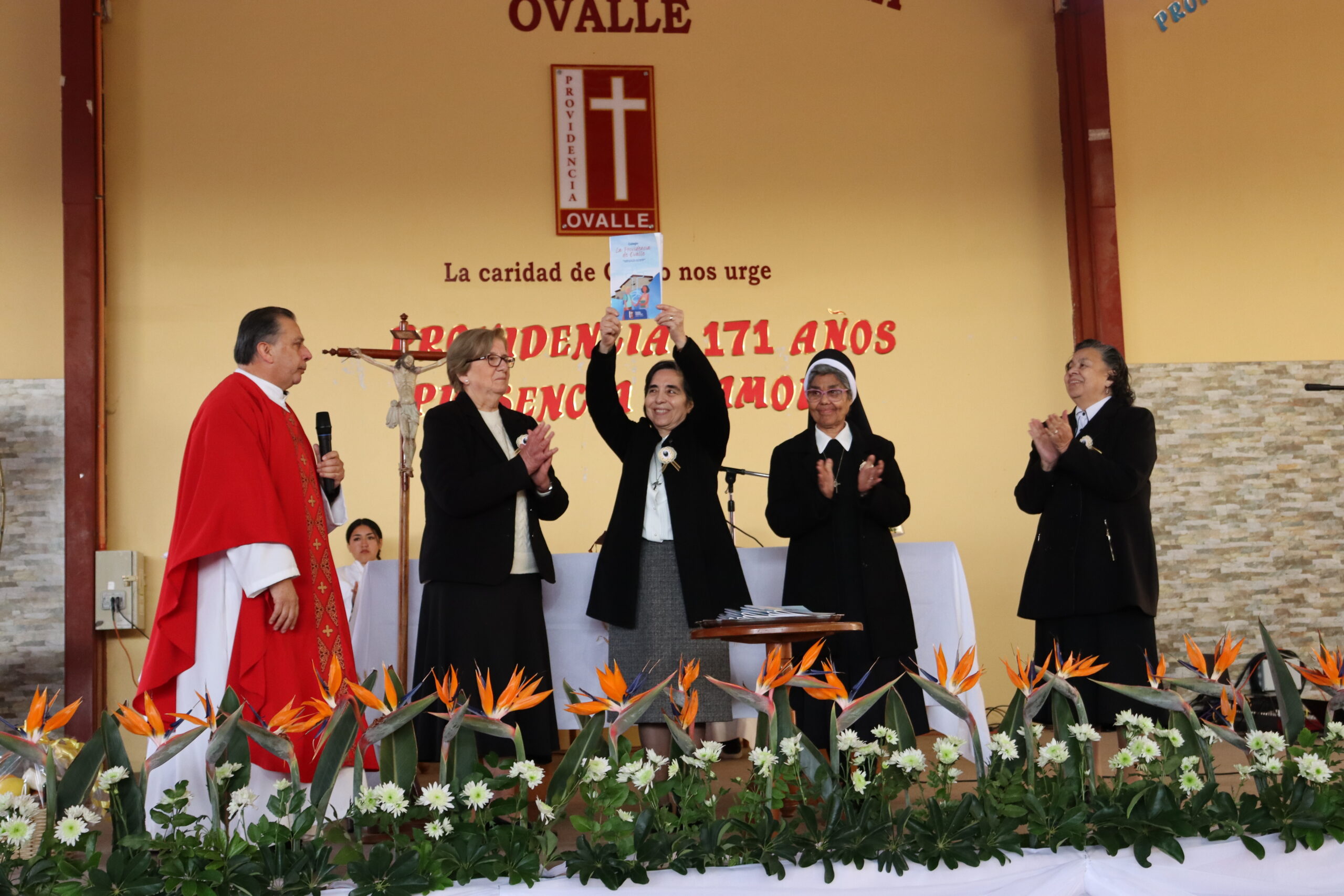 Madre Bernarda nos pide educar, con disciplina, con amor, nos pide formar a nuestras niñas en espiritualidad y fe, en valores para la vida social y personal y en técnicas que les sean útiles para la vida. Para celebrar esta Pedagogía en el Aniversario 171, de la Congregación de las Hermanas de La Providencia, al finalizar la Eucaristía se realizó la bendición y Hermana Gloria García realizó la entrega simbólica del libro que contiene nuestro Proyecto Educativo Institucional (PEI) a nuestra directora, señora María Cecilia Martínez Salas y a nuestra administradora, señora Miriam Ossandón Vega, ya que ellas serán quienes velen que este Proyecto Educativo, siempre sea fiel a los principios educativos de Madre Bernarda, de la Congregación y a los valores de su espiritualidad.