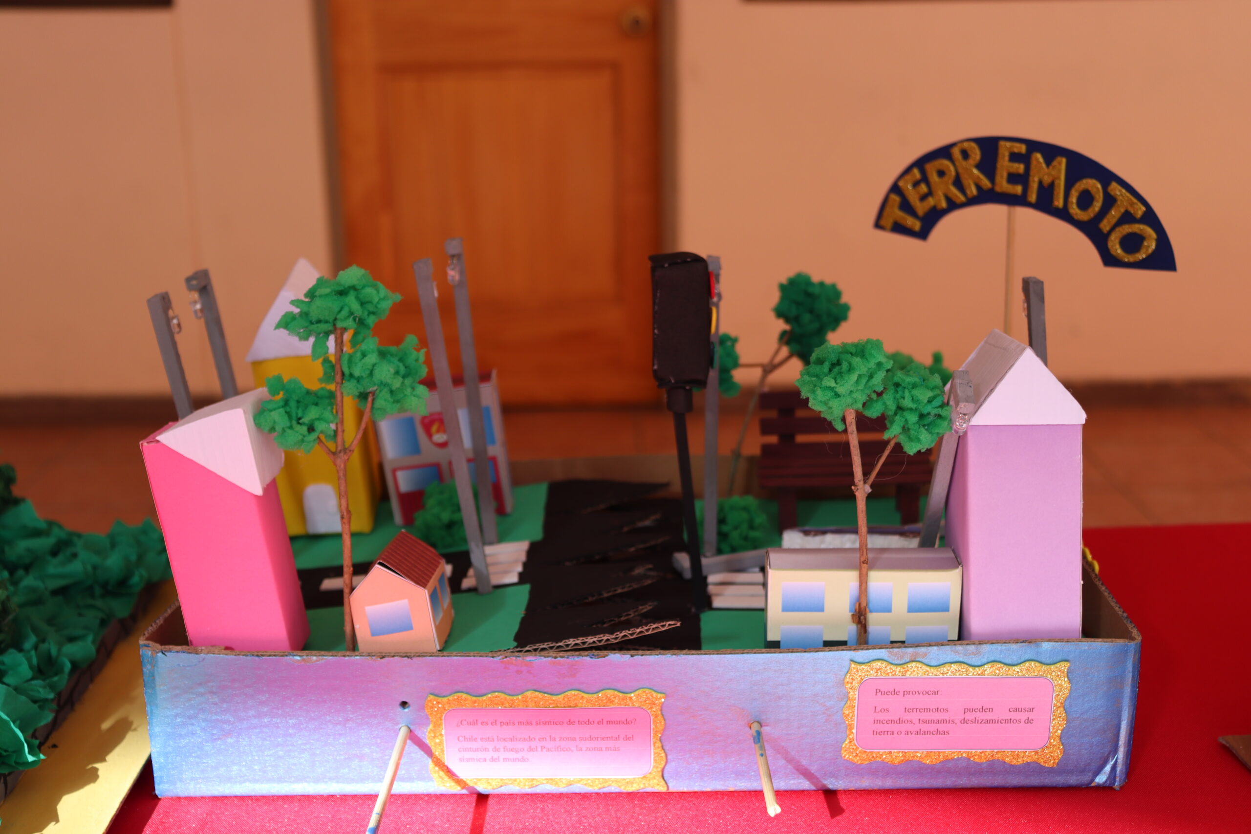 Durante el recreo del pasado jueves 21 de noviembre se realizó una exposición de maquetas sobre tipos de desastres naturales trabajadas en la asignatura de Ciencias para la ciudadanía con material reciclado, de la Unidad: Prevención, Seguridad y Autocuidado, las cuales fueron presentadas por las docentes Paola Olivares y Sharon Castro.