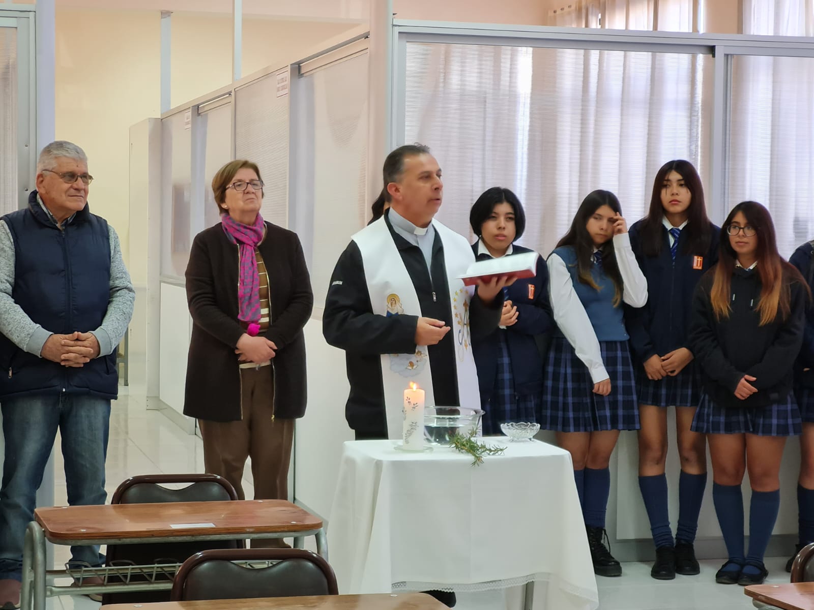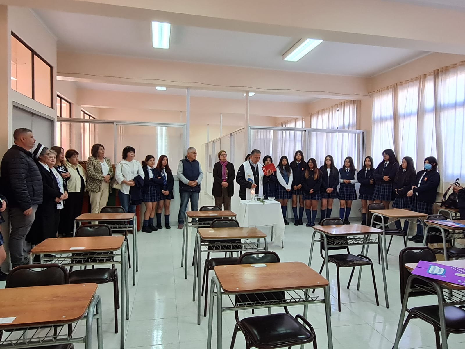 El lunes 17 de abril se realizó la ceremonia de bendición de las nuevas dependencias del taller de Enfermería y las nuevas oficina de atención de área de psicología y convivencia escolar, oficiada por el Padre Jorge Arancibia.