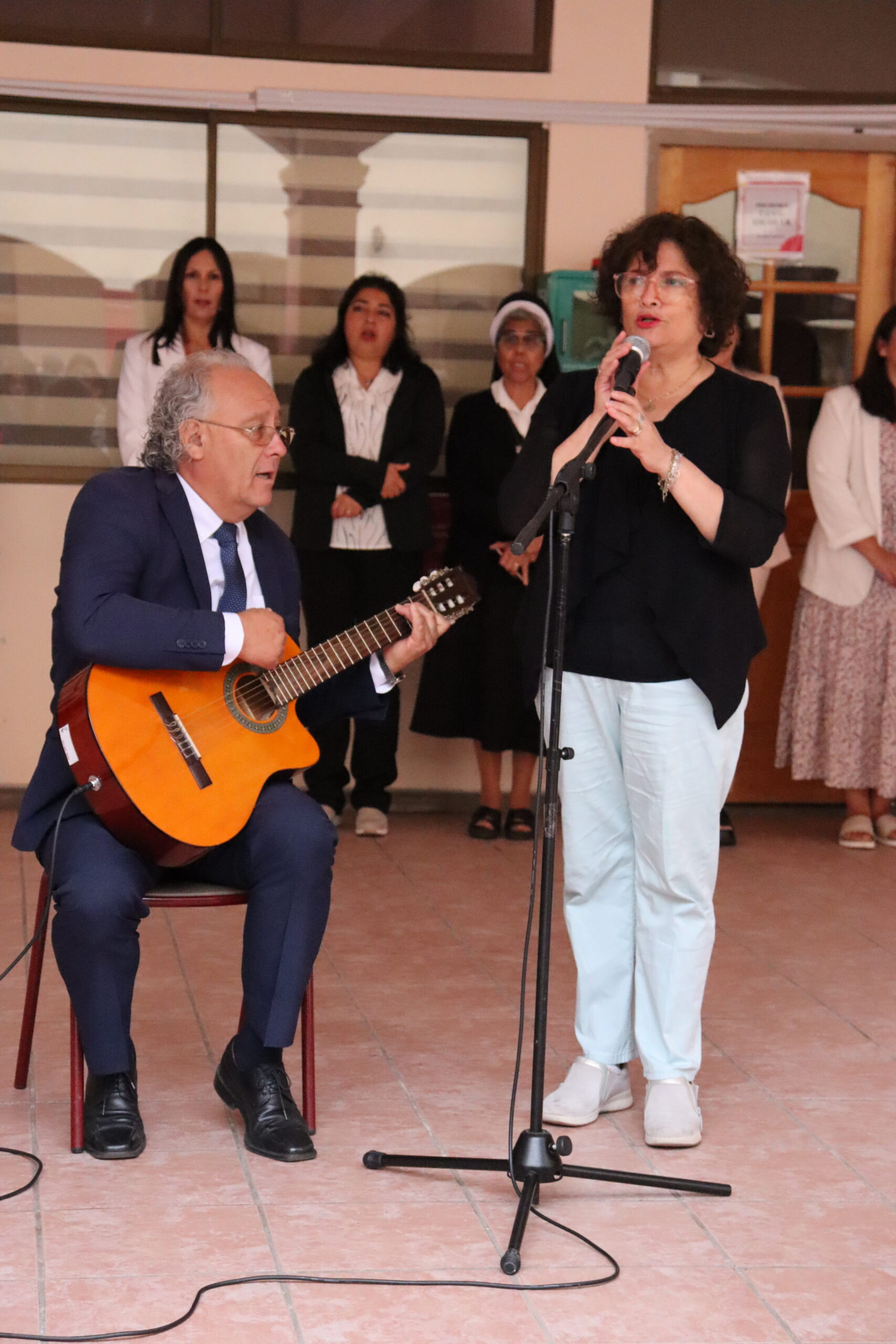 Durante la bienvenida, se presentó a la hermana María Eugenia Arancibia, quien tendrá la misión de dirigir y coordinar la Pastoral, el quipo PIE y el docente de Matemáticas Ángelo Álvarez. Hizo un llamado a estar alegres con este reencuentro y tener fe en que haremos las cosas bien con la protección y cuidado de Dios Padre y su dulce Providencia, animando a trabajar unidos para lograr hacer realidad los sueños de las familias que conforman esta comunidad educativa.