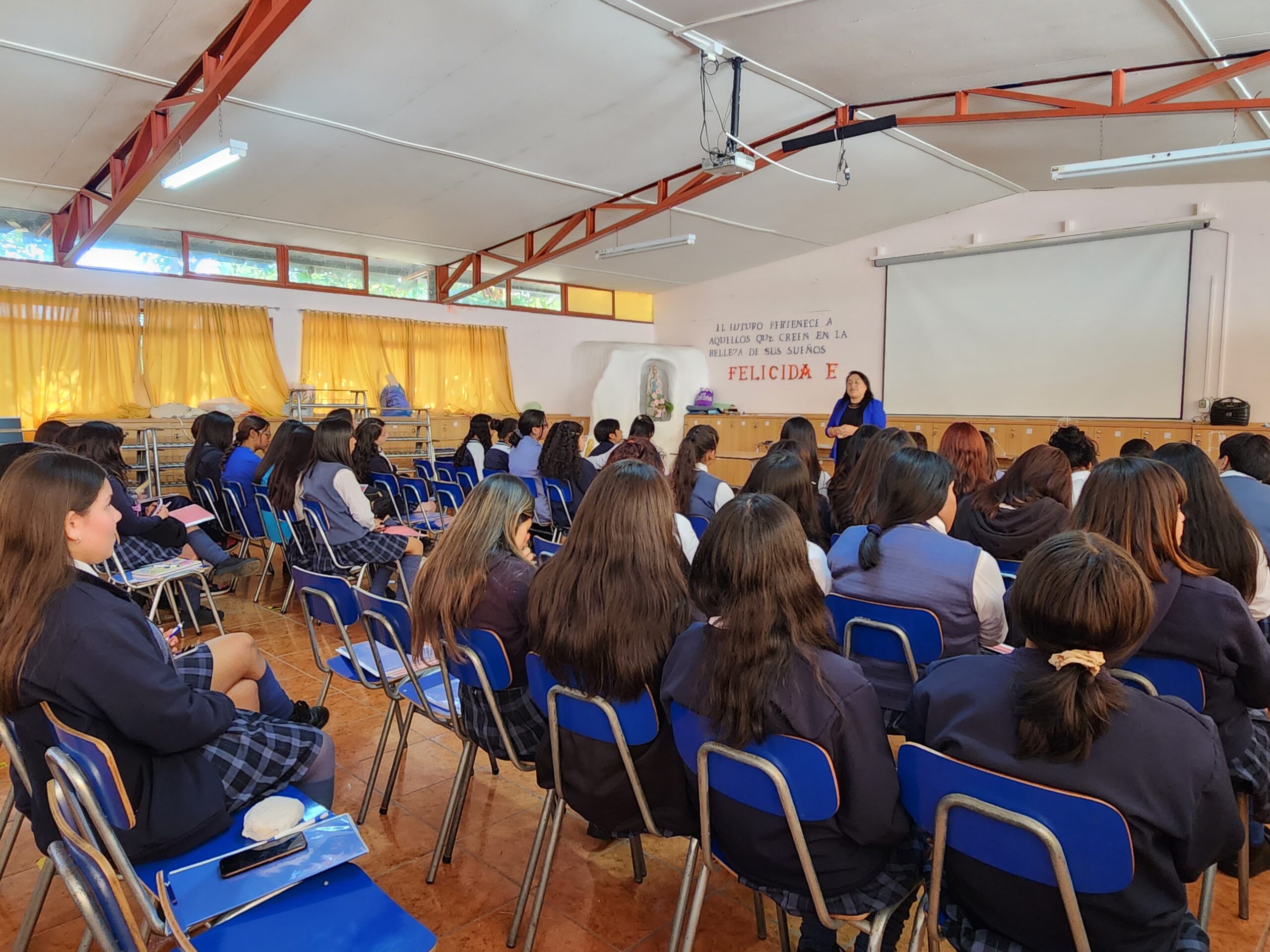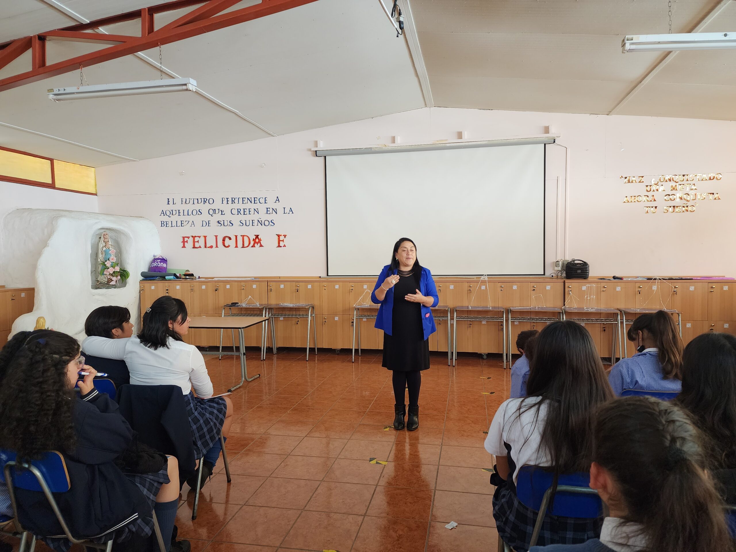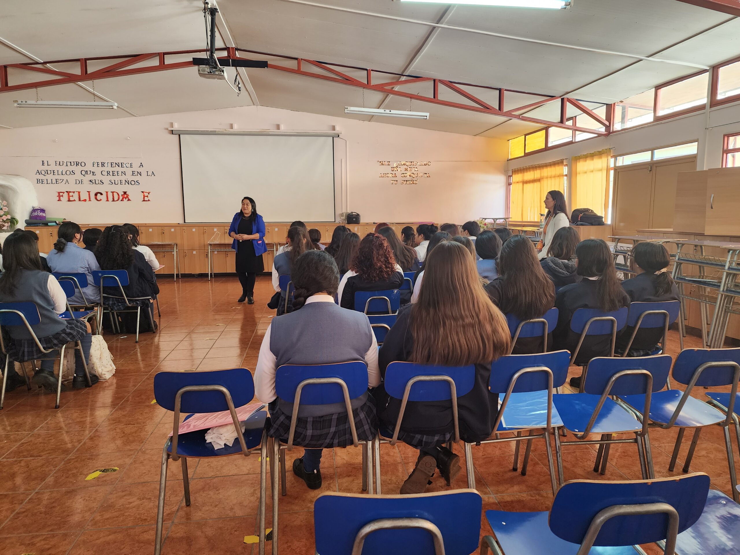Para el cierre de la jornada, las estudiantes pudieron conocer y escuchar la experiencia de liderazgo de una invitada muy especial, ex- estudiante de nuestro colegio, Mery Mora Araya, Trabajadora Social, Coordinadora de Convivencia Escolar del Colegio Gabriela Mistral y Concejal de la comuna de Monte Patria, quien nos compartió su historia de vida, su paso por el colegio y las funciones que realiza el día de hoy. Un momento emotivo, ya que la Coordinadora y Ejecutora del Programa de Habilidades para la Vida III de la Municipalidad de Ovalle, Oralia Pizarro, Asistente Social y también ex – estudiante mostró emoción y orgullo de poder compartir y ser parte del camino de crecimiento de las nuevas generaciones.