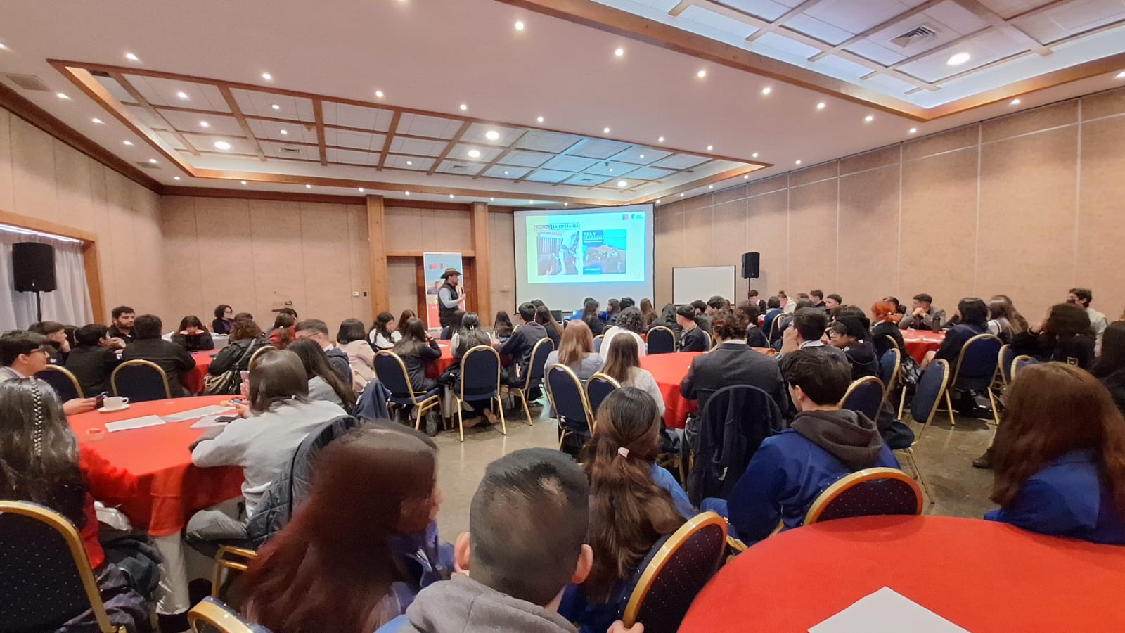 Asistieron colegios de las tres provincias de nuestra región, de nuestro Colegio las estudiantes: María Ávalos Sapunar (4°A), Carolina Irarrázaval (4°A), Constanza Maya Elgueda (1°A), Vaithiare Navea Araya (4°F), Isabella Urdaneta Perche (3°E) junto a la Orientadora Paola Araya, quienes nos representaron participando activamente durante la jornada. Este encuentro permitió a los distintos líderes de los colegios TP compartir sus opiniones y propuestas en cuanto a convivencia, aprendizajes, y experiencias educativas, lo que resultó en una instancia formativa interesante y muy fructífera.