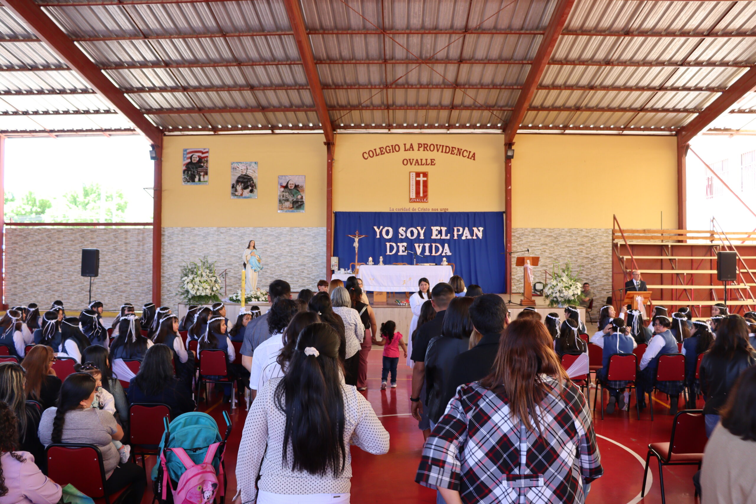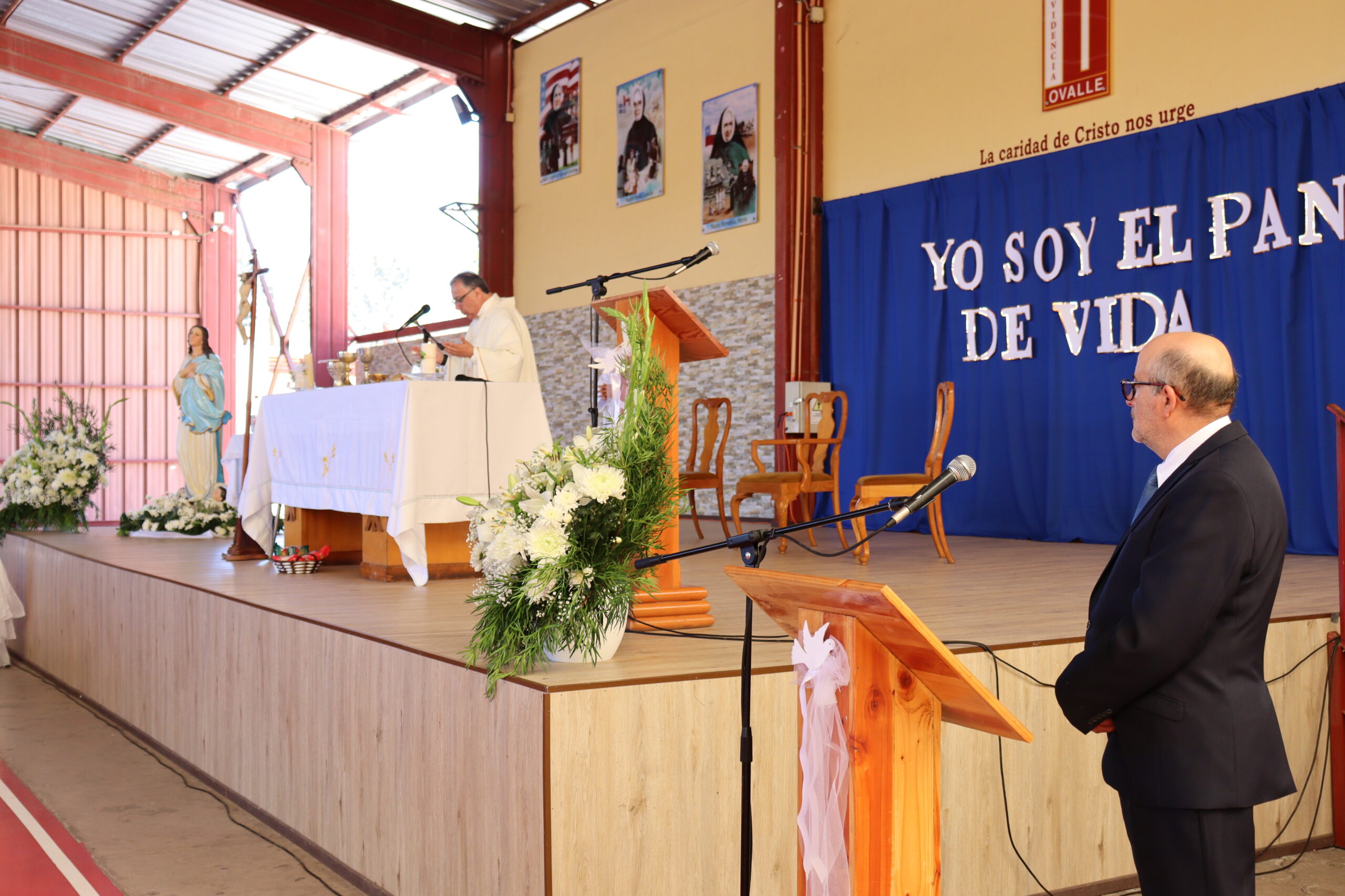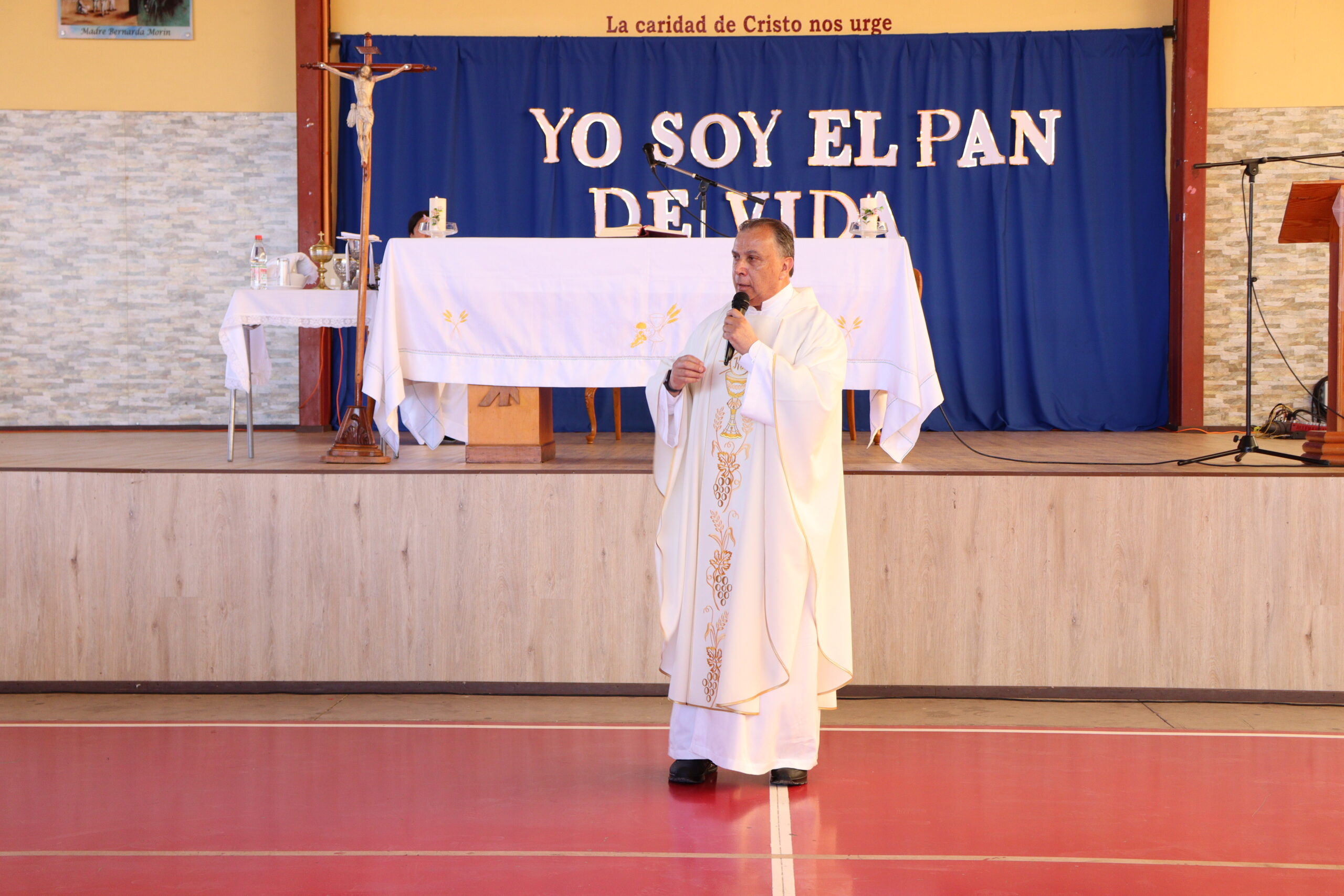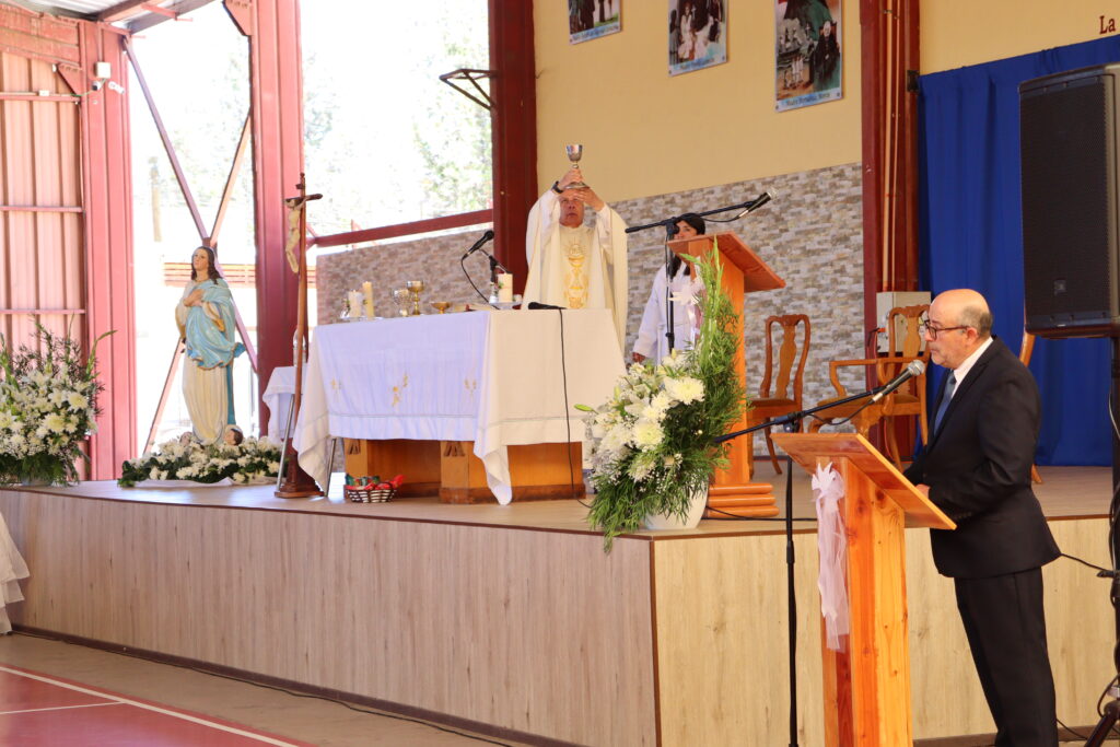 La eucaristía fue presidida por el Padre Jorge Arancibia Mancilla, con la conducción del docente Adrián Varas, y se celebró al mediodía en el techado del colegio, en un ambiente de recogimiento, alegría y fe compartida.