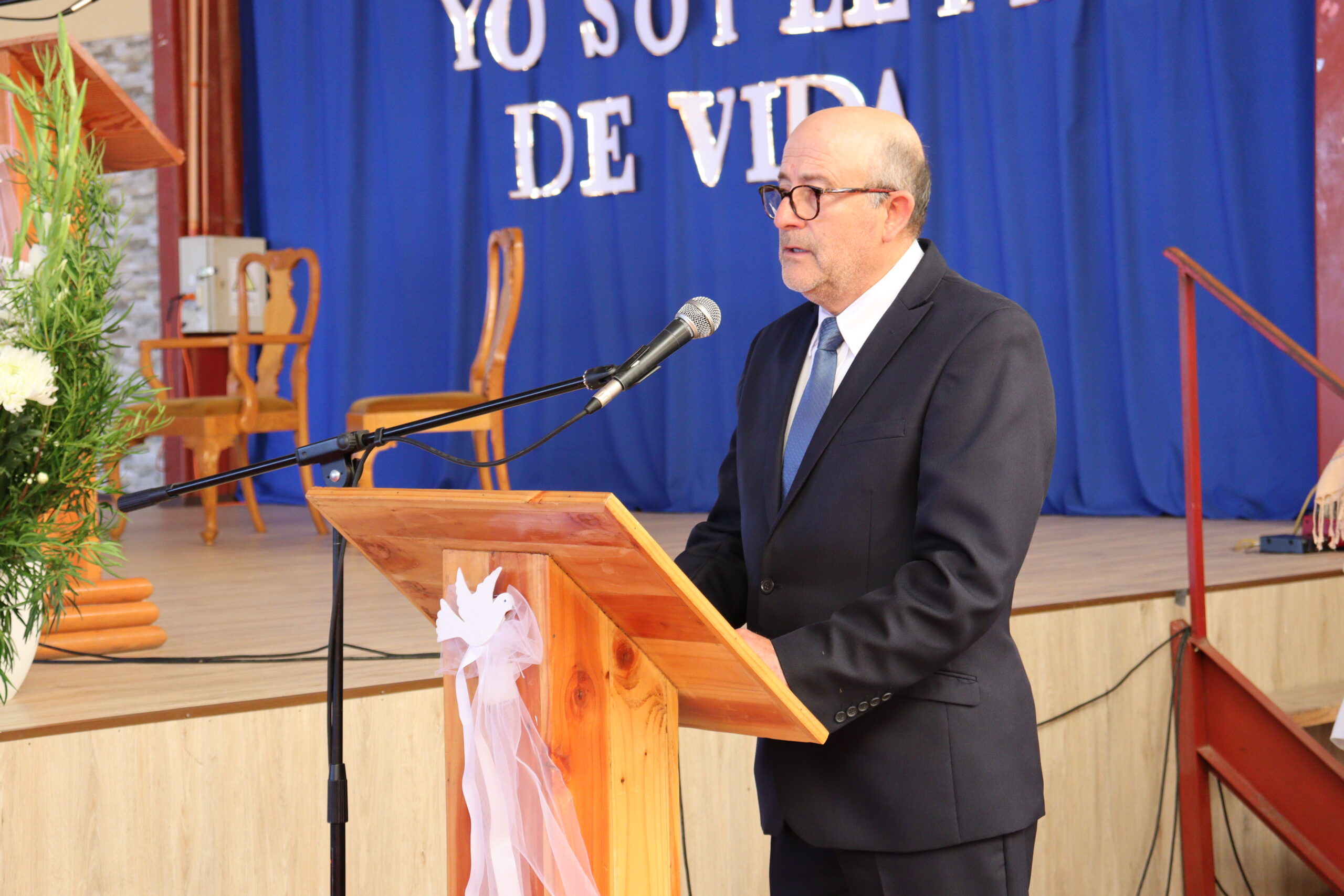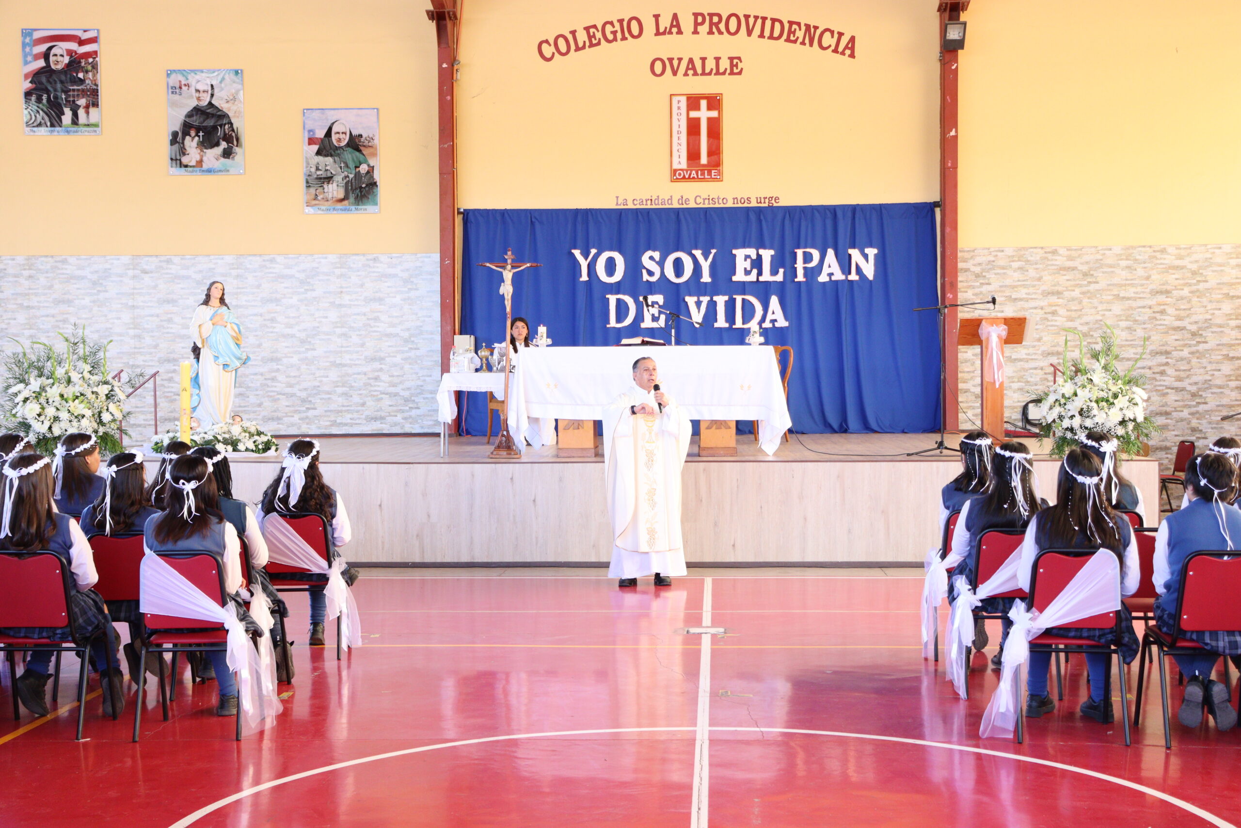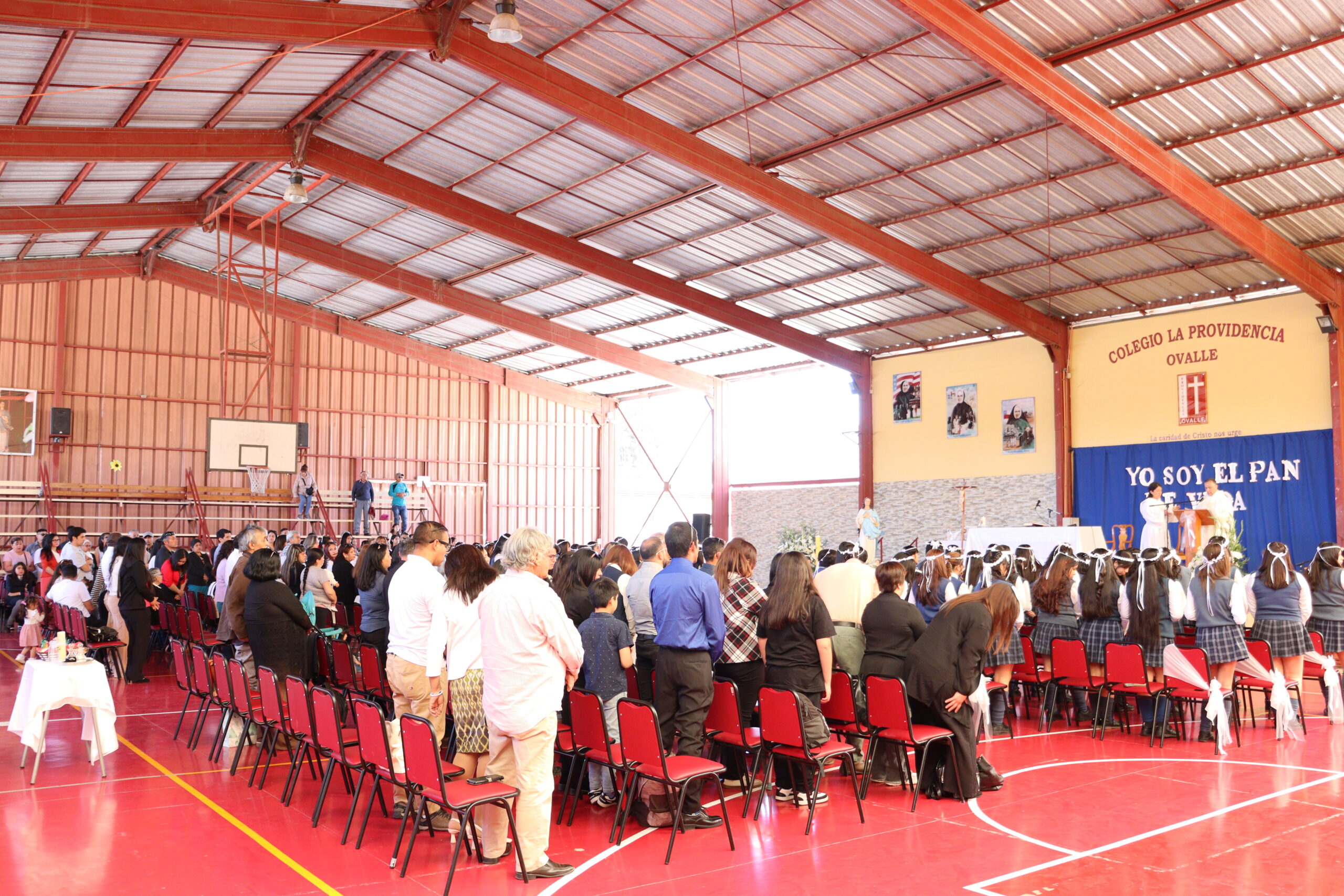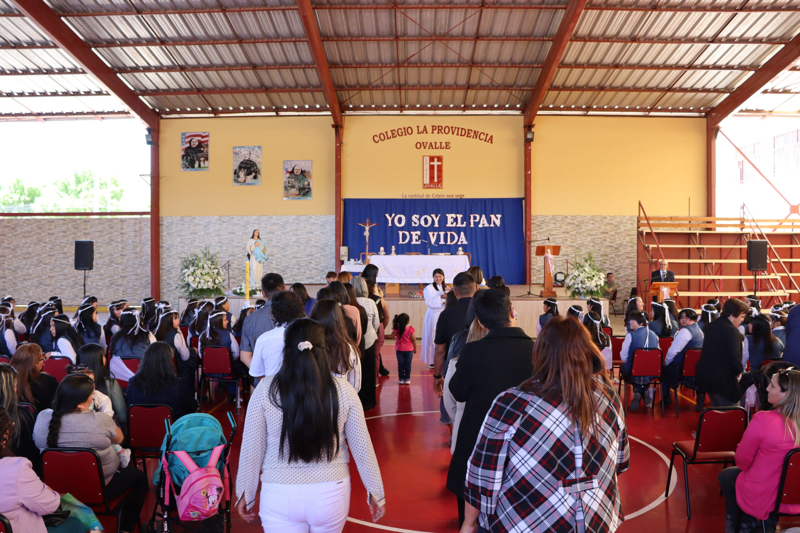 La eucaristía fue presidida por el Padre Jorge Arancibia Mancilla, con la conducción del docente Adrián Varas, y se celebró al mediodía en el techado del colegio, en un ambiente de recogimiento, alegría y fe compartida.