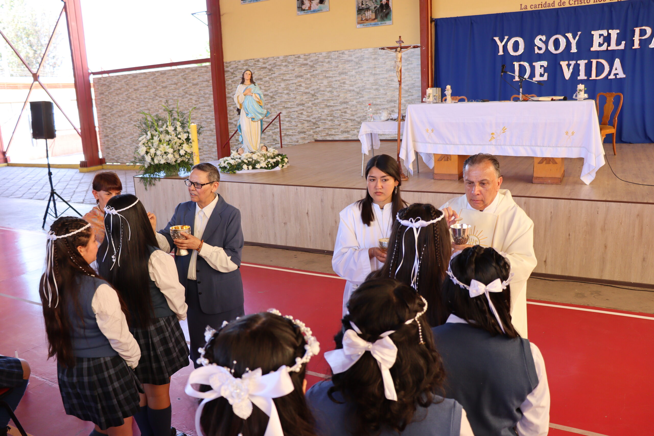 Este miércoles vivimos una jornada profundamente significativa: 68 estudiantes recibieron el Cuerpo y la Sangre de Jesús en su Primera Comunión, acompañadas por sus familias, catequistas y funcionarios de la educación.