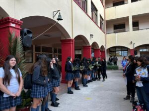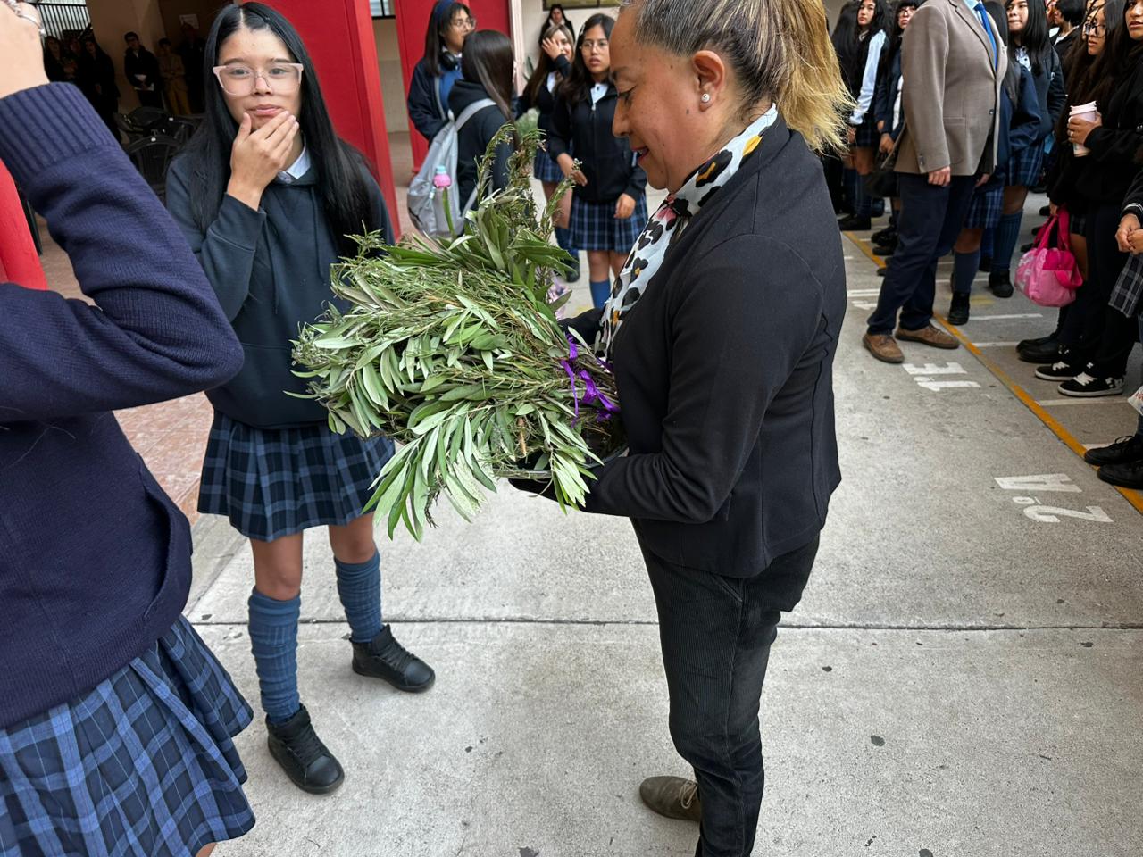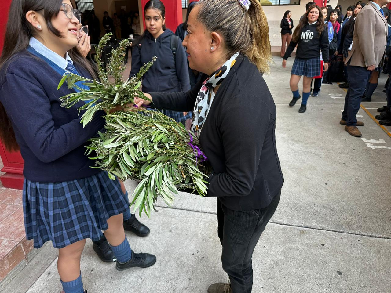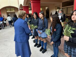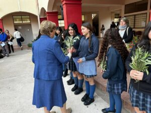 La ceremonia fue liderada por la Hermana María Eugenia Arancibia, encargada de pastoral, quien guió la oración y bendición de los ramos elaborados con dedicación por las estudiantes internas. Posteriormente, representantes de cada curso recibieron un ramo y lo llevaron a sus salas de clases, gesto que simboliza la presencia de Dios en la vida cotidiana de nuestra comunidad escolar.
