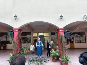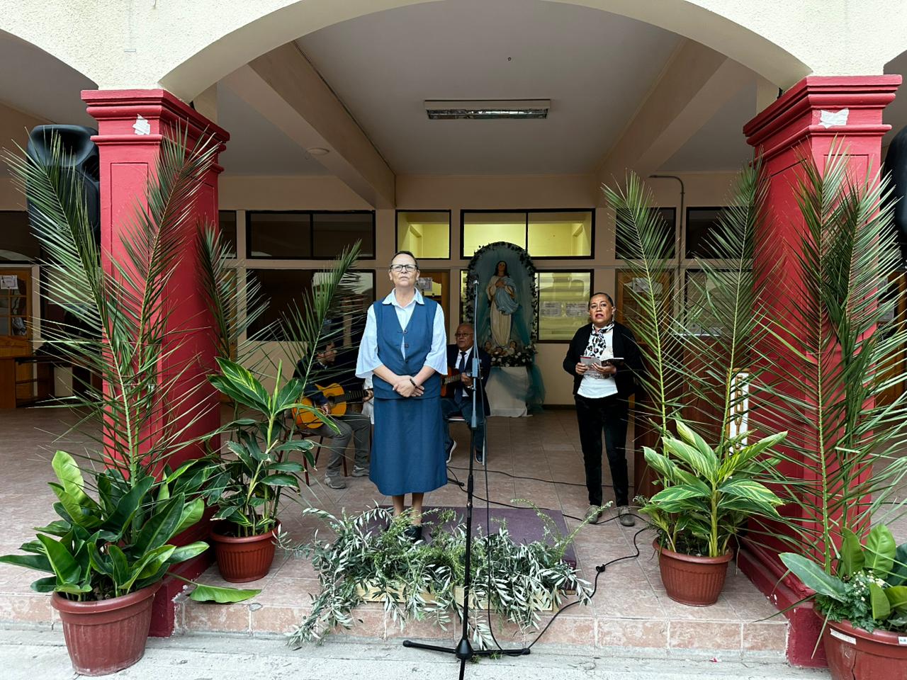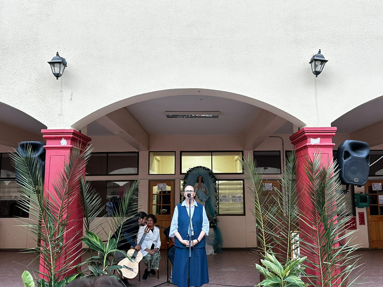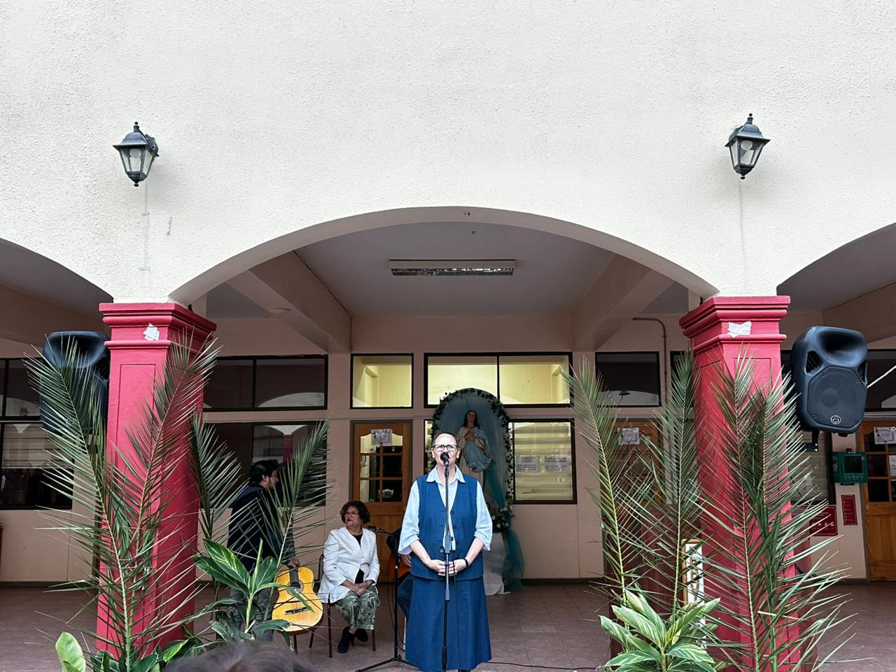La ceremonia fue liderada por la Hermana María Eugenia Arancibia, encargada de pastoral, quien guió la oración y bendición de los ramos elaborados con dedicación por las estudiantes internas. Posteriormente, representantes de cada curso recibieron un ramo y lo llevaron a sus salas de clases, gesto que simboliza la presencia de Dios en la vida cotidiana de nuestra comunidad escolar.