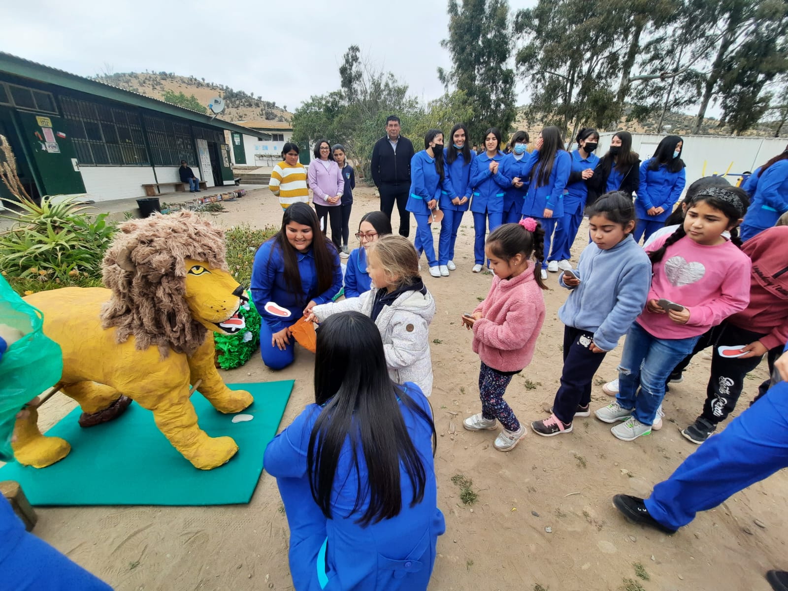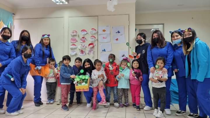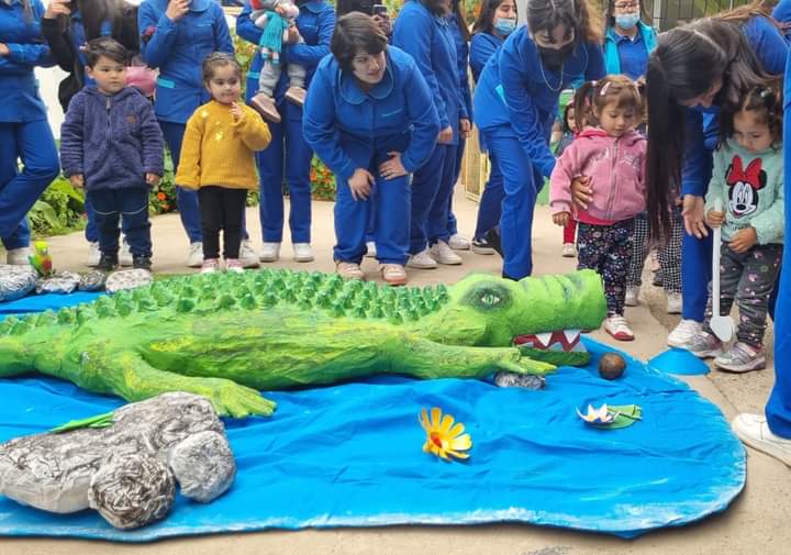 Luego las estudiantes compartieron con la Escuela San Antonio de la Villa de Barraza, oportunidad en la que regalaron sonrisas a toda la comunidad educativa del establecimiento, celebrando la llegada del León “Come Chuletas”, el cual cumple la función lúdica de recibir el lanzamiento de chuletas (elaboradas con materiales reciclados).