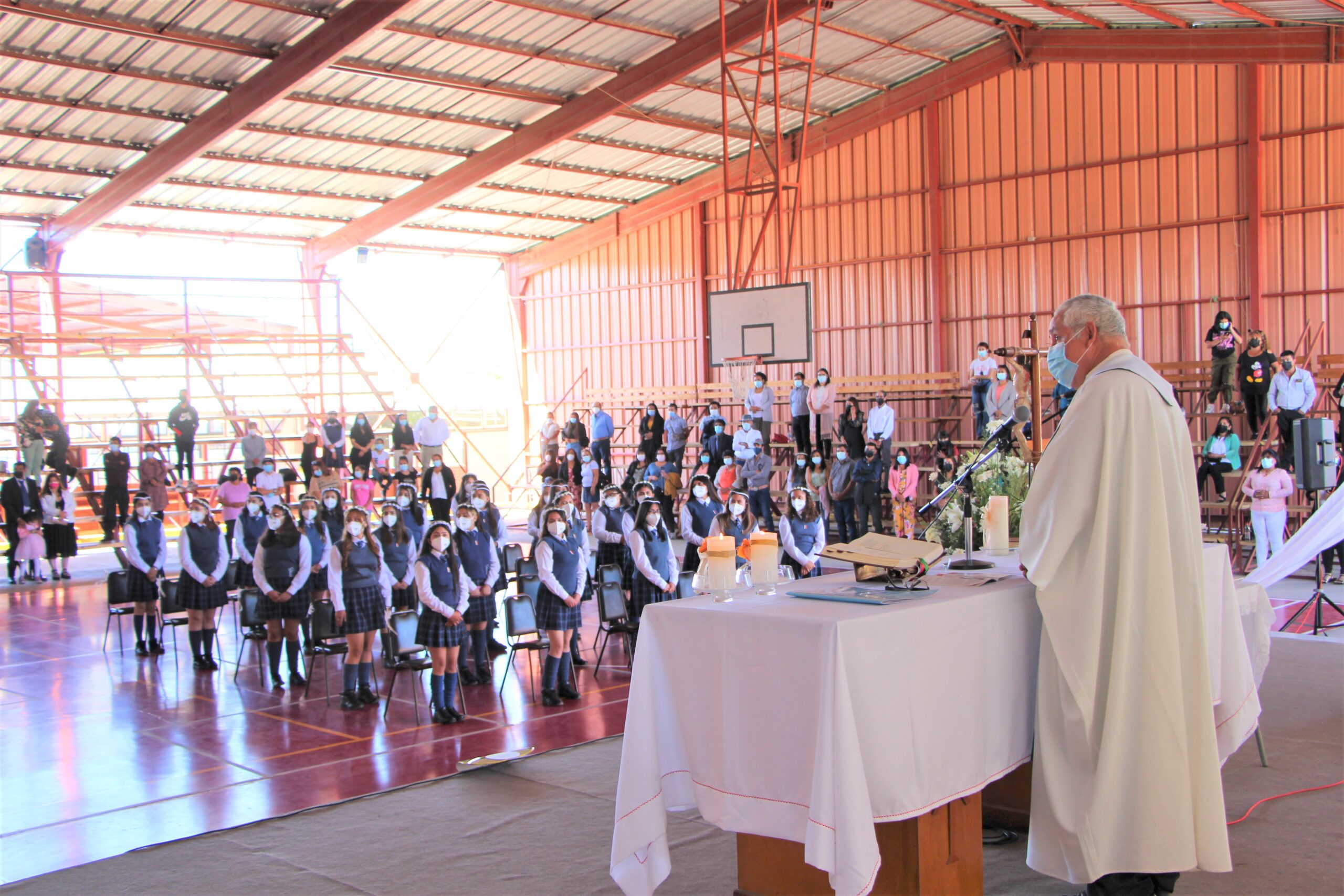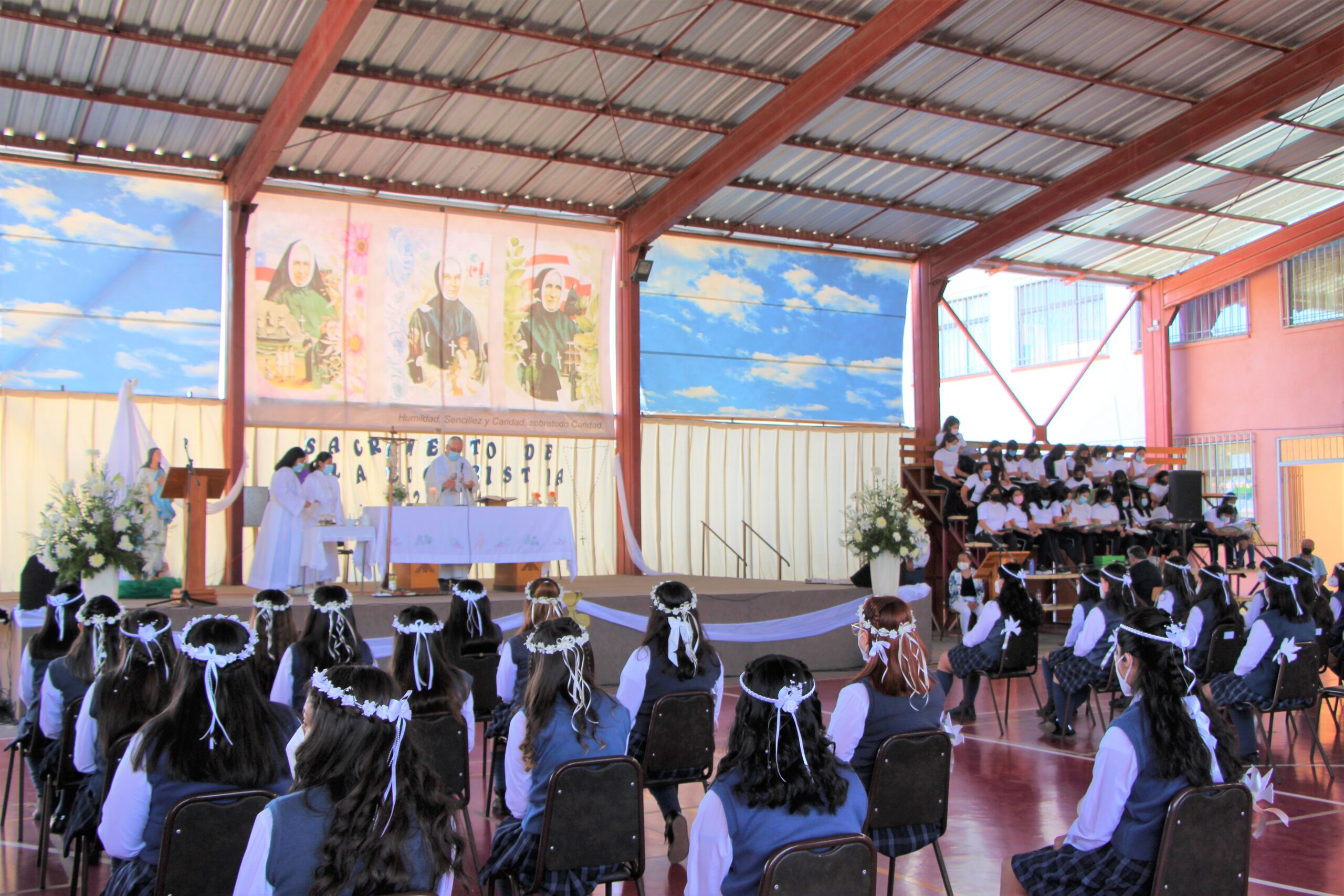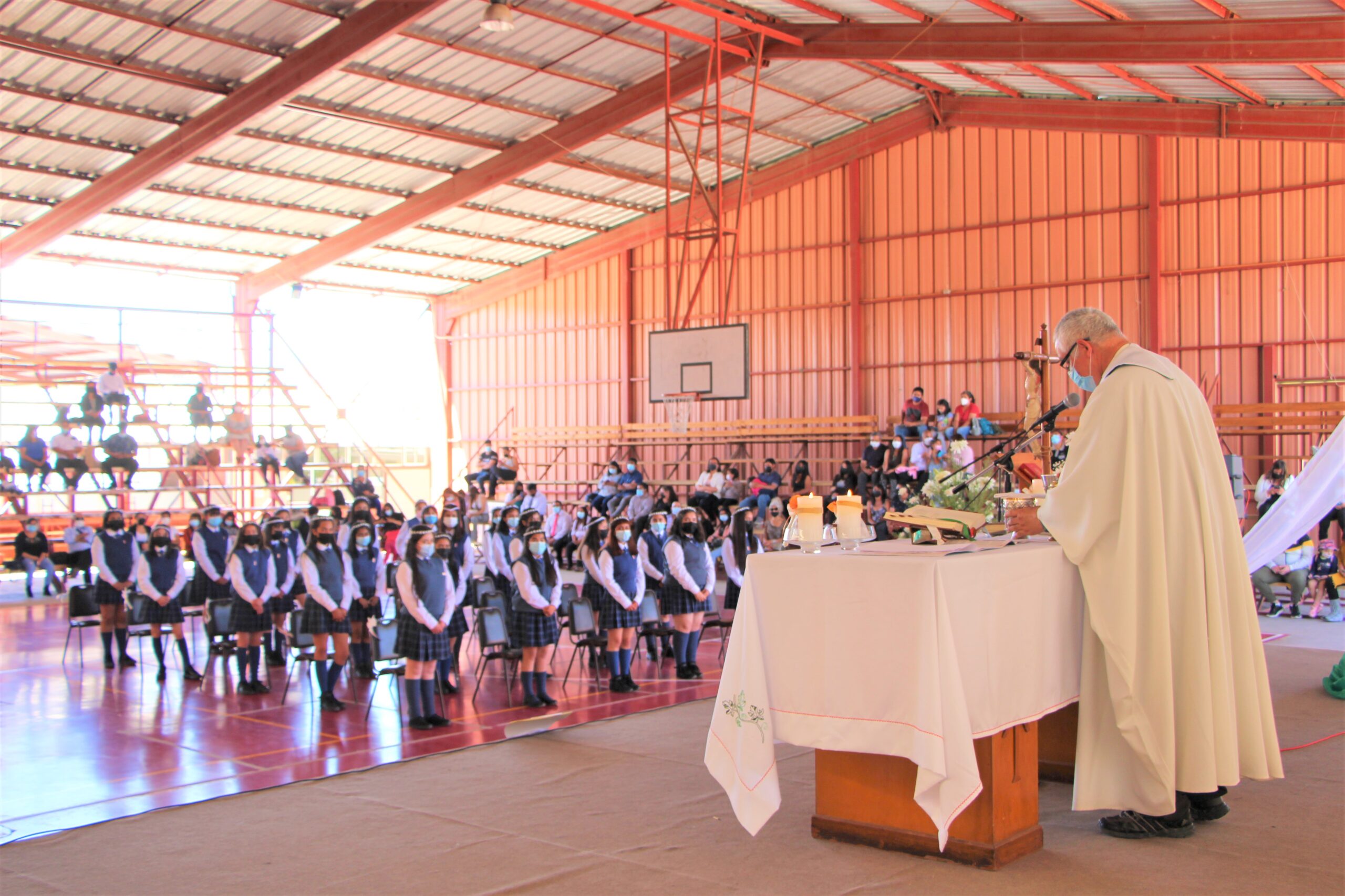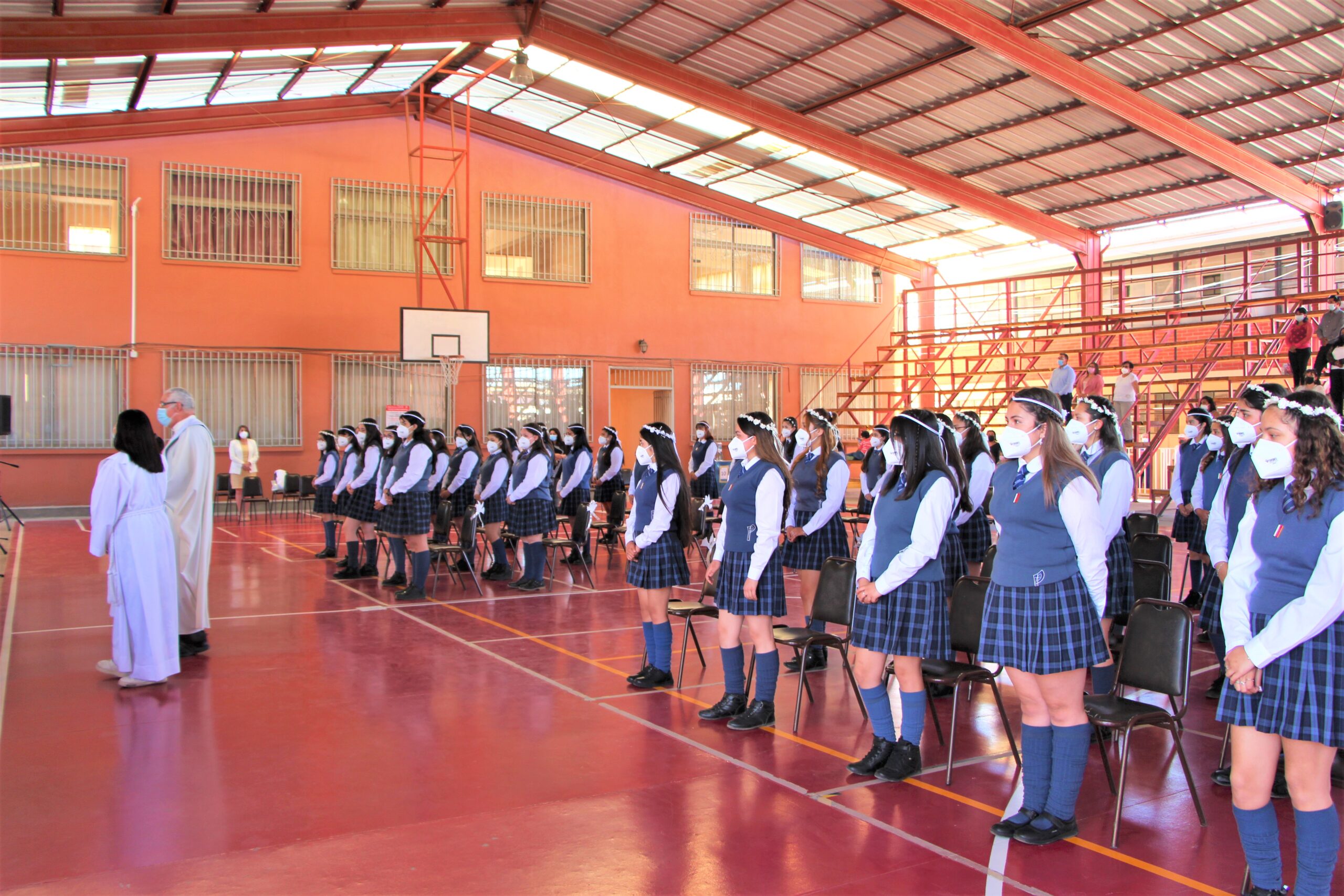 La ceremonia litúrgica, fue celebrada por el capellán, Padre Juan Carlos Godoy, en el techado de nuestro colegio, y nuestras estudiantes fueron acompañadas por sus padres, apoderados, familiares y aquellos docentes que formaron parte de este significativo proceso religioso.