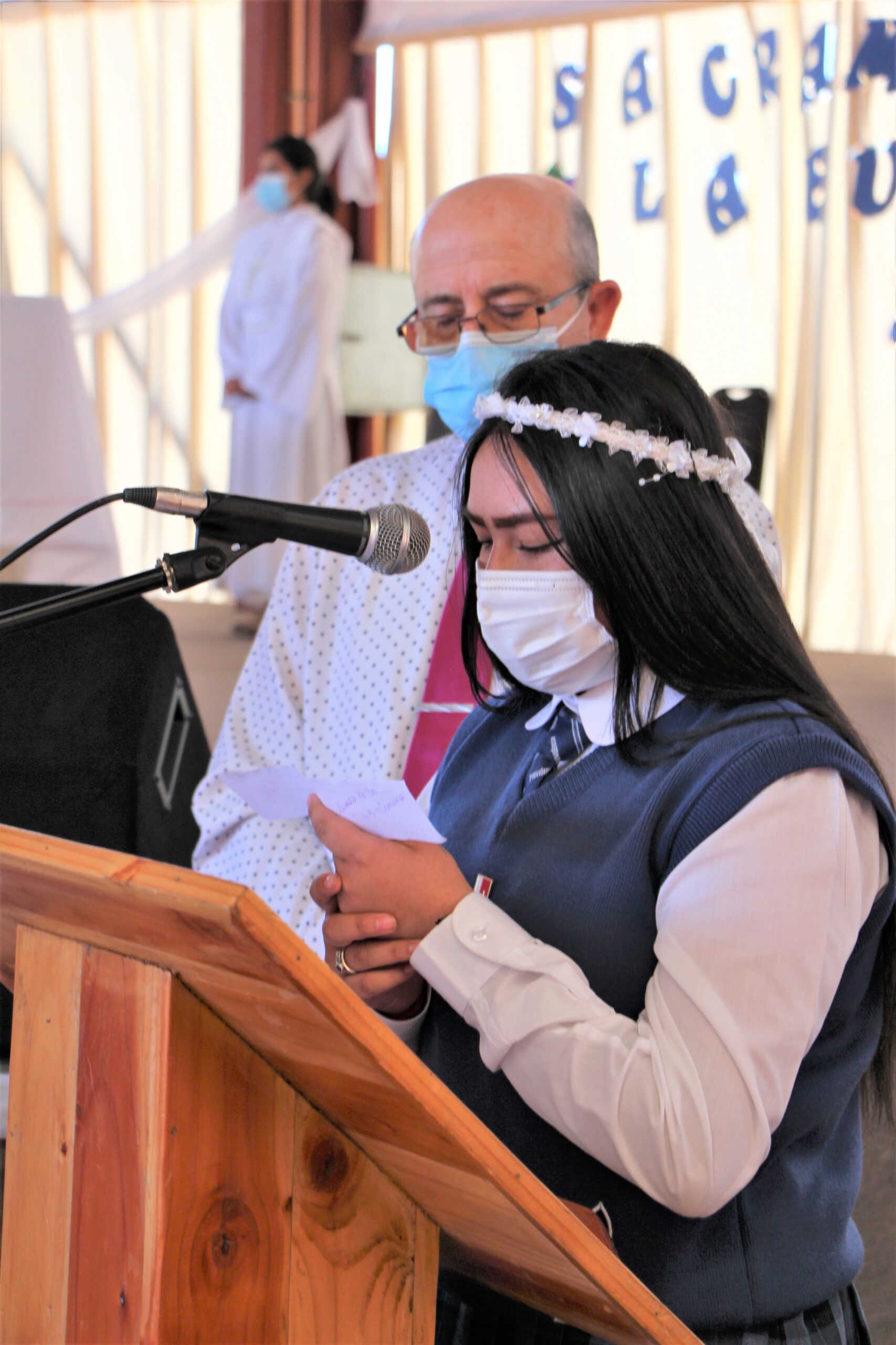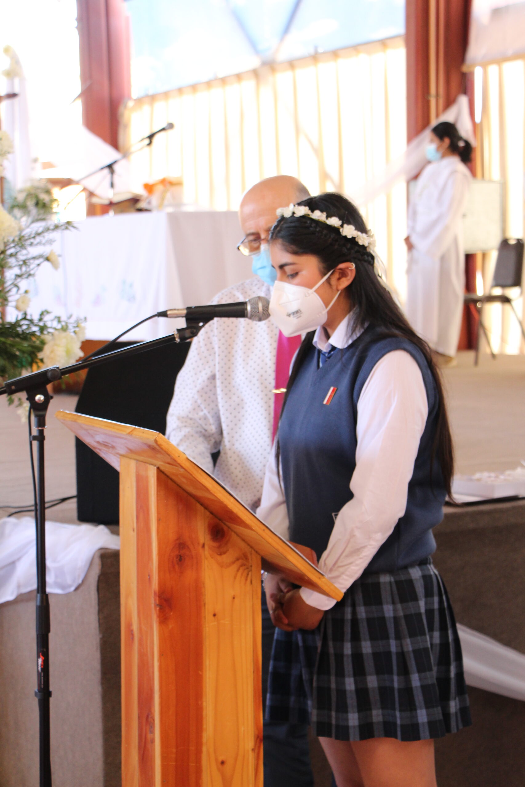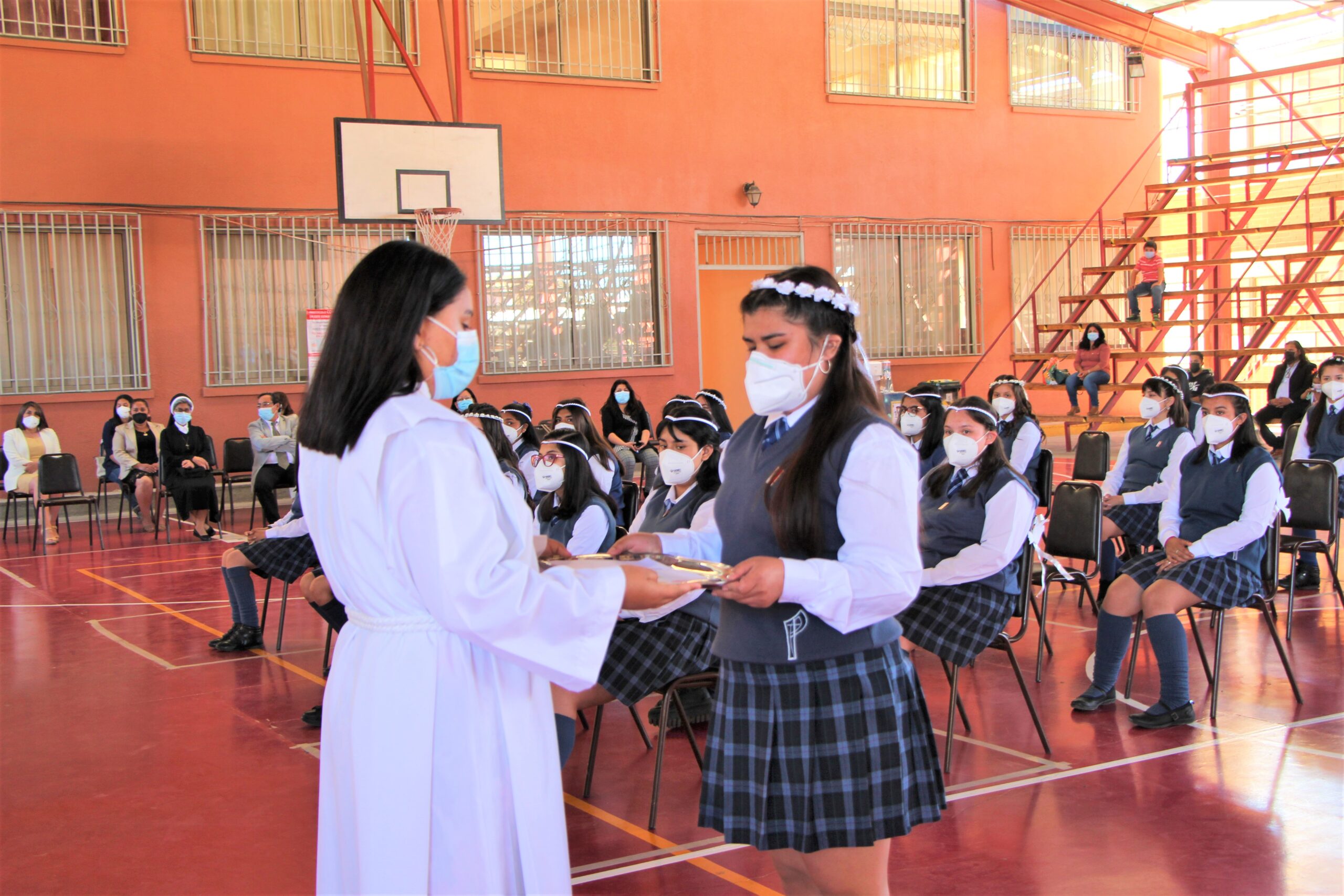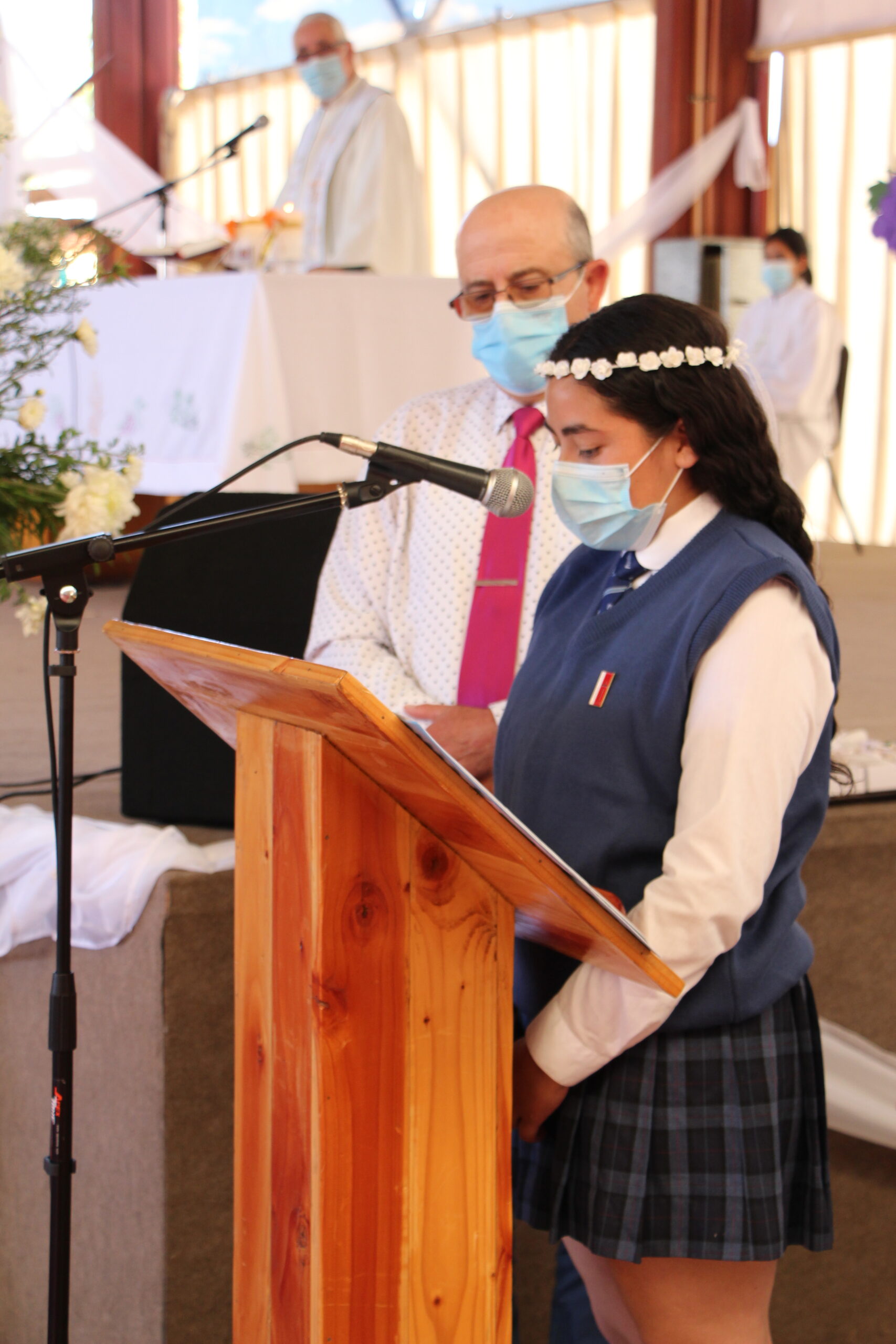 La ceremonia litúrgica, fue celebrada por el capellán, Padre Juan Carlos Godoy, en el techado de nuestro colegio, y nuestras estudiantes fueron acompañadas por sus padres, apoderados, familiares y aquellos docentes que formaron parte de este significativo proceso religioso.