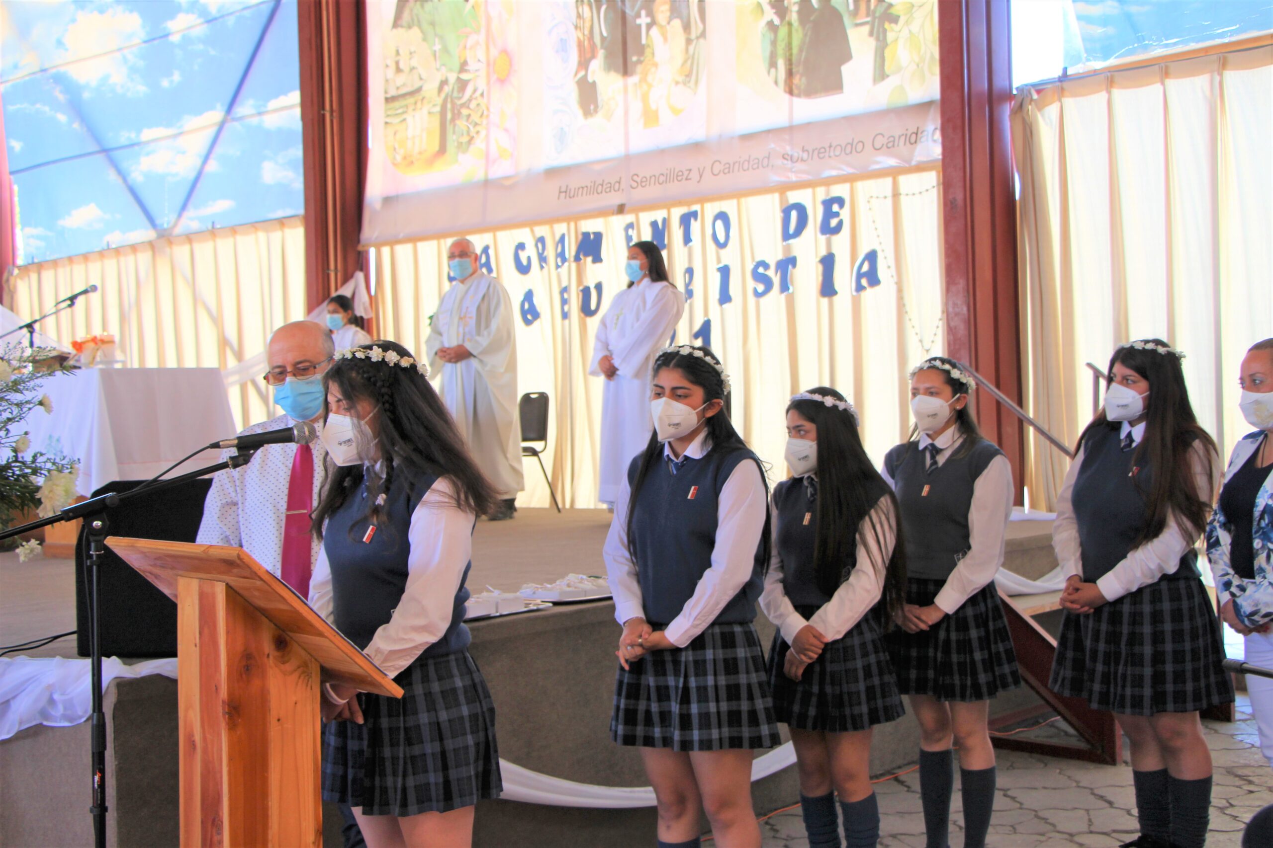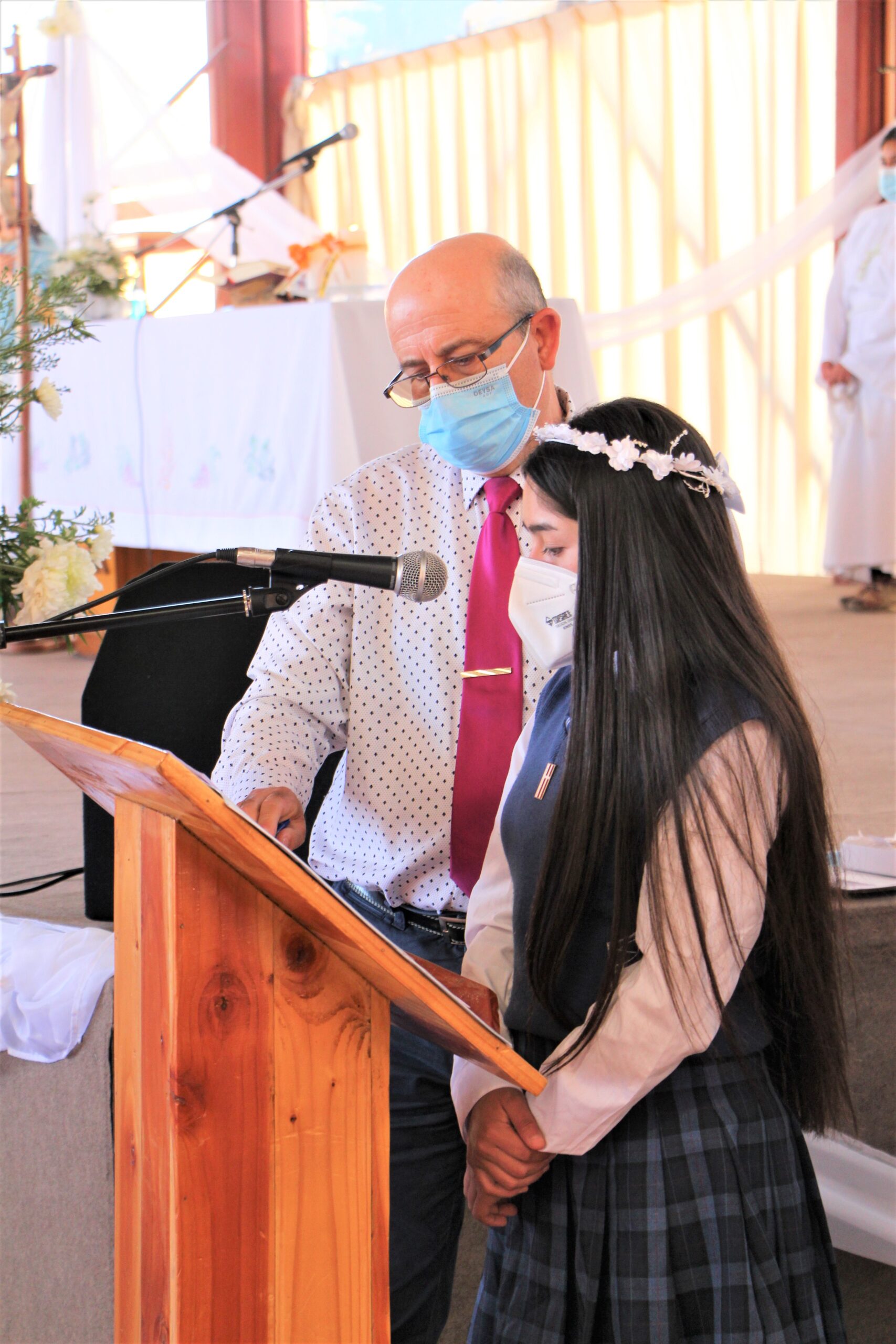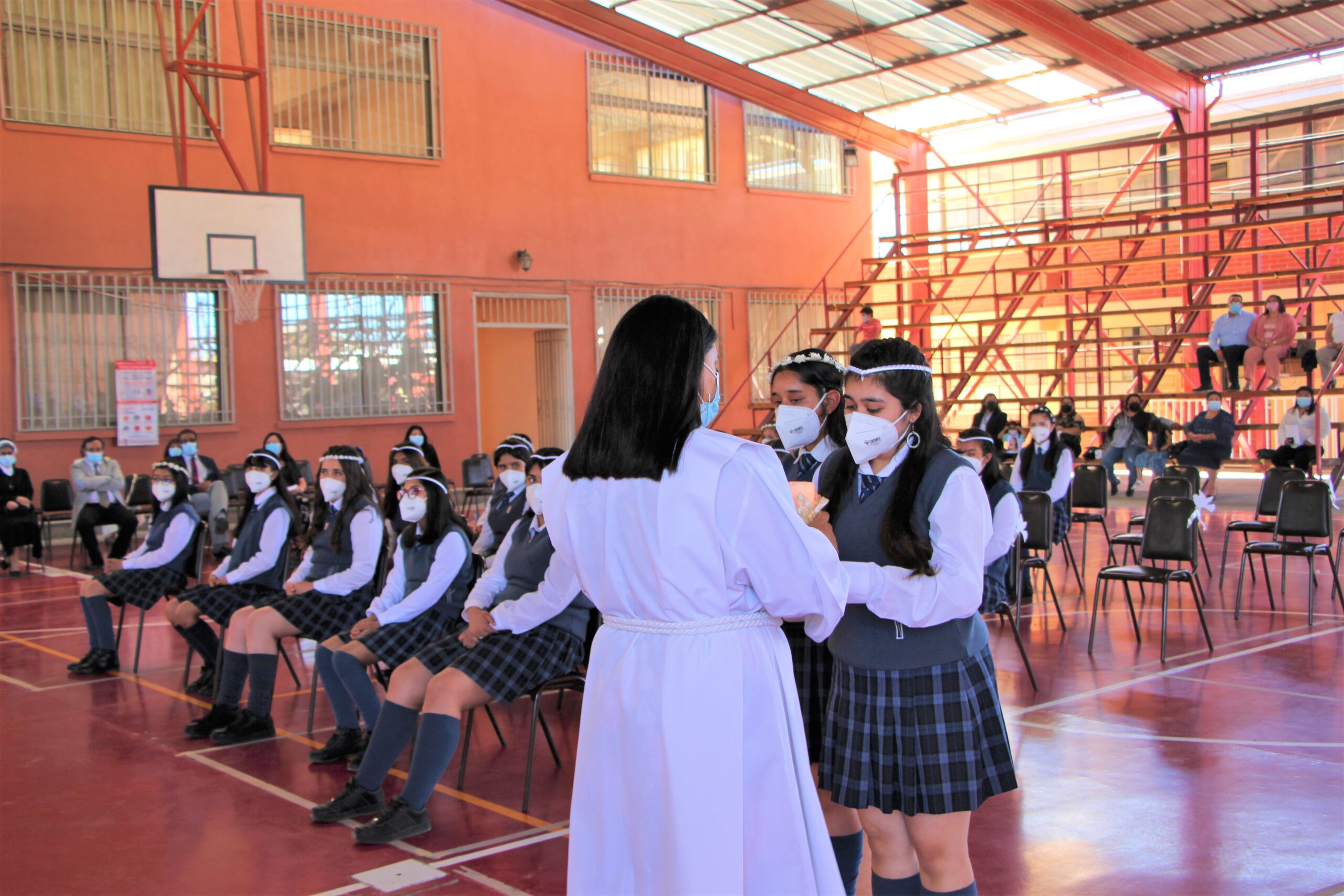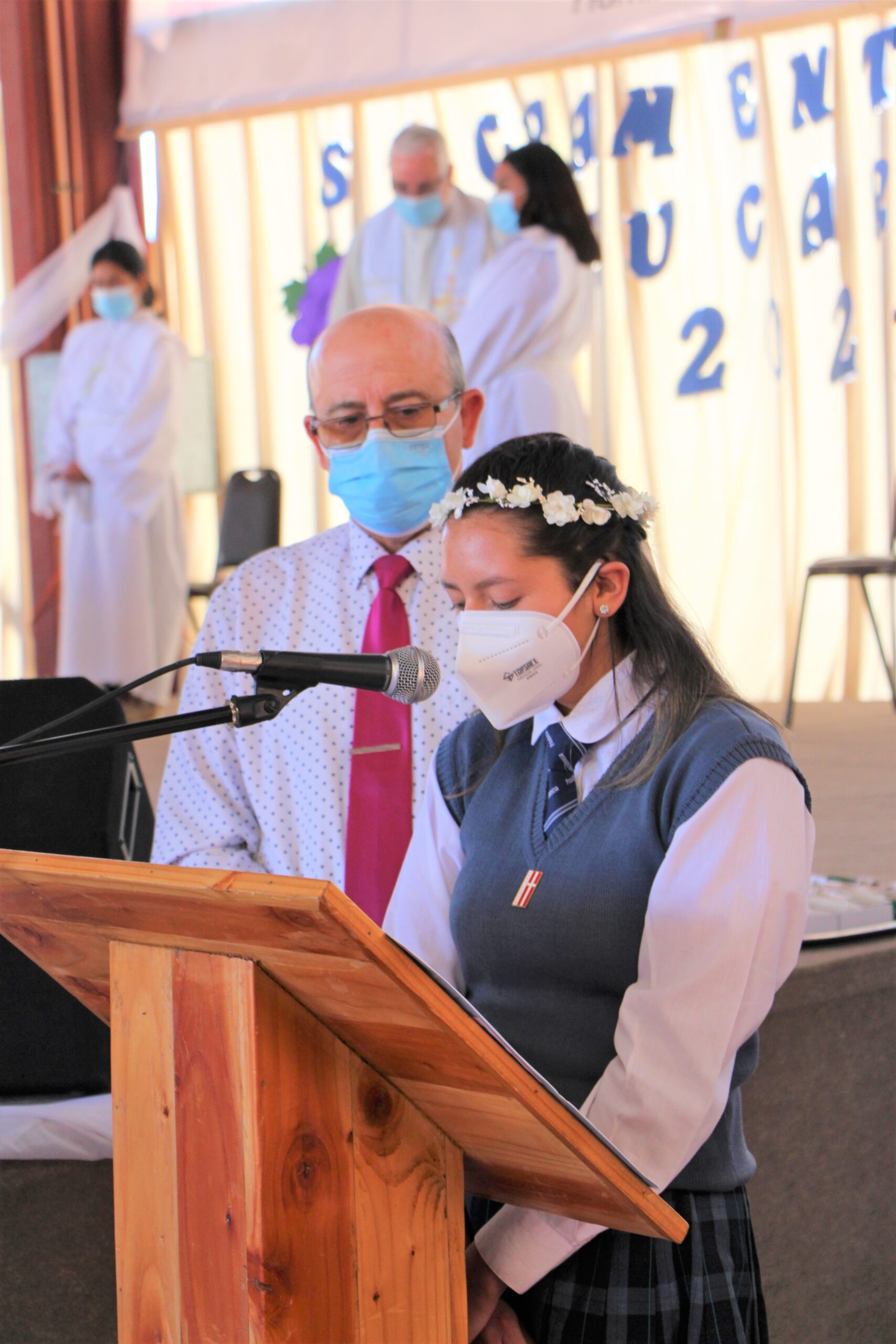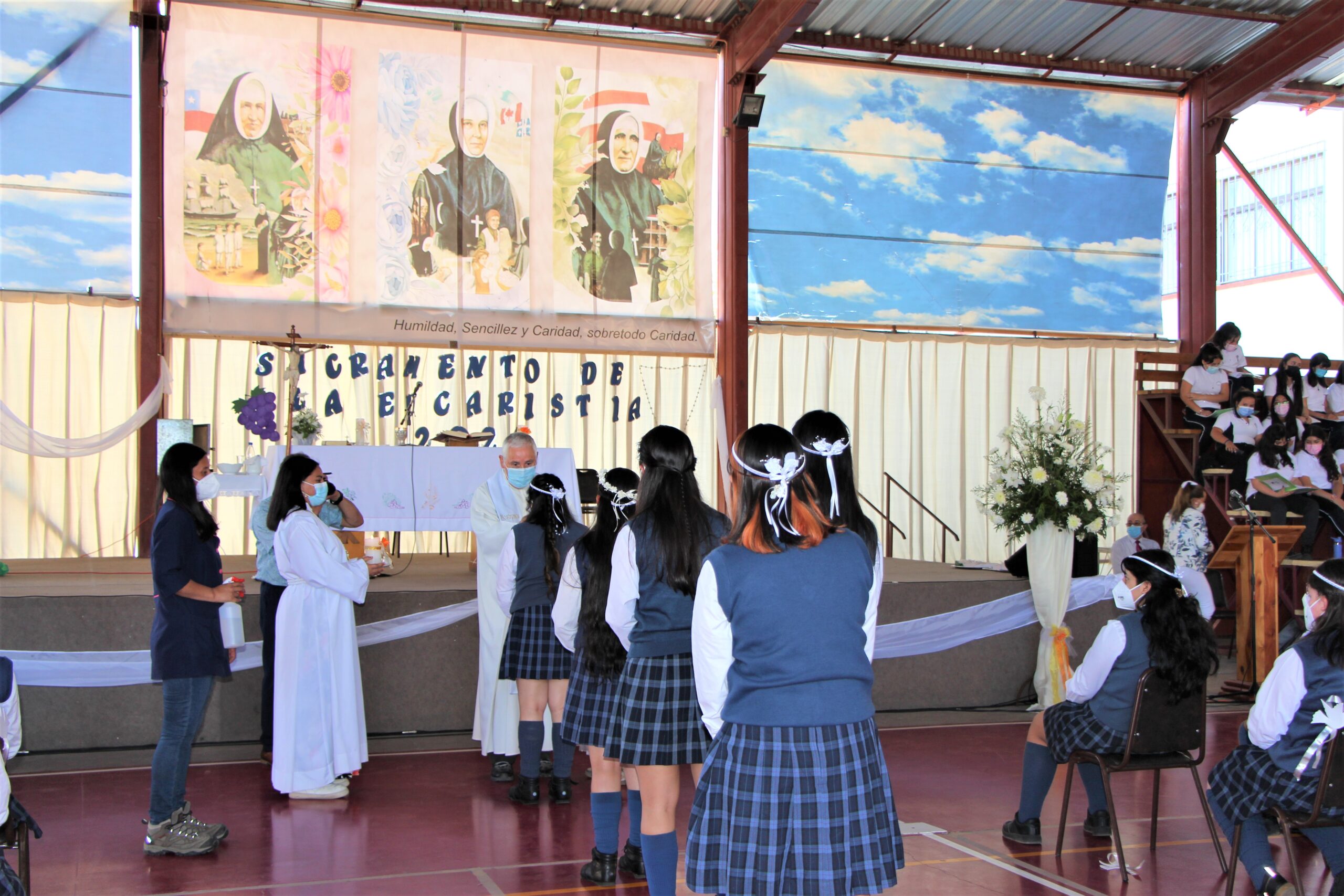 La ceremonia litúrgica, fue celebrada por el capellán, Padre Juan Carlos Godoy, en el techado de nuestro colegio, y nuestras estudiantes fueron acompañadas por sus padres, apoderados, familiares y aquellos docentes que formaron parte de este significativo proceso religioso.