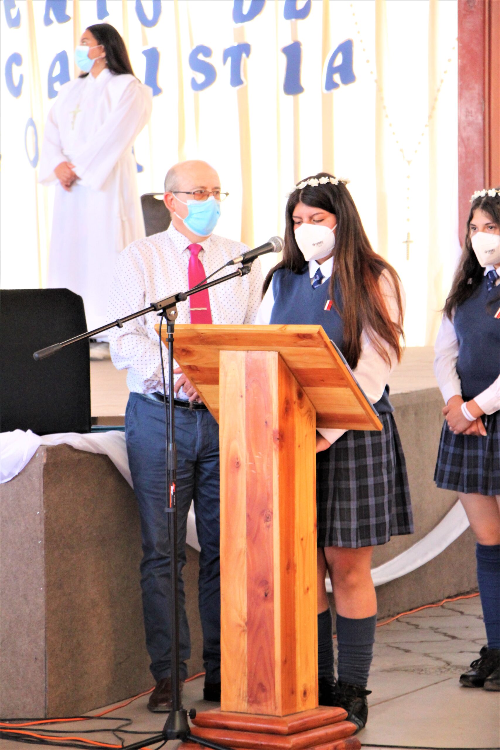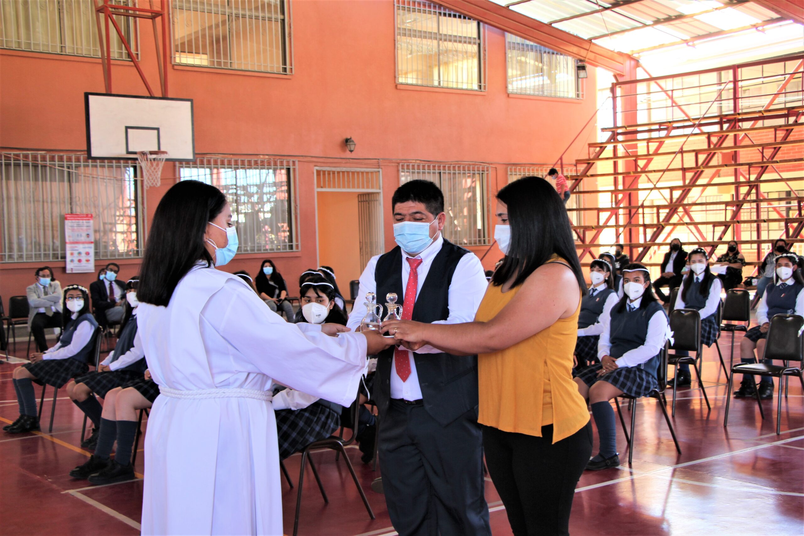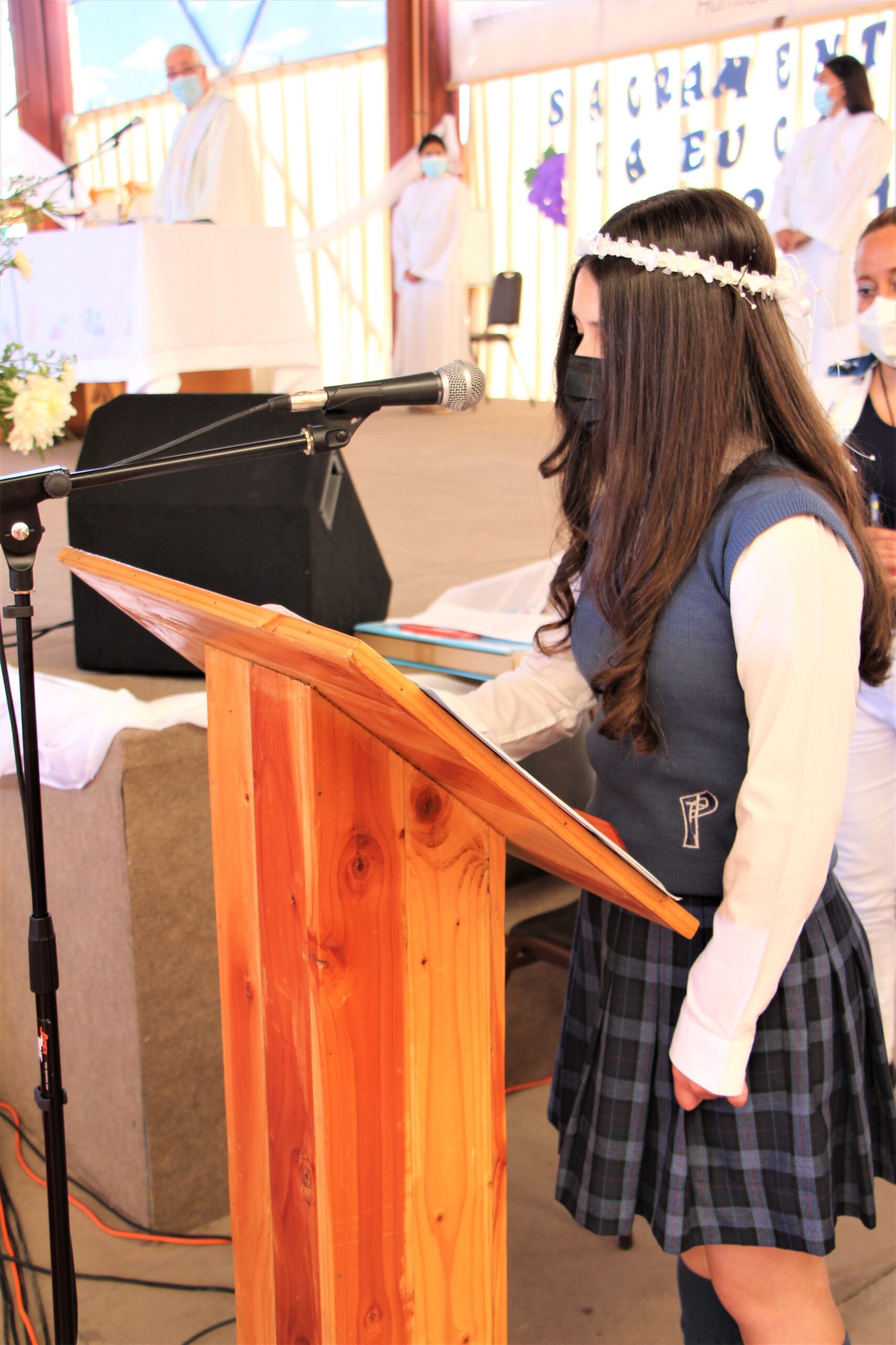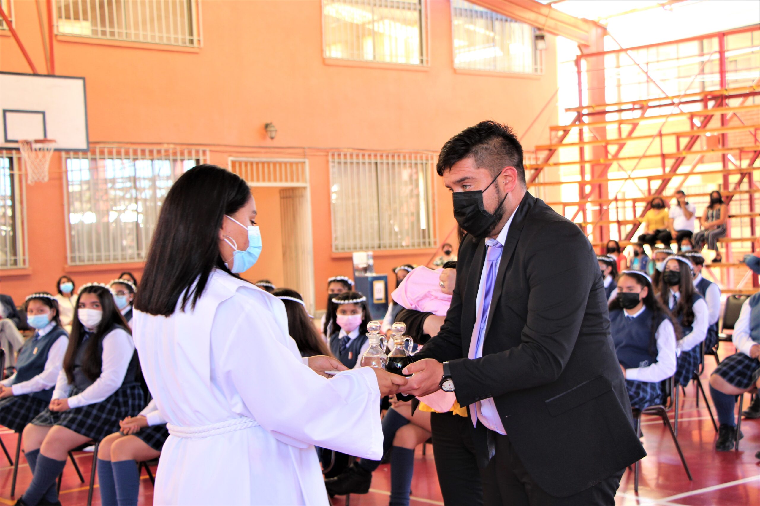 La ceremonia litúrgica, fue celebrada por el capellán, Padre Juan Carlos Godoy, en el techado de nuestro colegio, y nuestras estudiantes fueron acompañadas por sus padres, apoderados, familiares y aquellos docentes que formaron parte de este significativo proceso religioso.