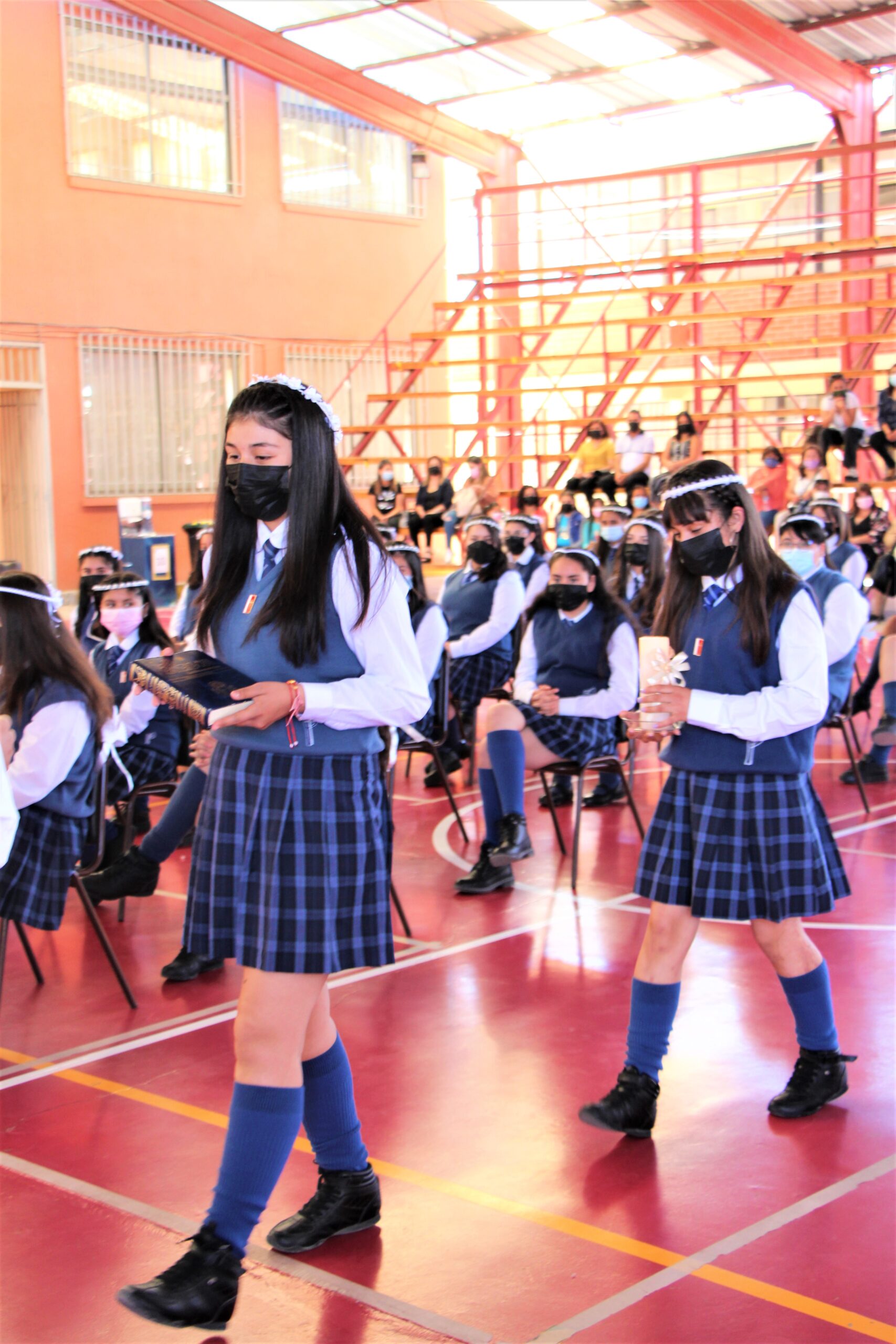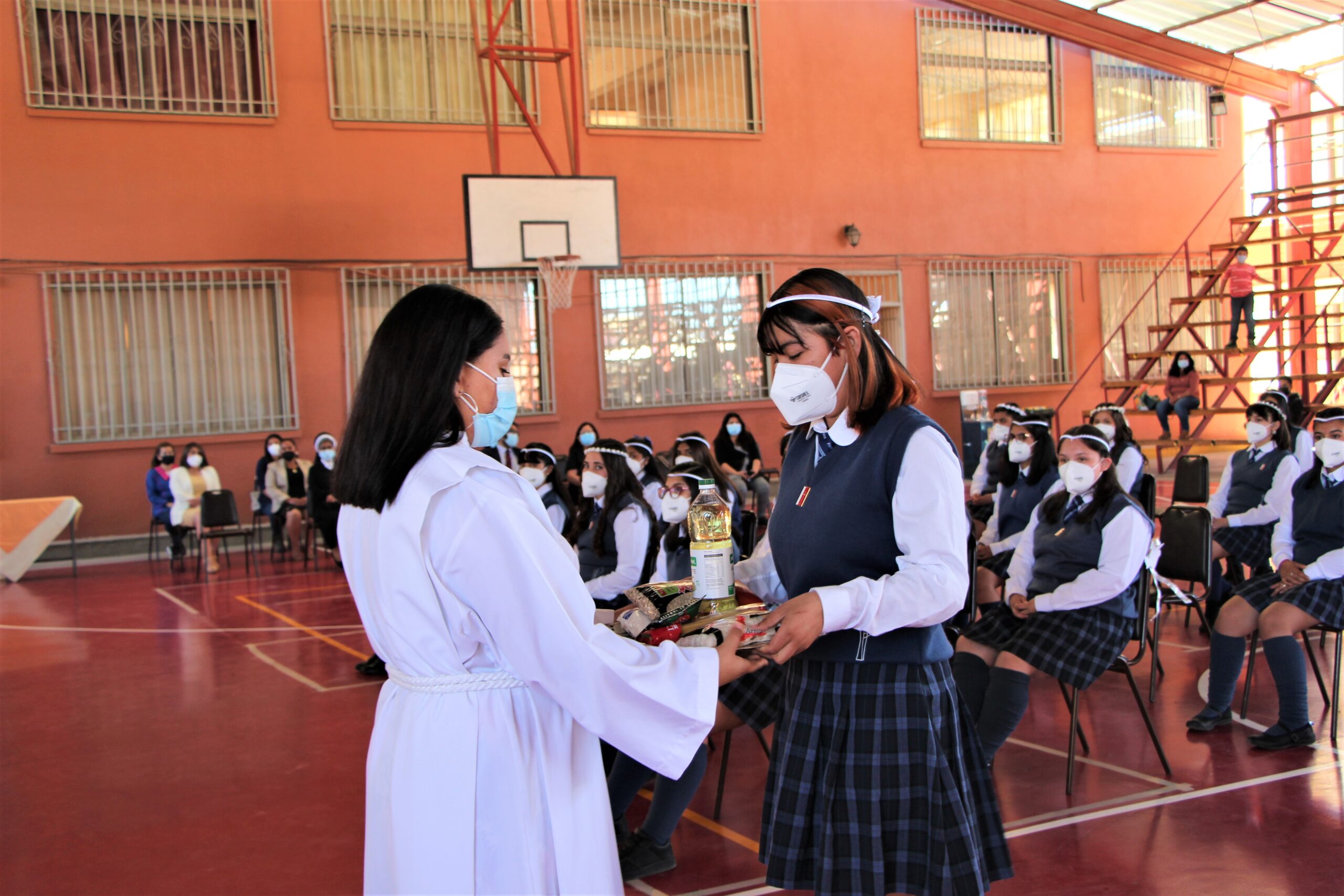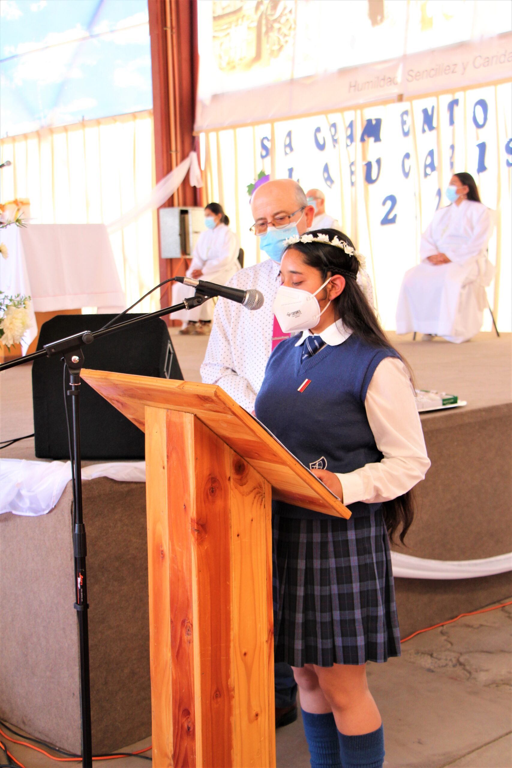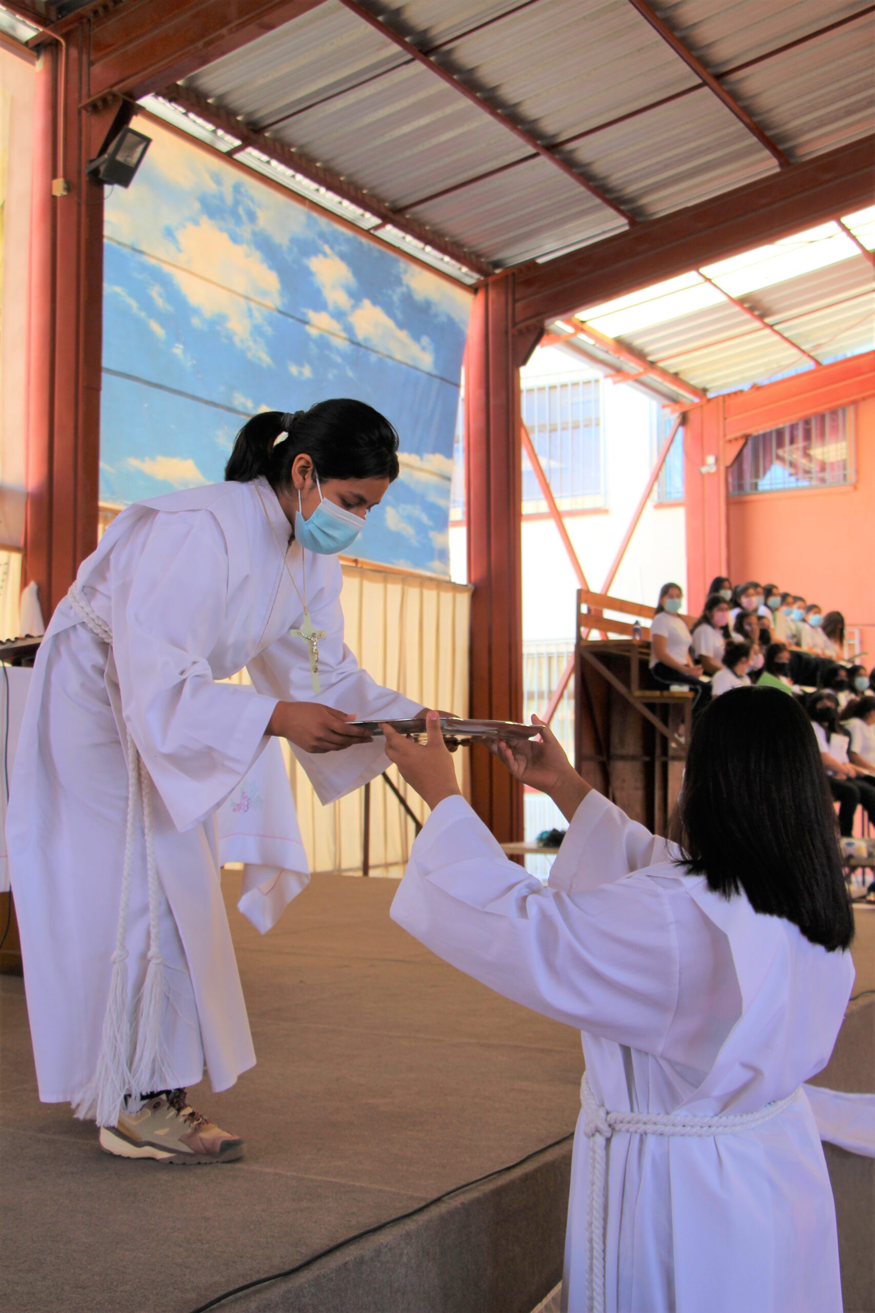 La ceremonia litúrgica, fue celebrada por el capellán, Padre Juan Carlos Godoy, en el techado de nuestro colegio, y nuestras estudiantes fueron acompañadas por sus padres, apoderados, familiares y aquellos docentes que formaron parte de este significativo proceso religioso.