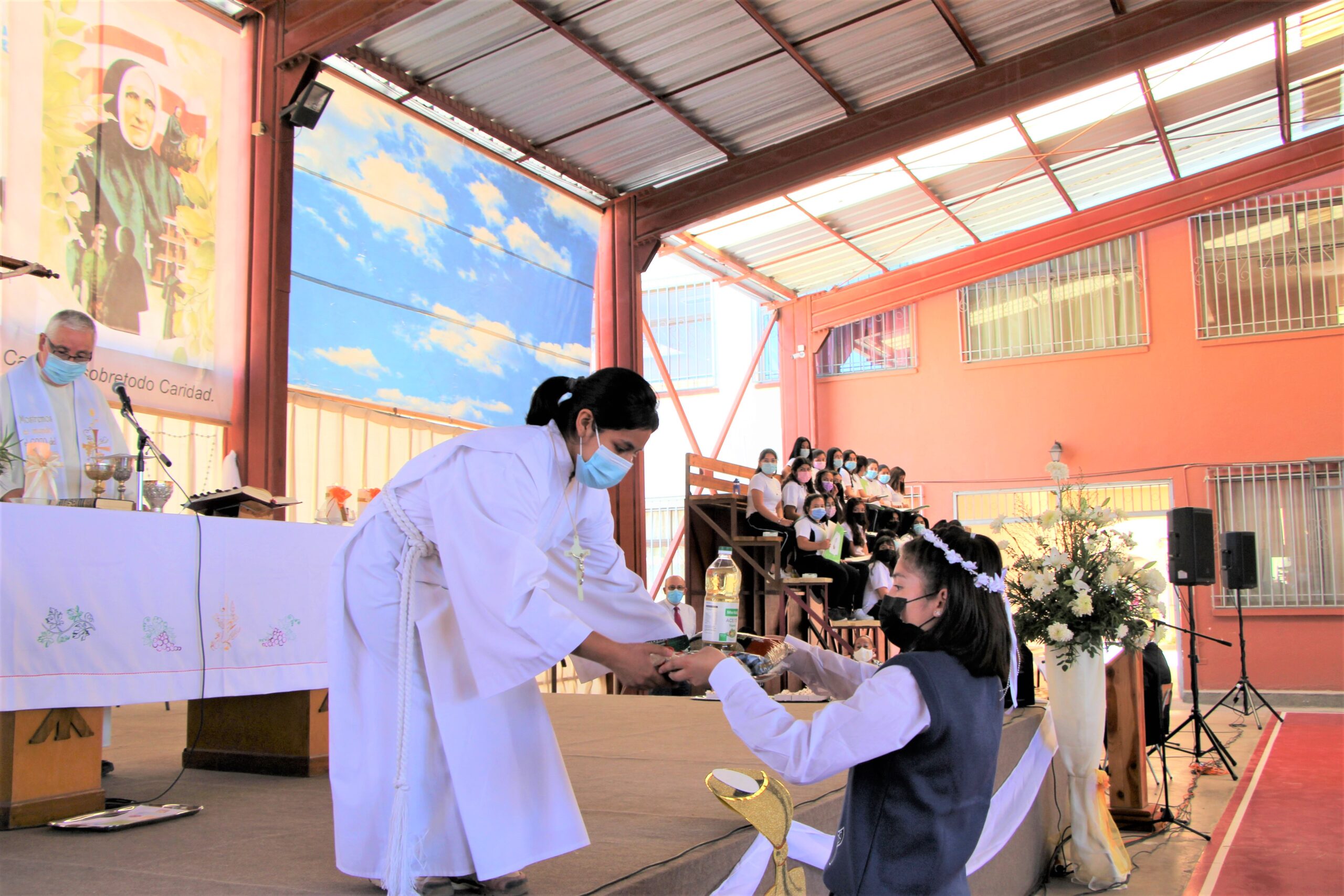 El pasado jueves 9 de diciembre nuestras estudiantes desde  7mo básico a 4to medio realizaron su Primera Comunión, ritual en el que reciben por primera vez el cuerpo y la sangre de Jesucristo.