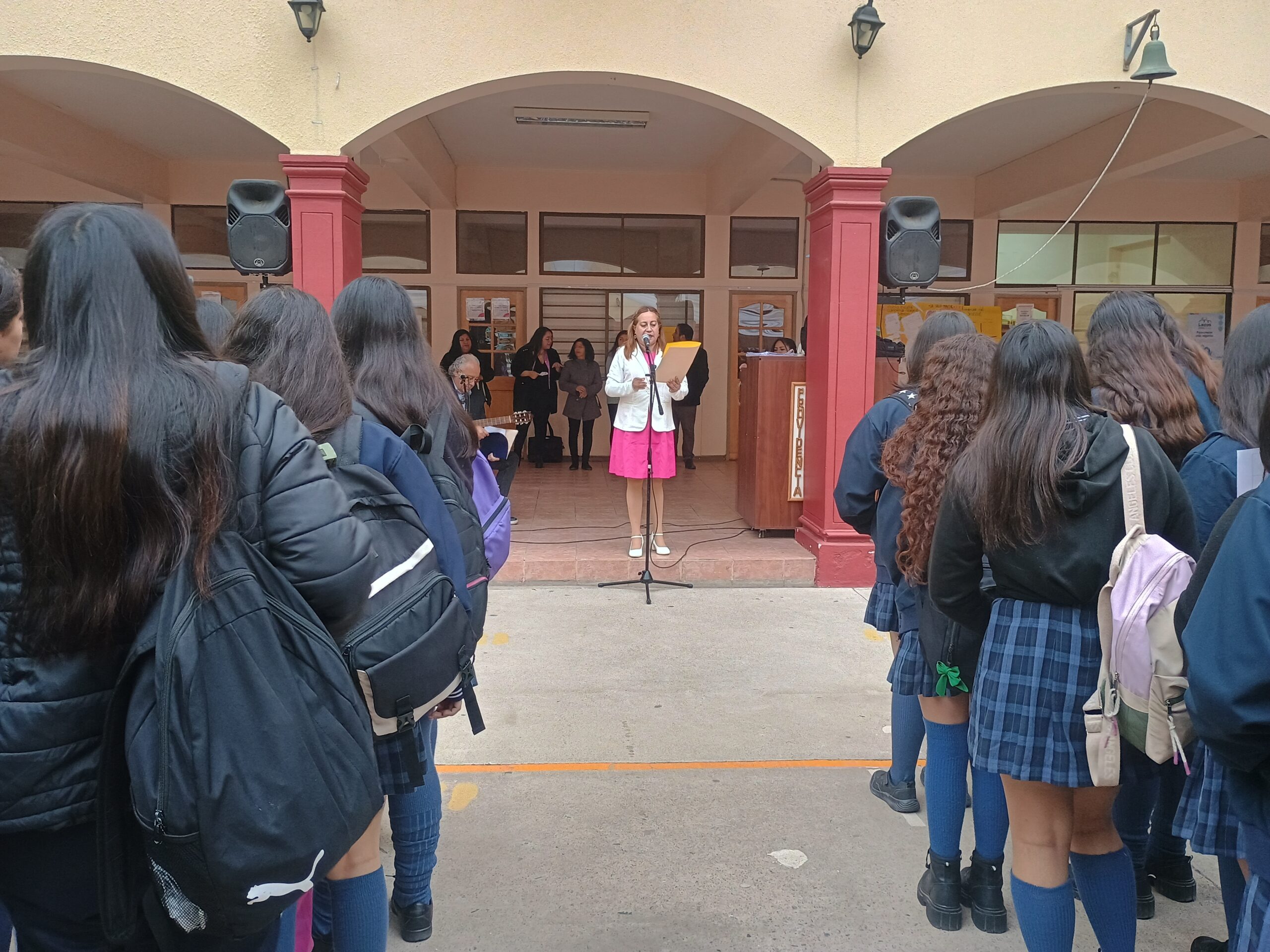El pasado viernes 4 de octubre con motivo de un nuevo aniversario del fallecimiento de Madre Bernarda Morín, el equipo de Pastoral organizó la oración matinal en el Patio San José del establecimiento, contando con la participación de los asistentes de la Educación, Docentes y Estudiantes.