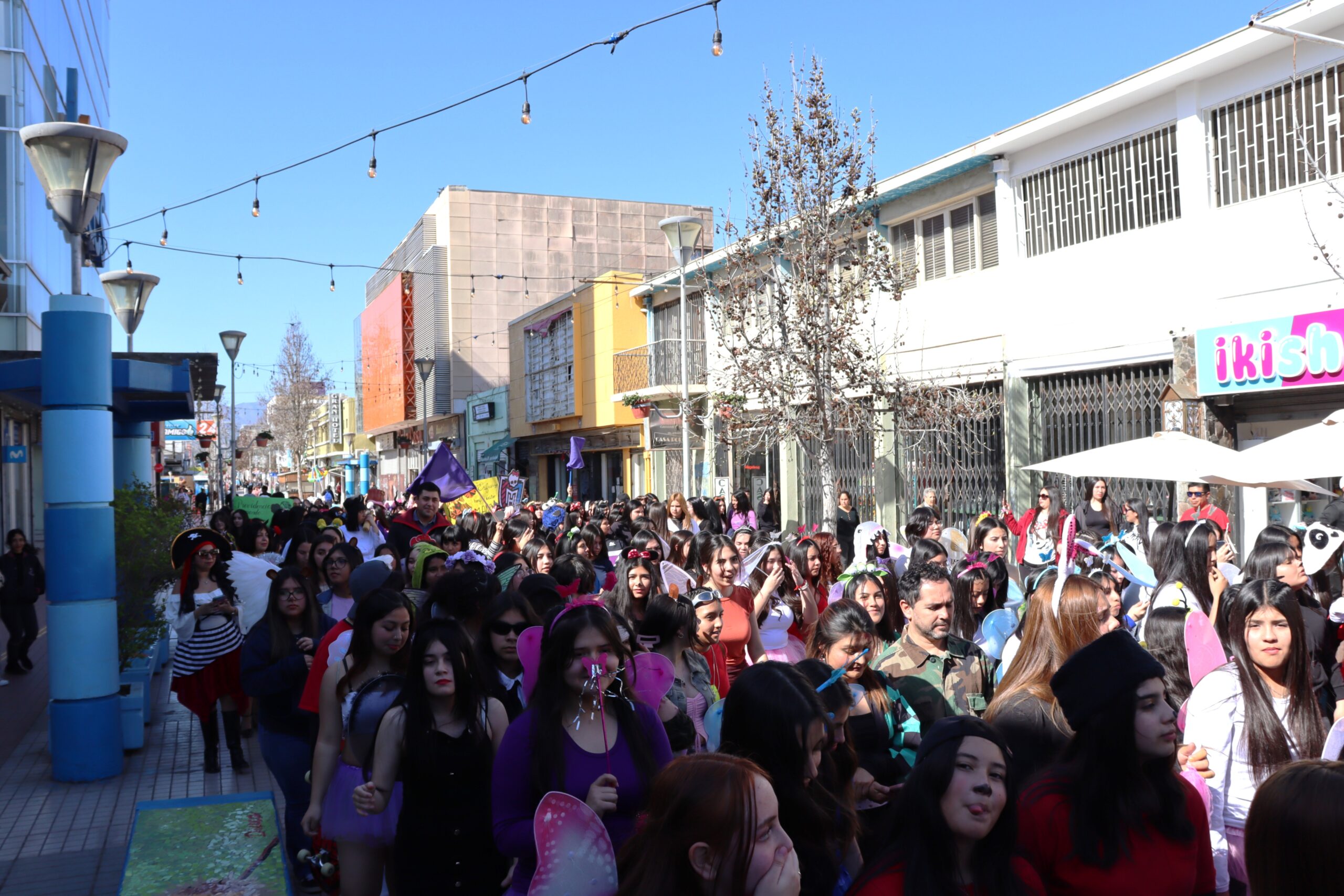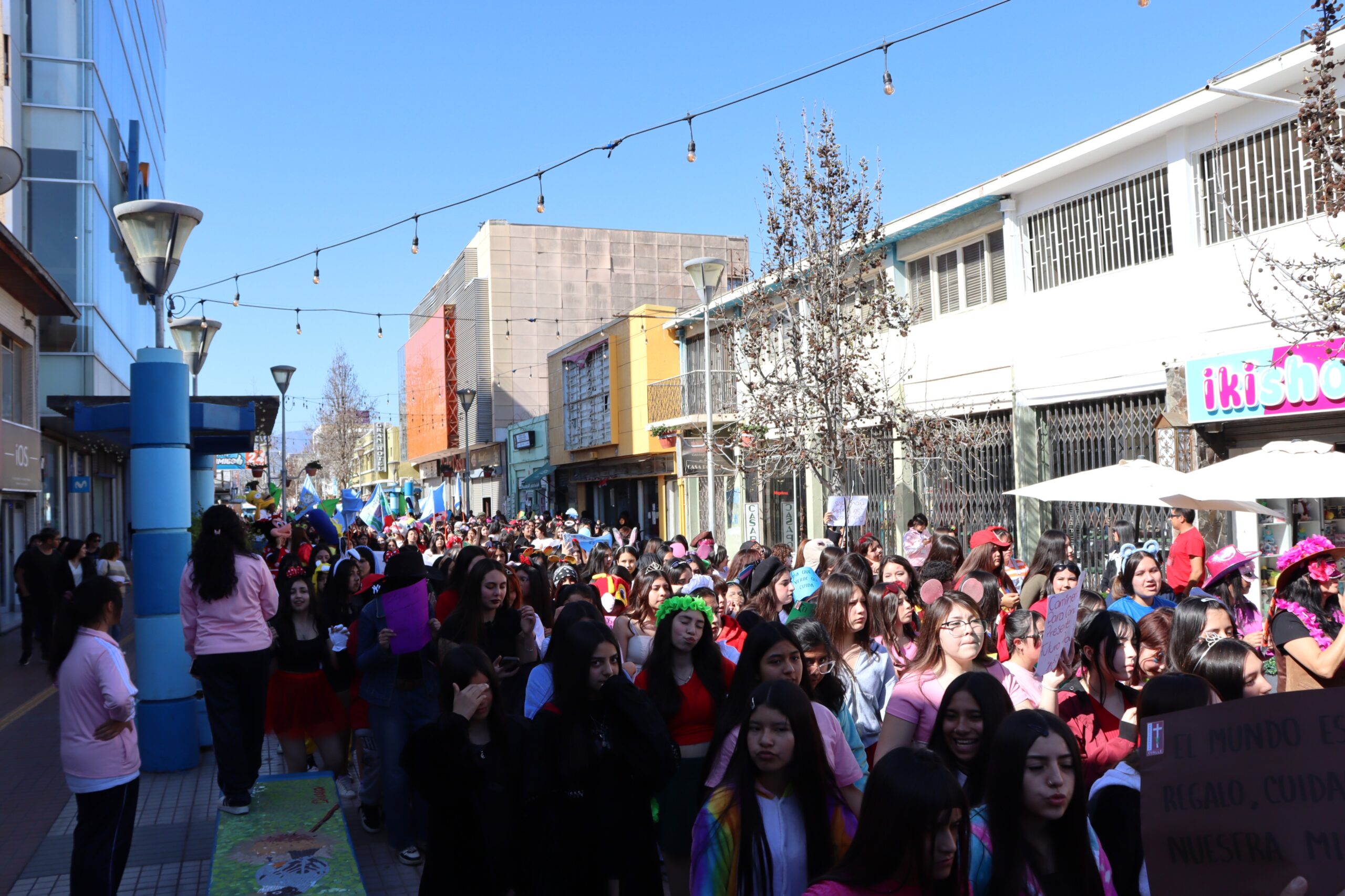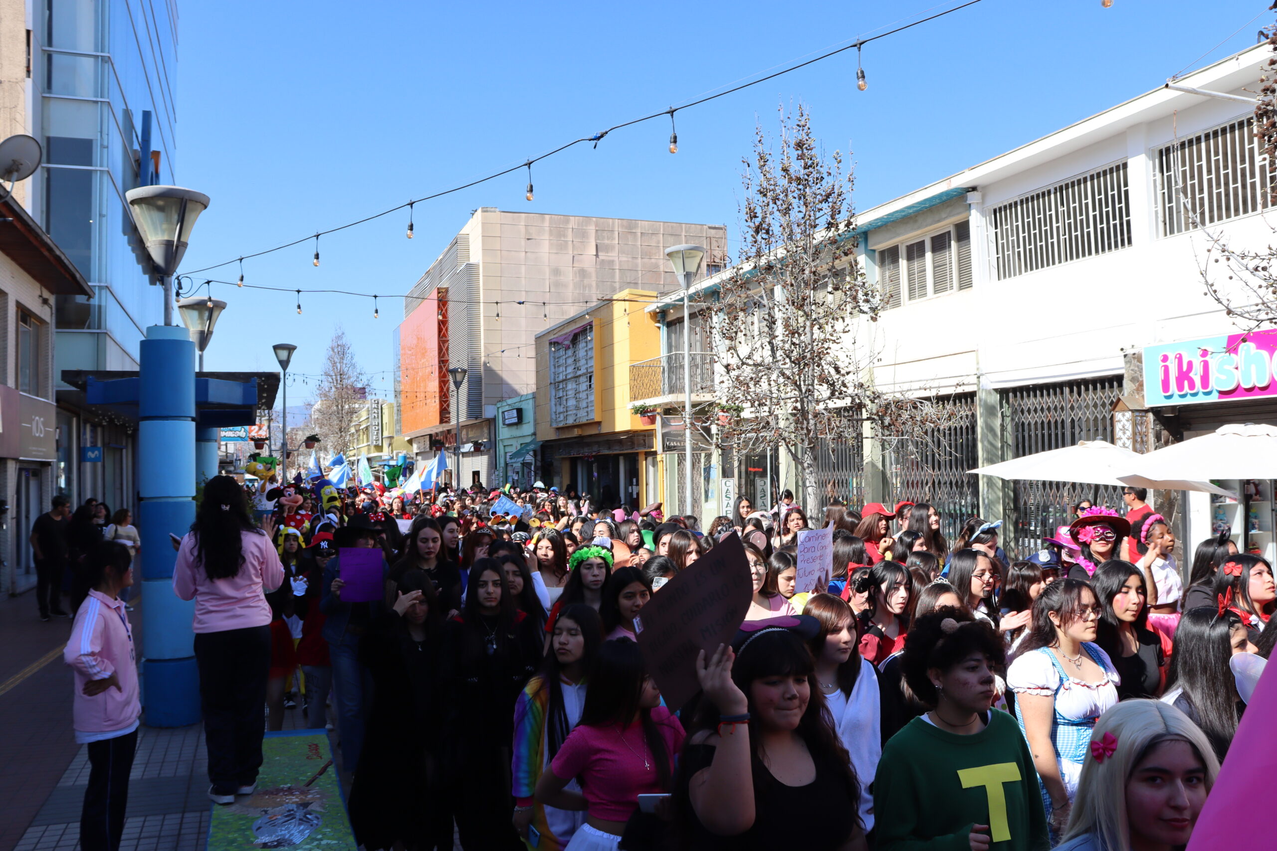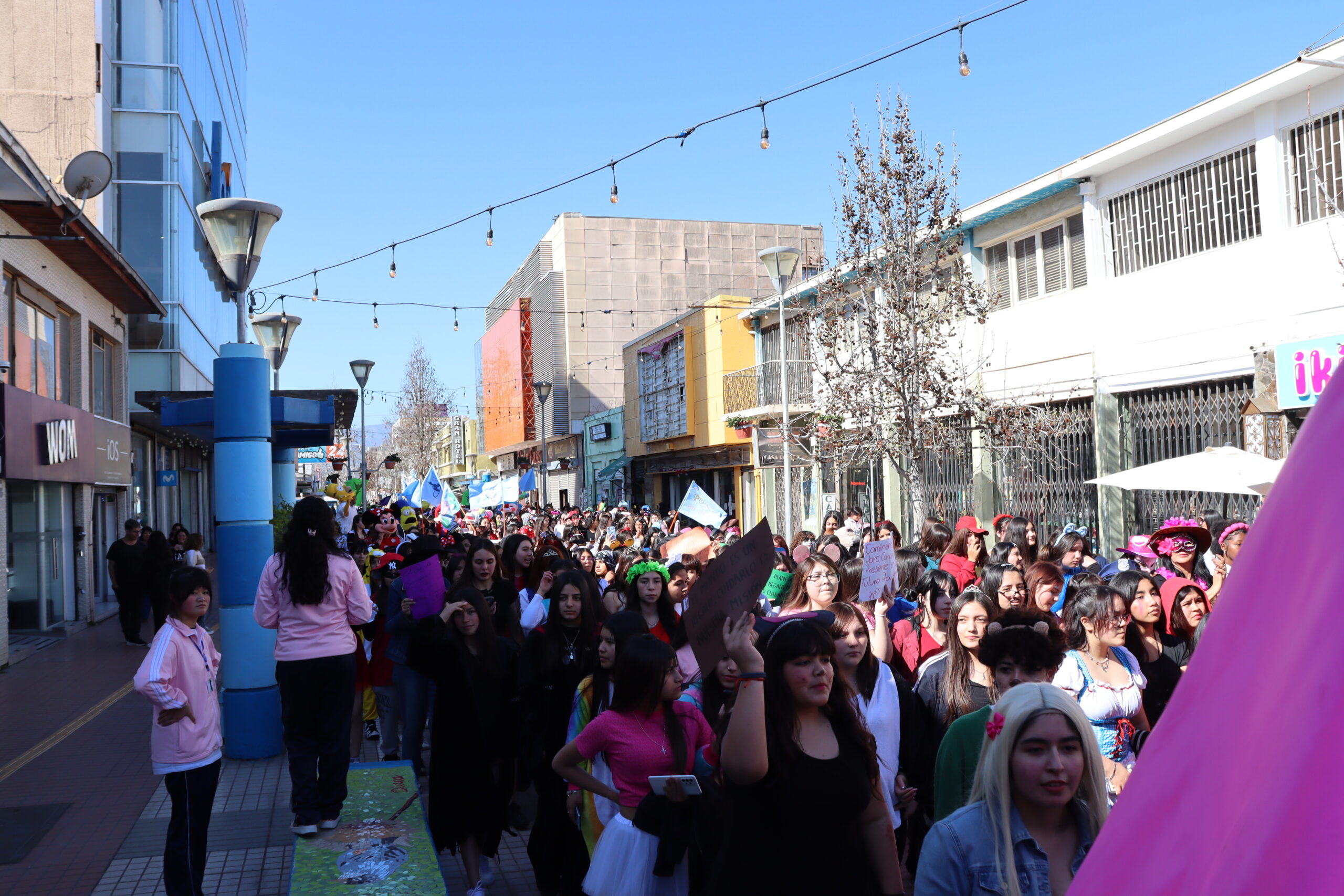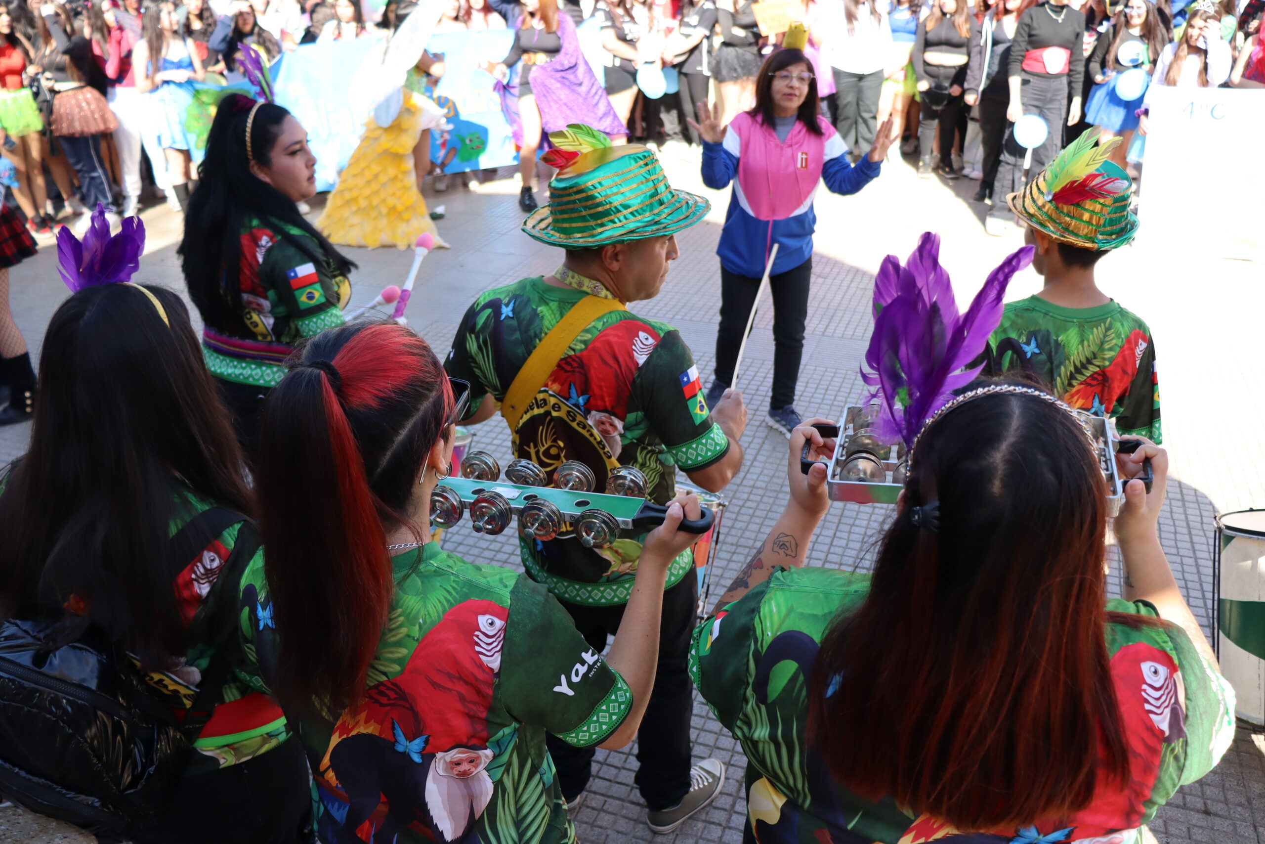 👯♀️ Estudiantes, docentes y familias en un desfile inolvidable Desde el colegio hasta la Plaza de Armas, pasando por el paseo peatonal Vicuña Mackenna, estudiantes organizadas en alianzas —junto a docentes, asistentes de la educación y apoderados— recorrieron las calles contagiando a la comunidad con su energía. El desfile estuvo acompañado por vibrantes batucadas que marcaron el ritmo de la jornada, provocando sonrisas especialmente entre los más pequeños que se encontraban en el lugar.
