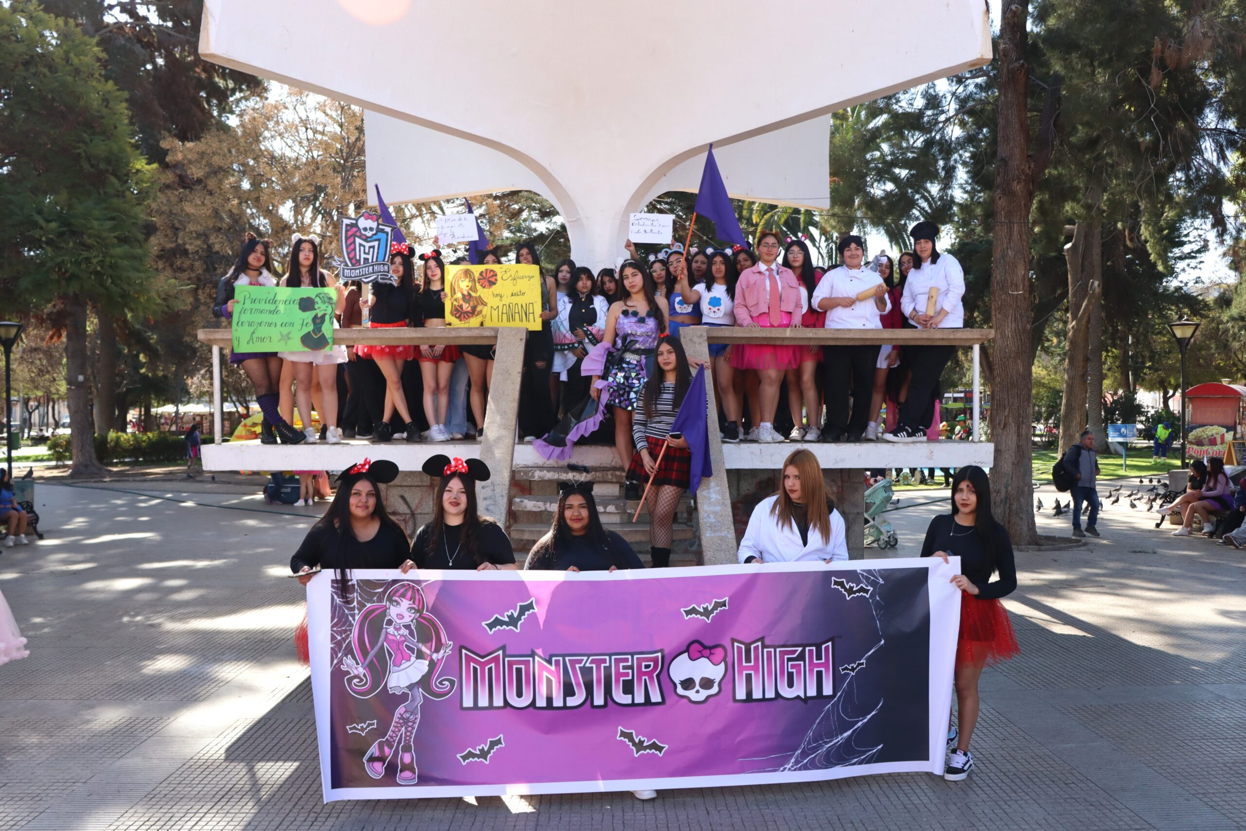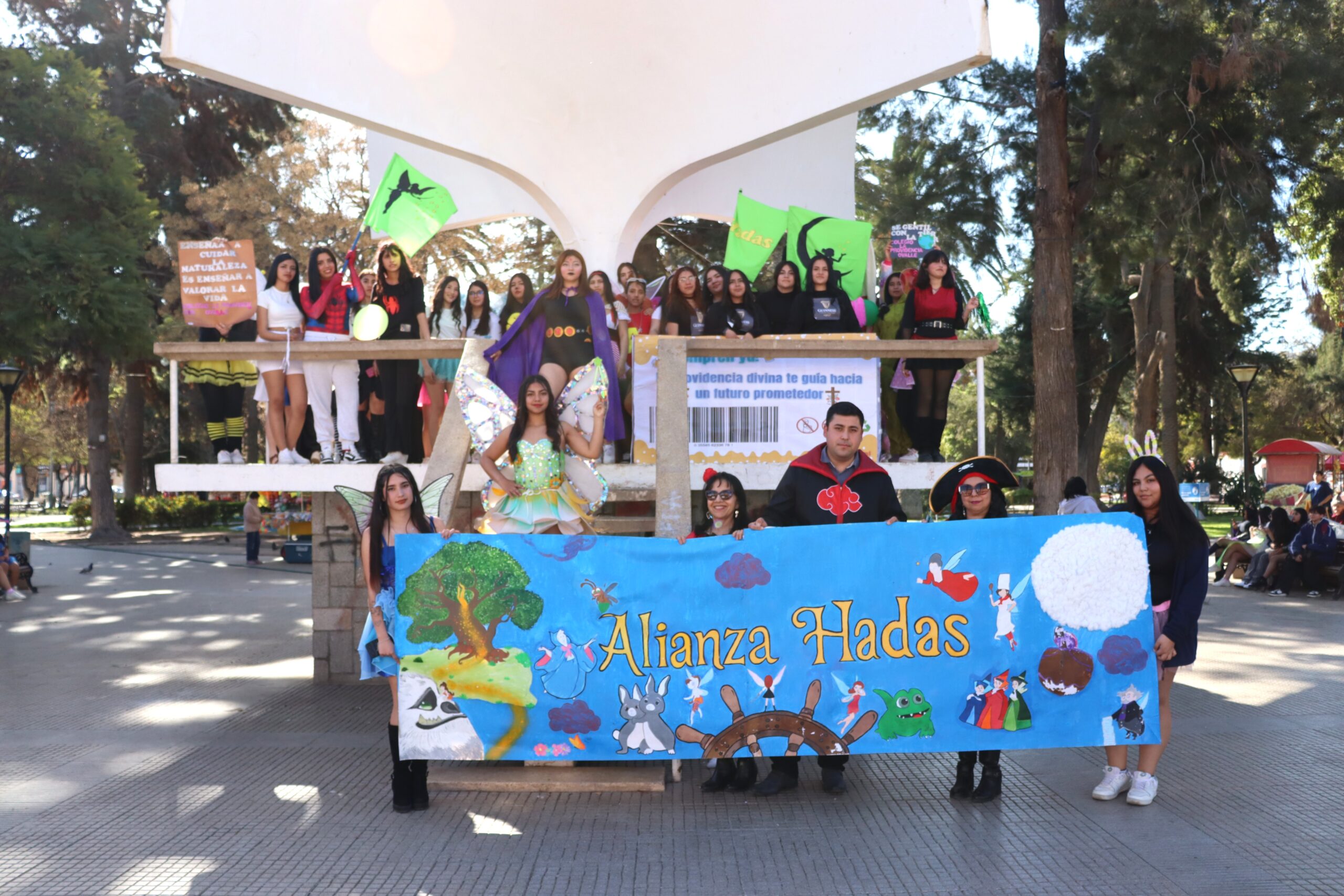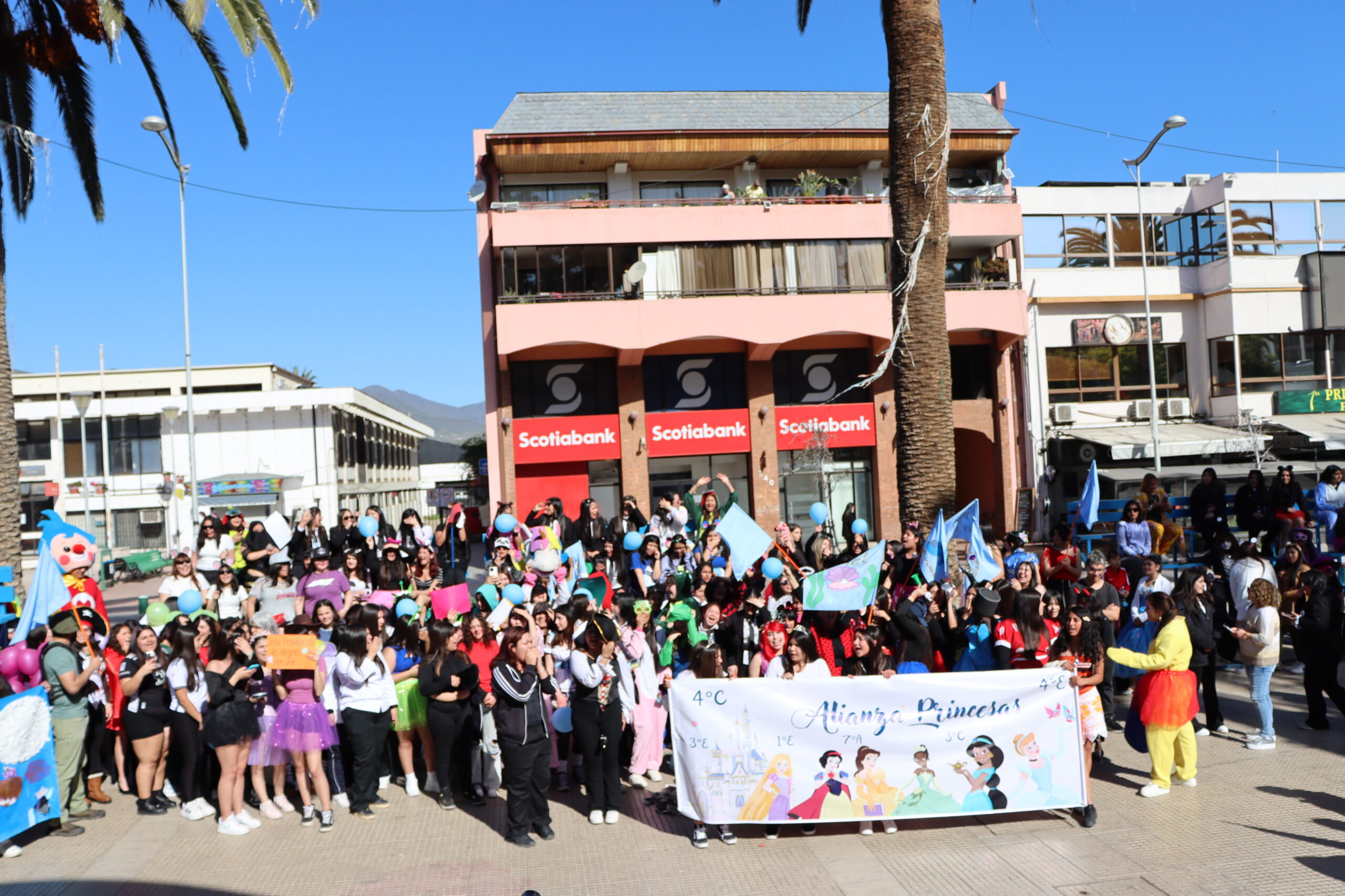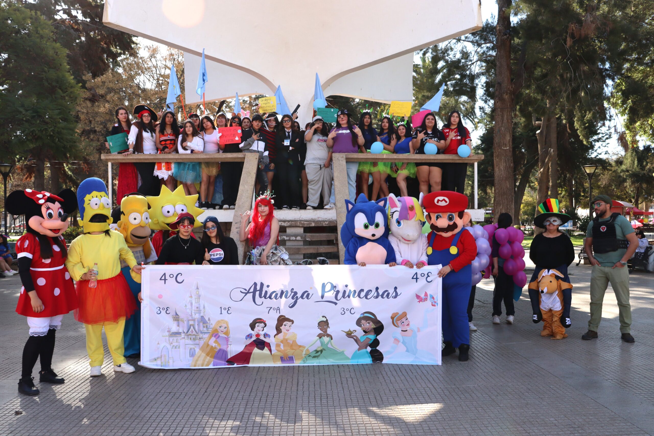 📣 Gritos, fotos y creatividad en la plaza Una vez en la Plaza de Armas, las alianzas se hicieron notar con sus gritos característicos, demostrando el espíritu competitivo y festivo que caracteriza estas celebraciones. Luego, se realizó la fotografía oficial del evento, capturando el momento para la posteridad.