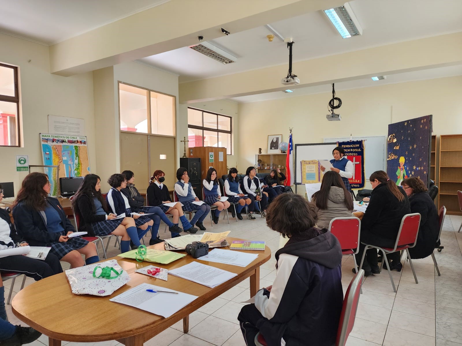Lectura en Voz Alta: Concurso individual donde una representante por curso leía un fragmento de 5 minutos de algún texto, donde fue evaluada por un jurado (3 integrantes) que a partir de distintos criterios se obtuvieron los mejores 3 puntajes. Siendo premiadas las siguientes estudiantes.