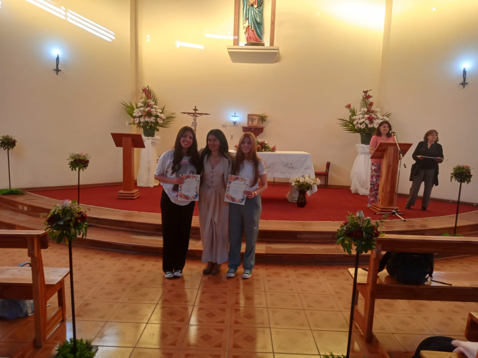 Finalmente, al retornar al colegio, las estudiantes se encontraron con la sorpresa de una emotiva ceremonia de reconocimiento, donde sus apoderados presenciaron la entrega de los diplomas de parte de cada profesor jefe a las estudiantes, destacando su perfil providencia e invitándolas a seguir siendo sal y luz para el mundo.