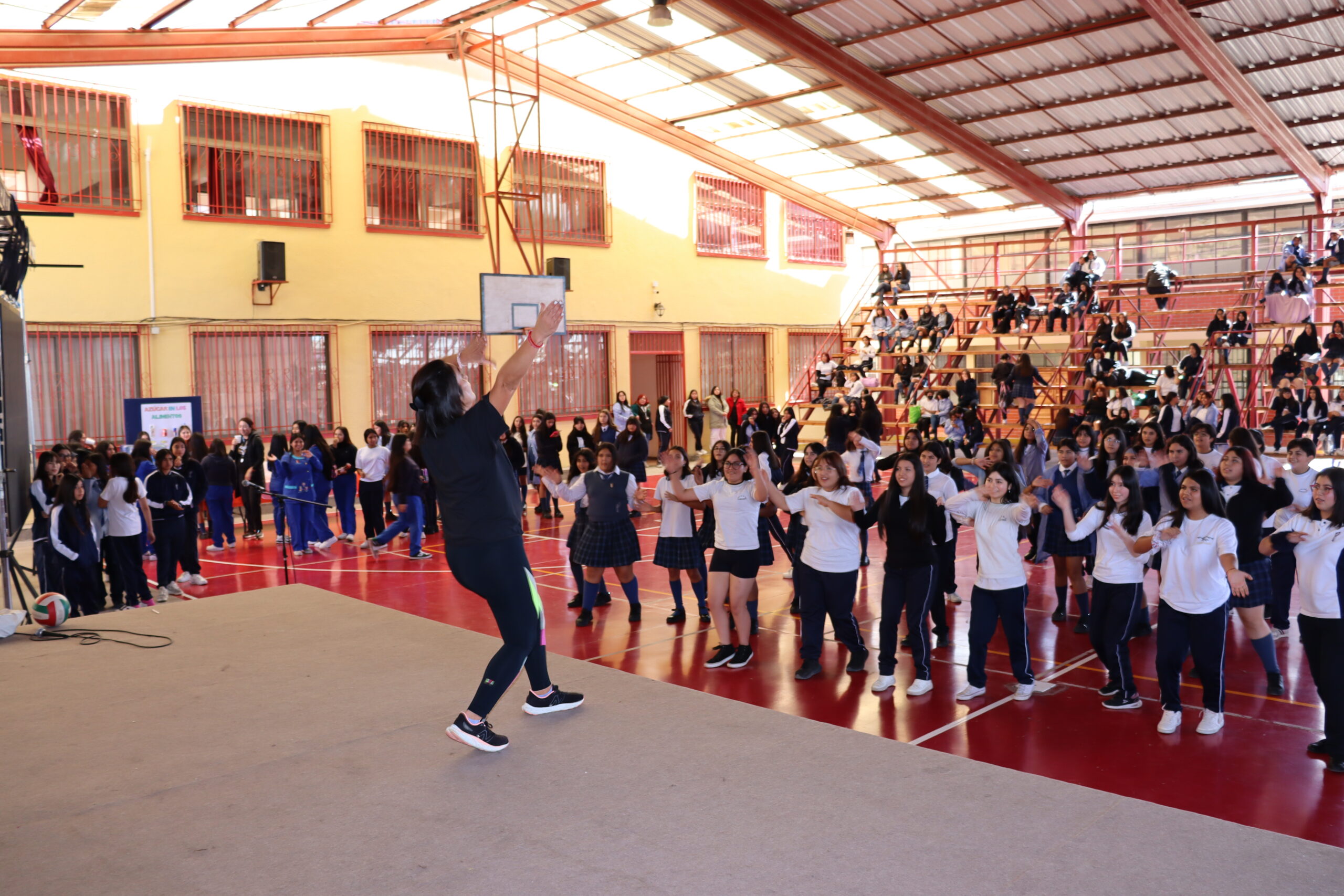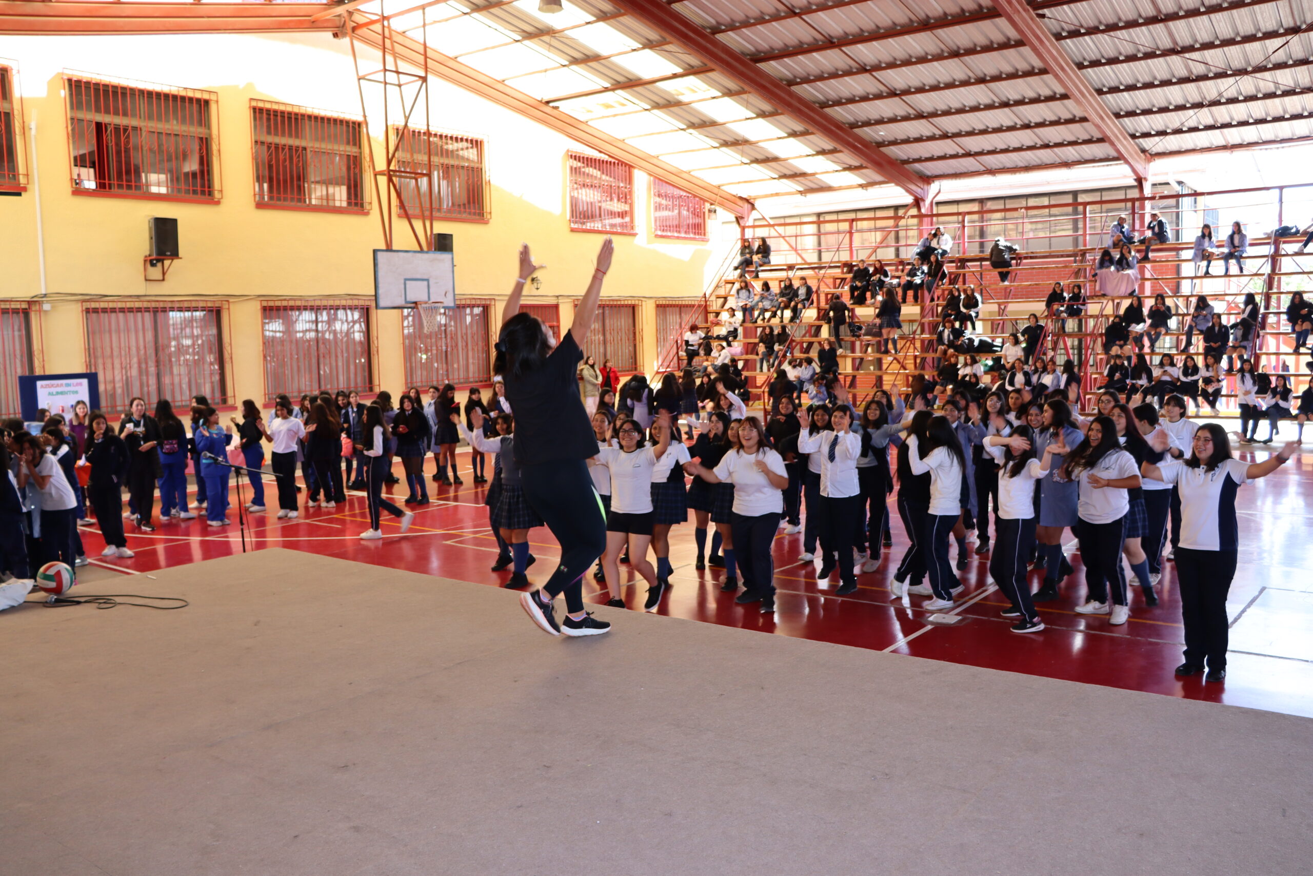 El día miércoles 24 de abril, participaron todos los estudiantes en forma activa de un “Recreo saludable”, actividad que fue realizada durante el periodo de recreo entre las 13:00 y 14:00 horas, desplegando en el techado de nuestro colegio todo el talento, sincronización y entusiasmo en el baile a cargo de la instructora de Zumba, Nina, además de contar con un stand de alimentación sostenible a cargo de las nutricionistas Mariana Ardiles y Catalina Canihuante en el que entregaron importante información nutricional a las estudiantes a través de trivias y degustaciones.