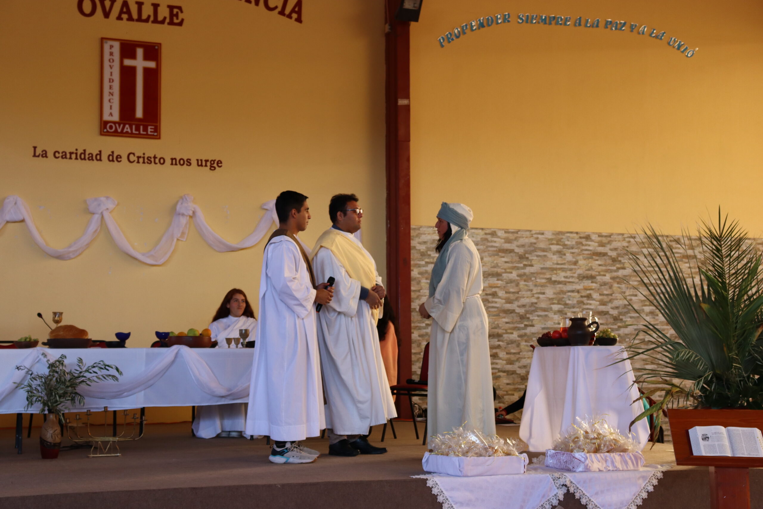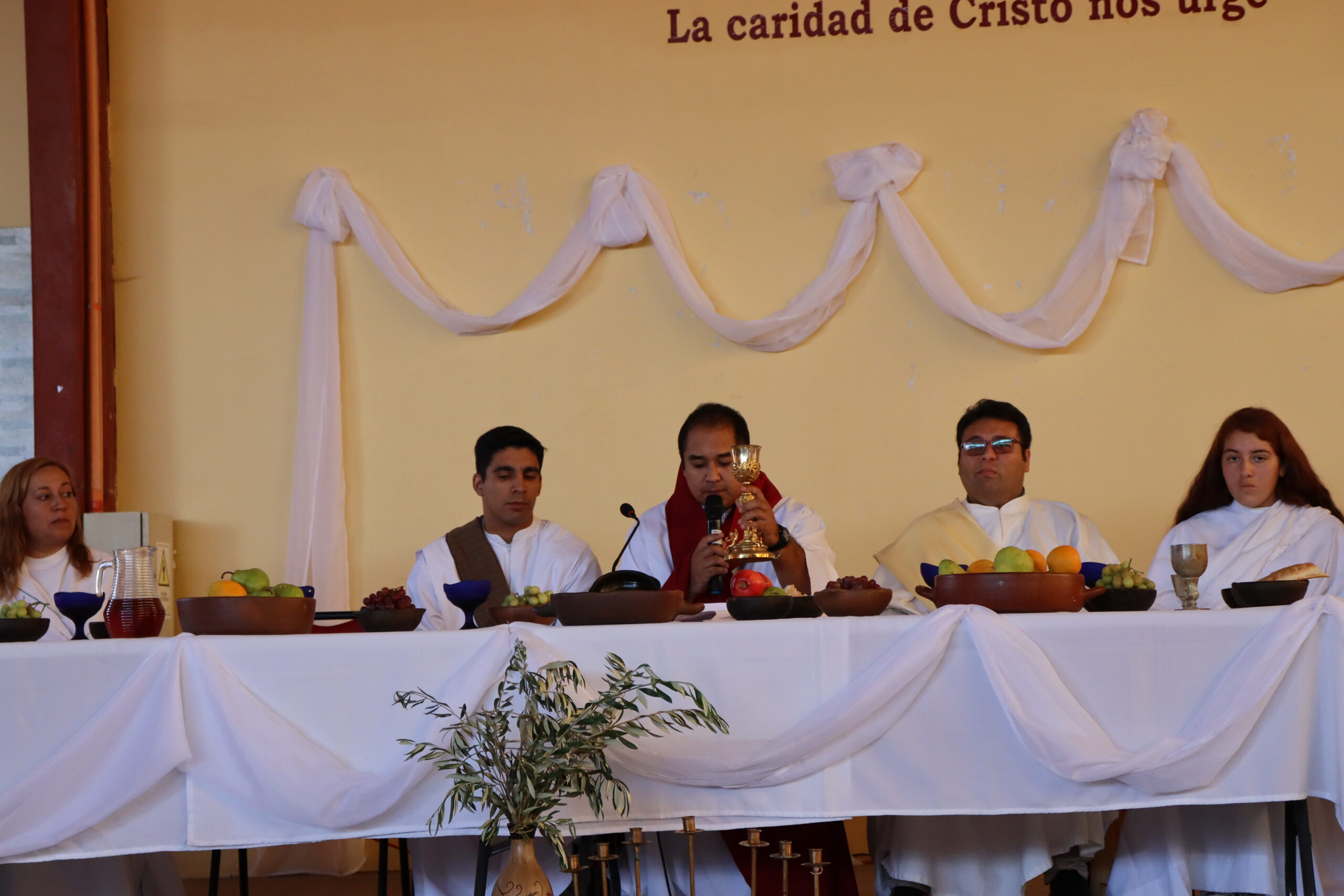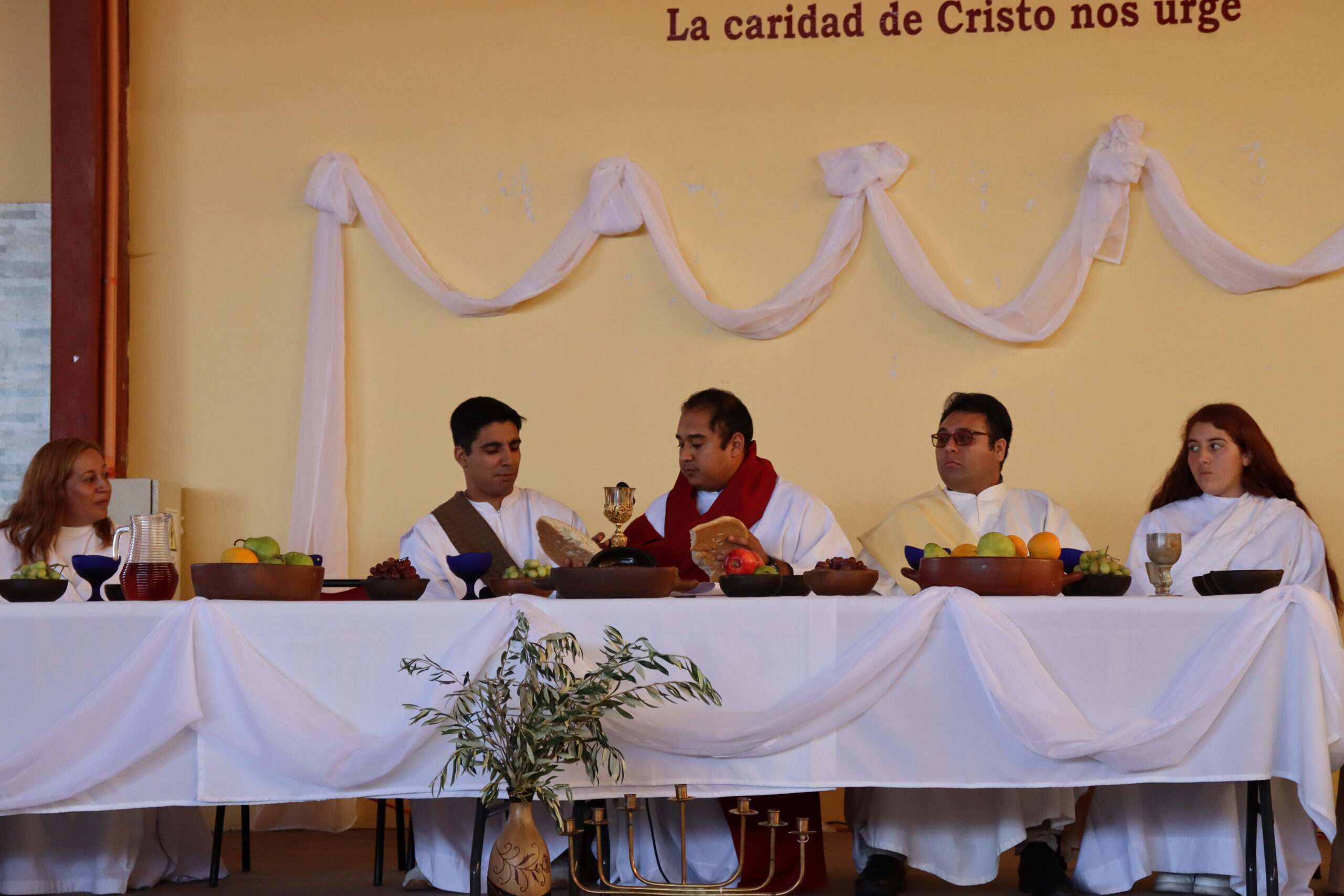 Con momentos de reflexión en relación a la Última Cena, los docentes junto a estudiantes celebraron la Institución de la Eucaristía. En la oportunidad, también se representaron acciones que Jesús realizó junto a sus discípulos, al compartir el pan y el vino, para darnos ejemplos de vida para cada uno de nosotros: hacer de nuestra vida un constante servicio y donación a los demás.
