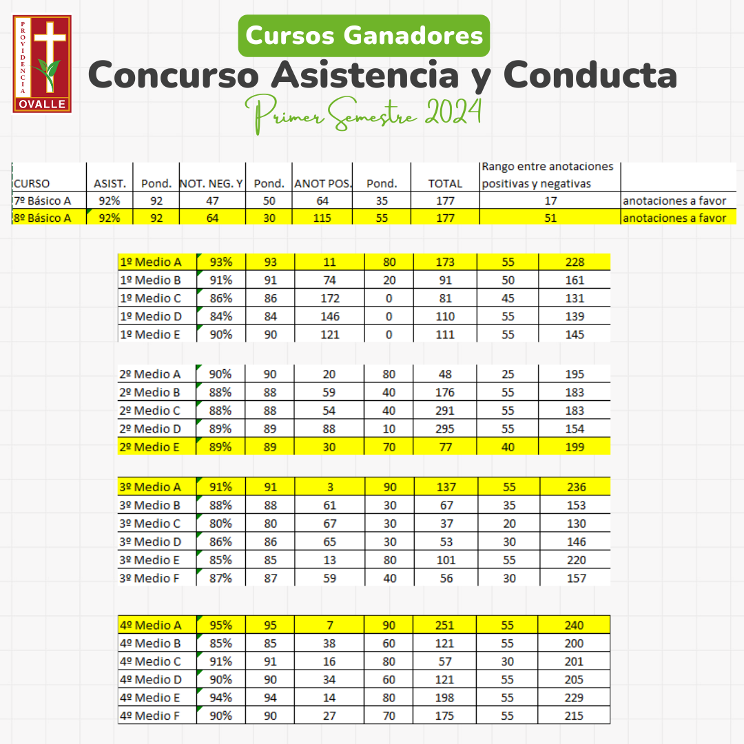 Por esta razón felicitamos a los cursos ganadores de este primer semestre y les invitamos a seguir participando y asistiendo de manera positiva y responsable a este segundo semestre que trae consigo nuevas metas y premios a los cursos ganadores.