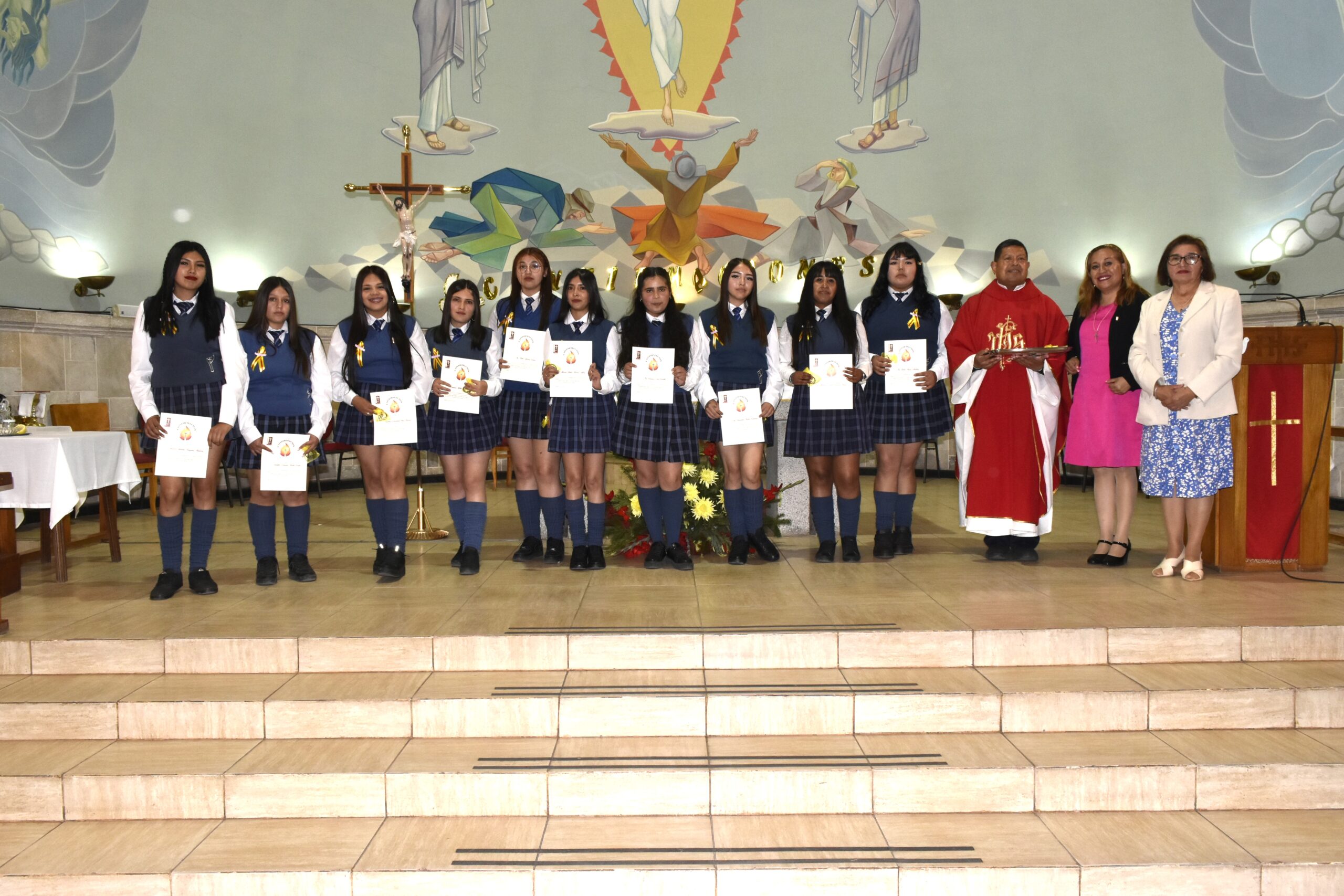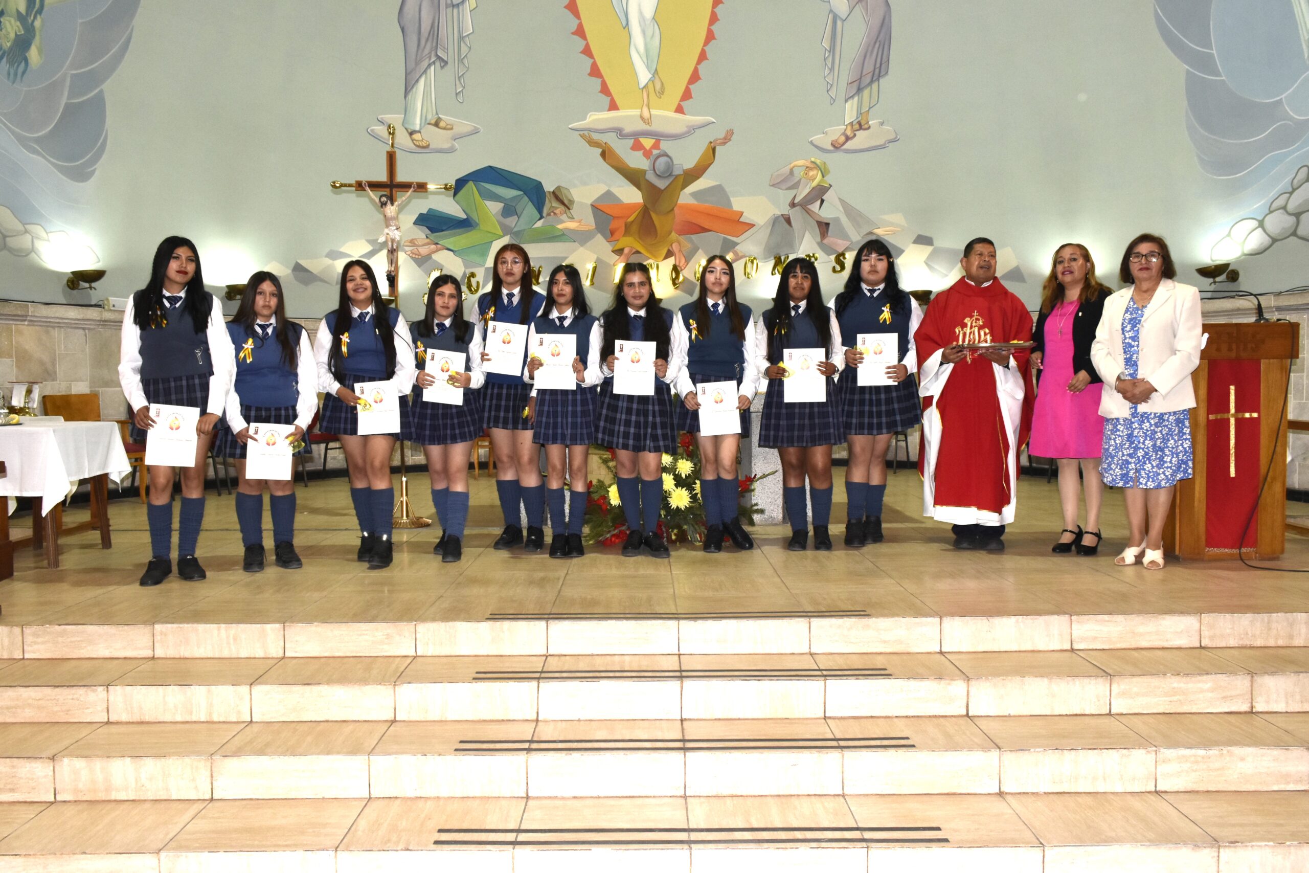 El viernes 8 de noviembre celebramos uno de los hitos más relevantes para nuestras 16 jóvenes y una funcionaria, quienes acompañadas de sus familias y representantes del Colegio, vivieron el sacramento de la Confirmación que fue presidido por el  Padre Pedro de la Paz.