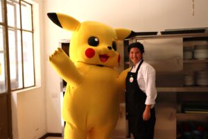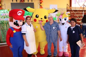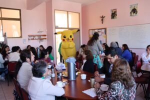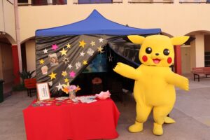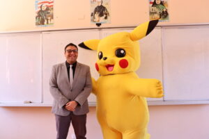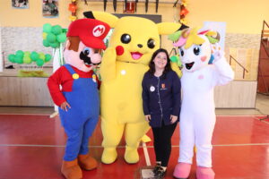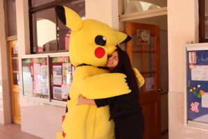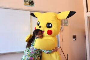 Desde muy temprano, el equipo visitó la sala de profesores acompañado del tierno corpóreo de Pikachu, quien regaló abrazos y sonrisas a nuestros docentes, invitándolos a ser parte de esta experiencia. Durante la mañana, los funcionarios pudieron fotografiarse con Pikachu y compartir momentos de cercanía y buen ánimo.