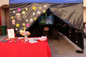 Paralelamente, en el patio San José, la Academia Audiovisual dispuso un cine escolar donde se proyectó el corto “Fragmentos de mí”, realizado por nuestras propias estudiantes. La experiencia se vivió al estilo de una verdadera función, con palomitas de maíz que hicieron aún más especial el momento.