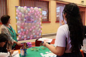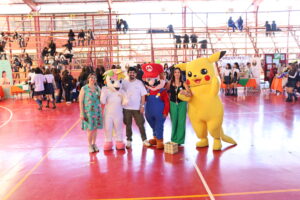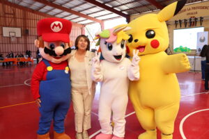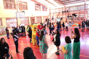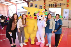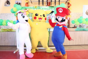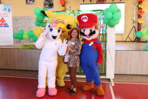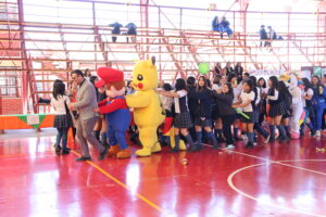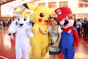En el recreo de las 13:50, la cancha techada se transformó en un espacio lúdico y participativo, con diversos stands preparados con creatividad, donde se ofrecieron juegos y dinámicas que invitaron a la comunidad educativa a compartir y disfrutar juntos. Además, la jornada se llenó de magia y diversión con la presencia de tres corpóreos: Pikachu, Mario Bros y un alegre unicornio, quienes animaron a estudiantes y funcionarios con abrazos, bailes y mucha energía.