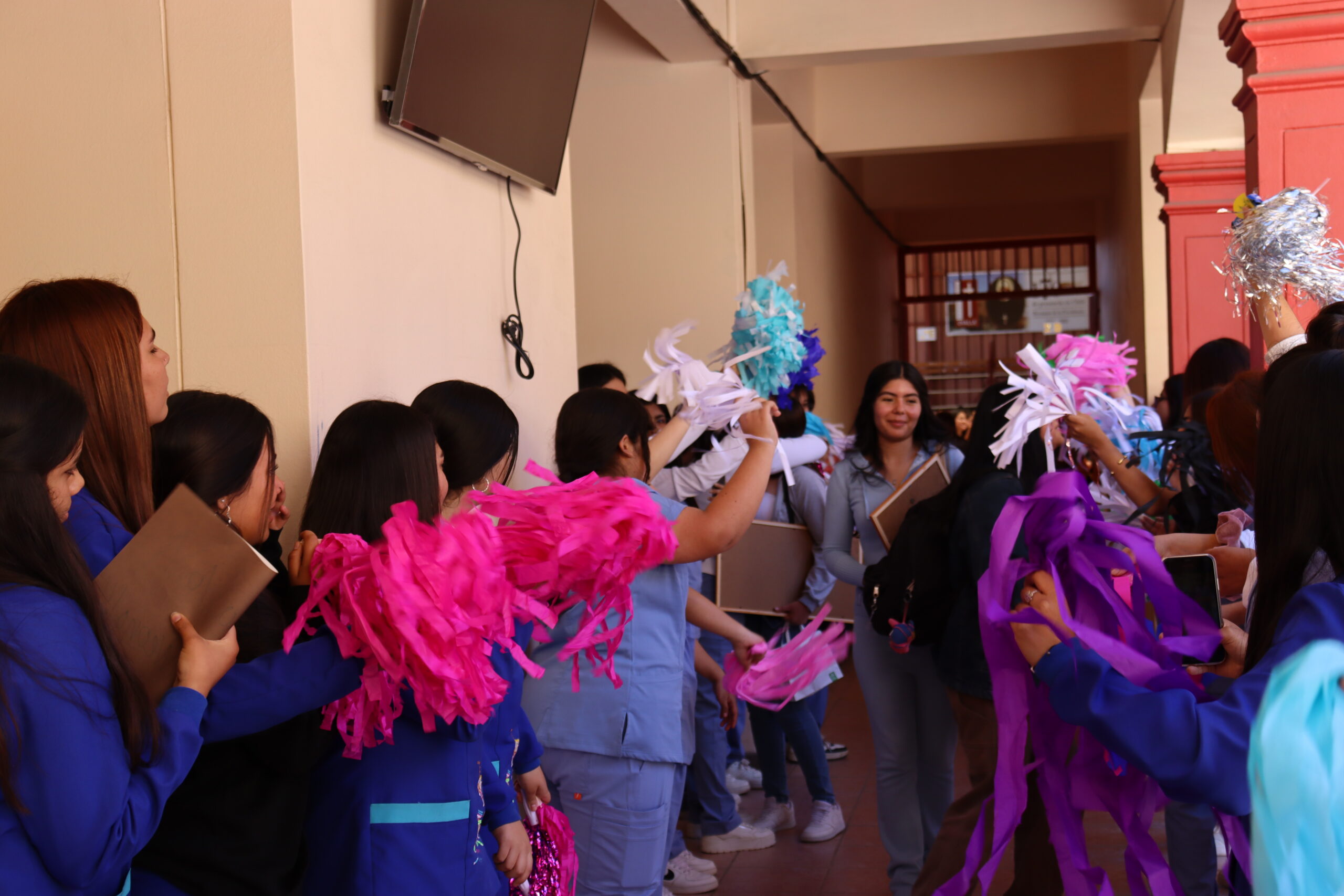 Lágrimas de júbilo fueron los ingredientes principales de esta jornada, donde las estudiantes de los terceros medio despidieron a sus compañeras por medio de un túnel humano en el que entregaron aplausos, palabras de aliento y cariño, abrazos, ovaciones y tazones personalizados por especialidad. Estos últimos, gentileza del Centro de Padres y Apoderados, que quiso homenajear a nuestras ya egresadas con este bonito gesto.