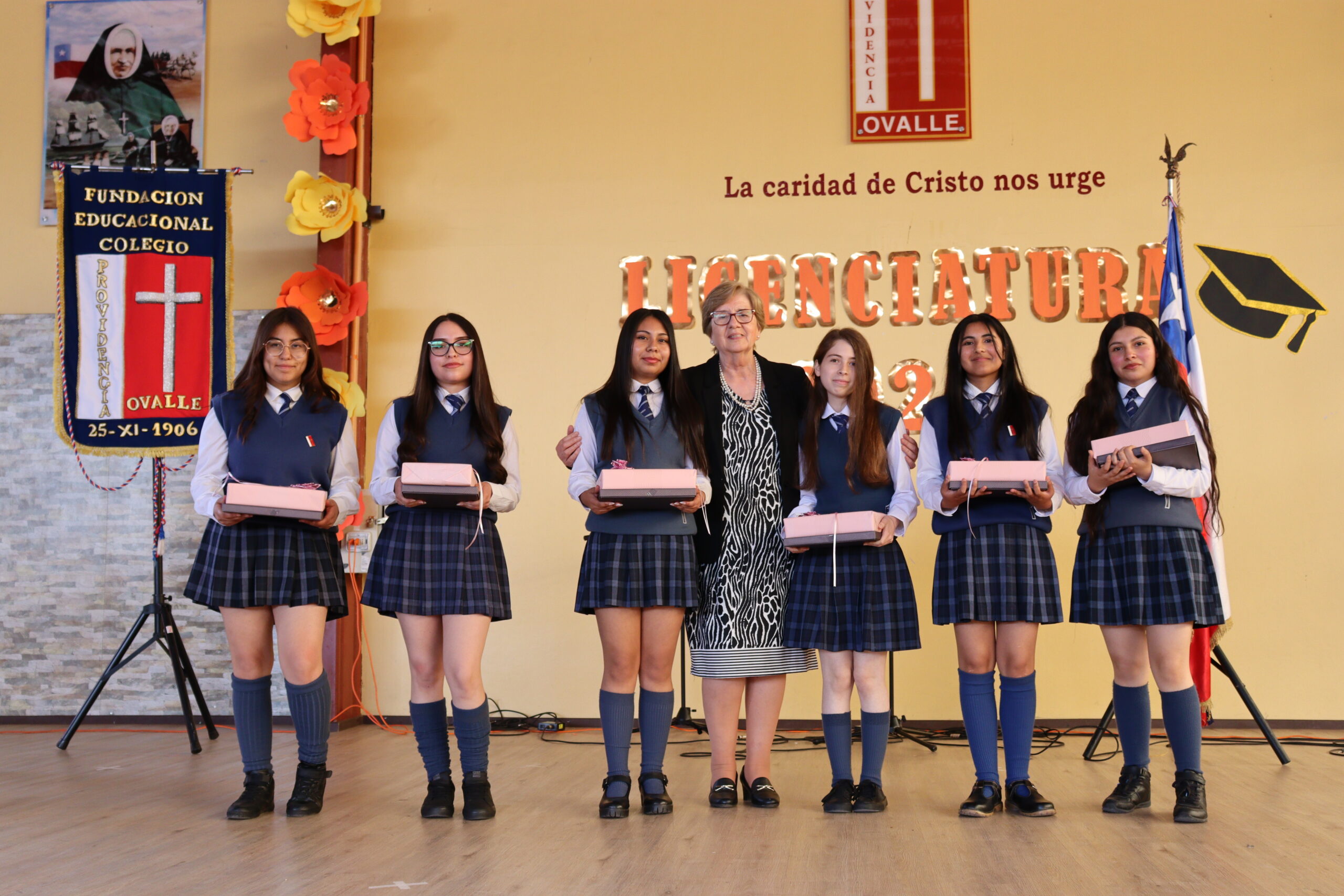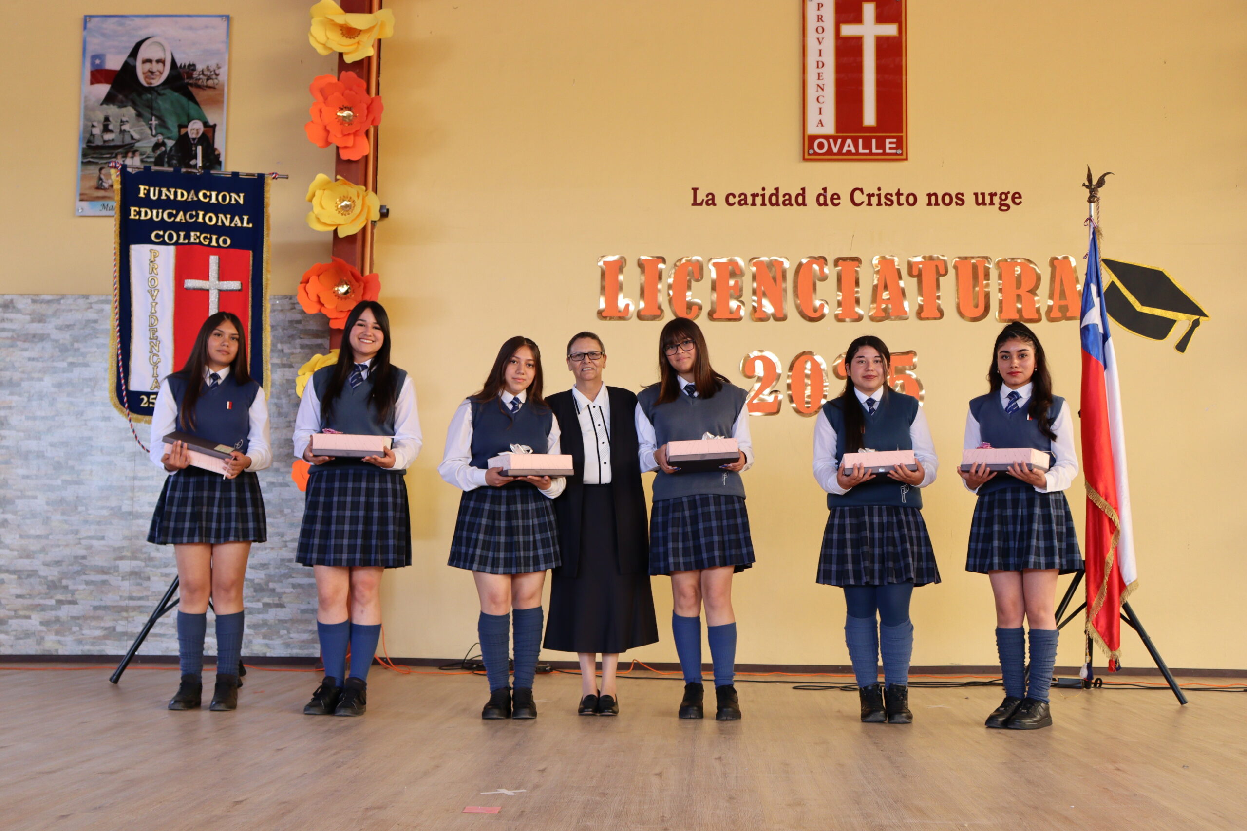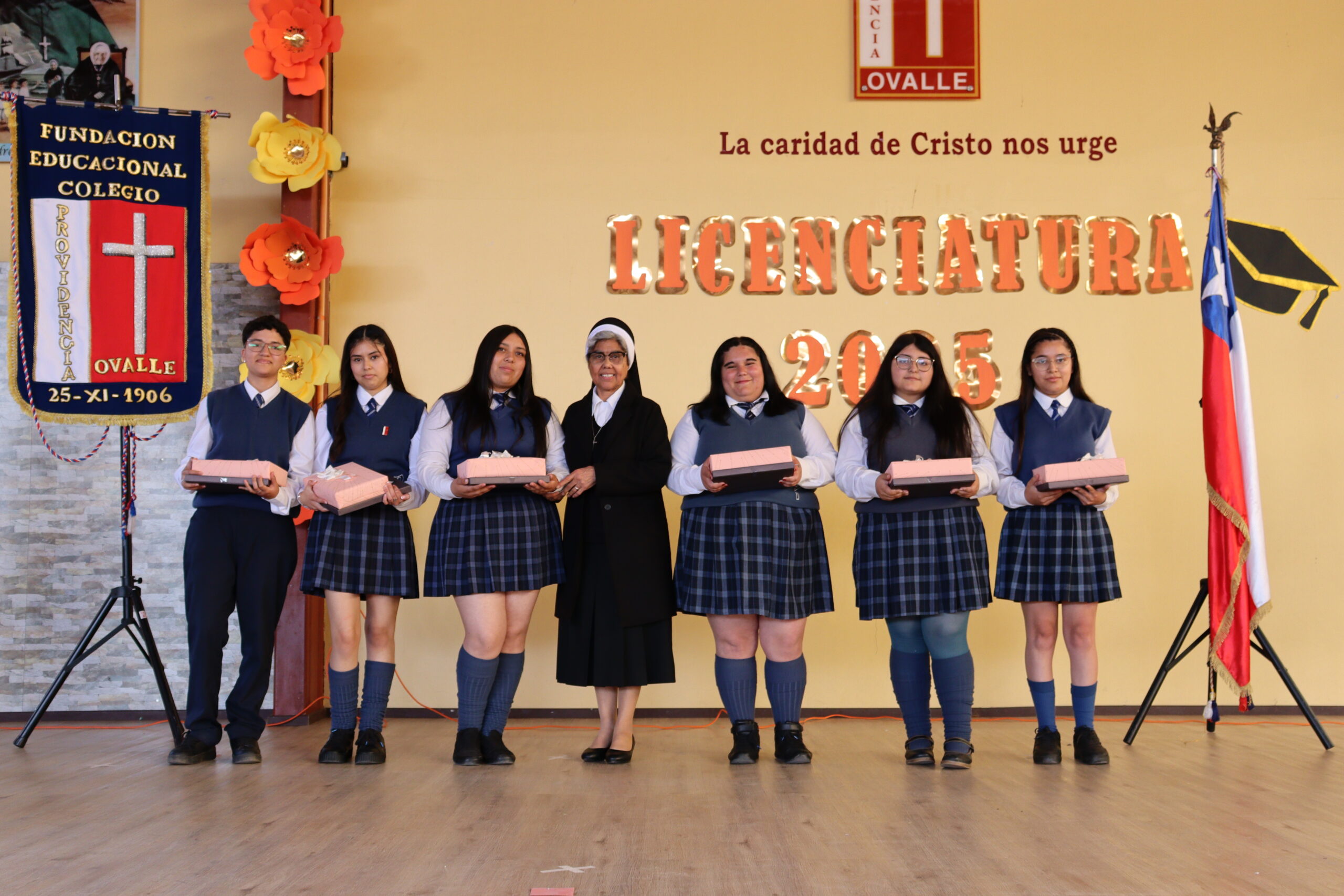 El Centro General de Padres, en agradecimiento por el acompañamiento y dedicación de los profesores jefes, entregó un obsequio como muestra de cariño. Asimismo, la Congregación de las Hermanas de la Providencia ofreció a cada estudiante una pulsera de plata y una piocha con el insignia del colegio, símbolo de pertenencia y recuerdo imborrable.