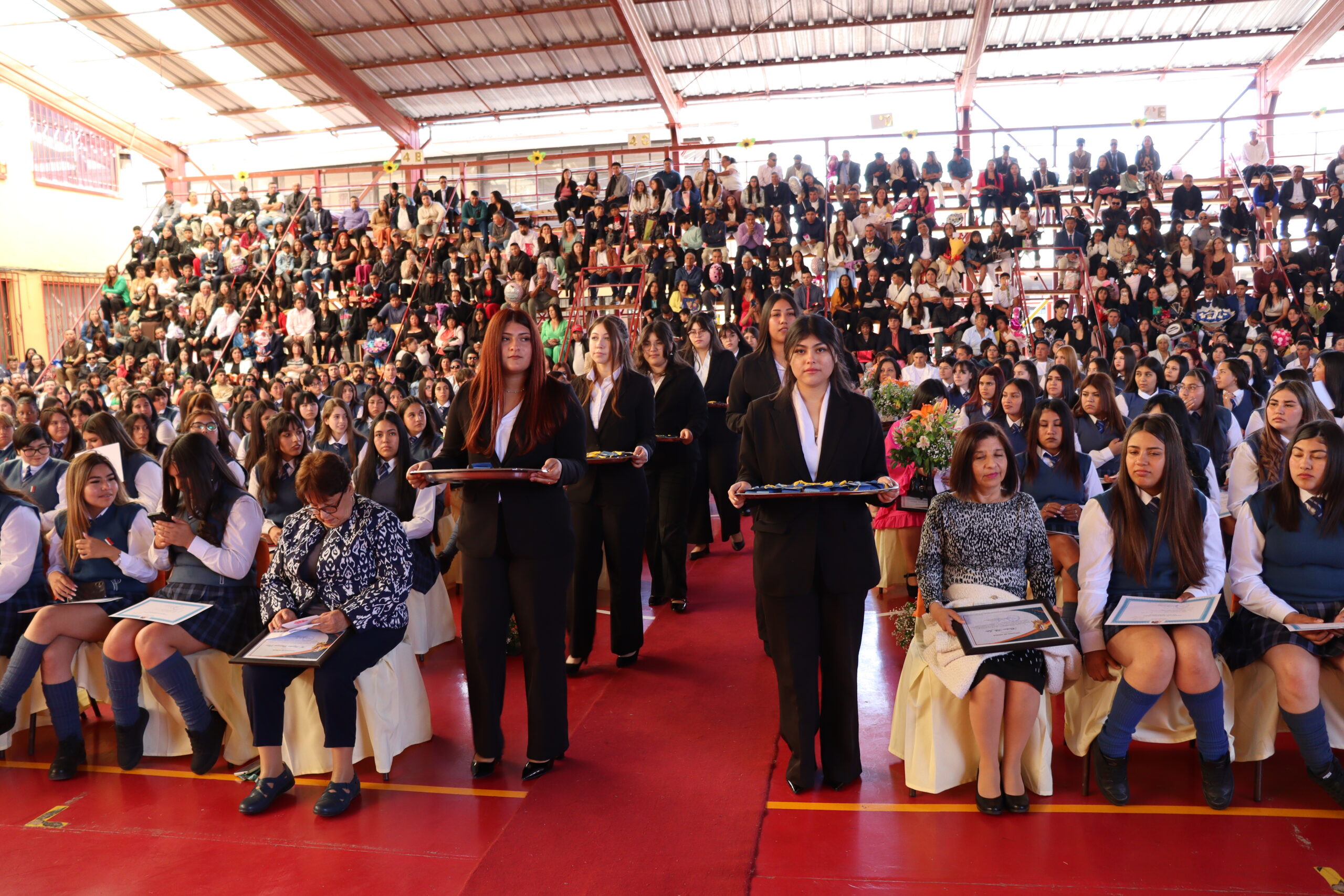 Un especial agradecimiento a las estudiantes de tercer año de Administración, quienes estuvieron a cargo de la recepción y registro de invitados, además de colaborar en todo lo relacionado con ceremonial y protocolo, incluyendo la entrega de premios. Su compromiso y dedicación hicieron posible que cada detalle de la ceremonia se desarrollara con orden y solemnidad.