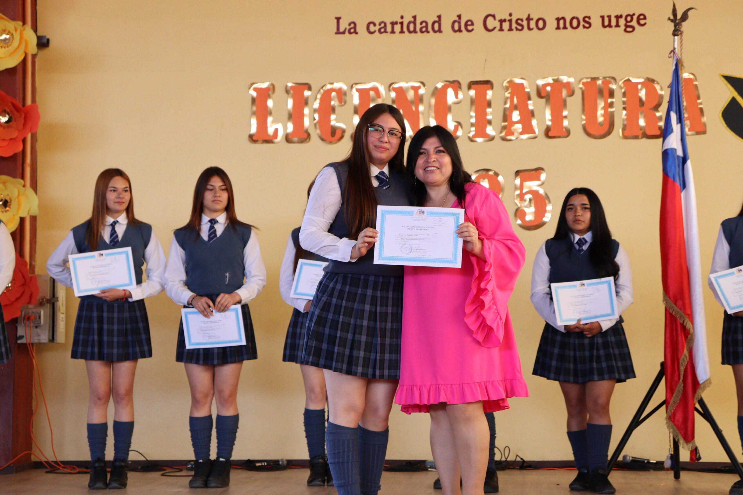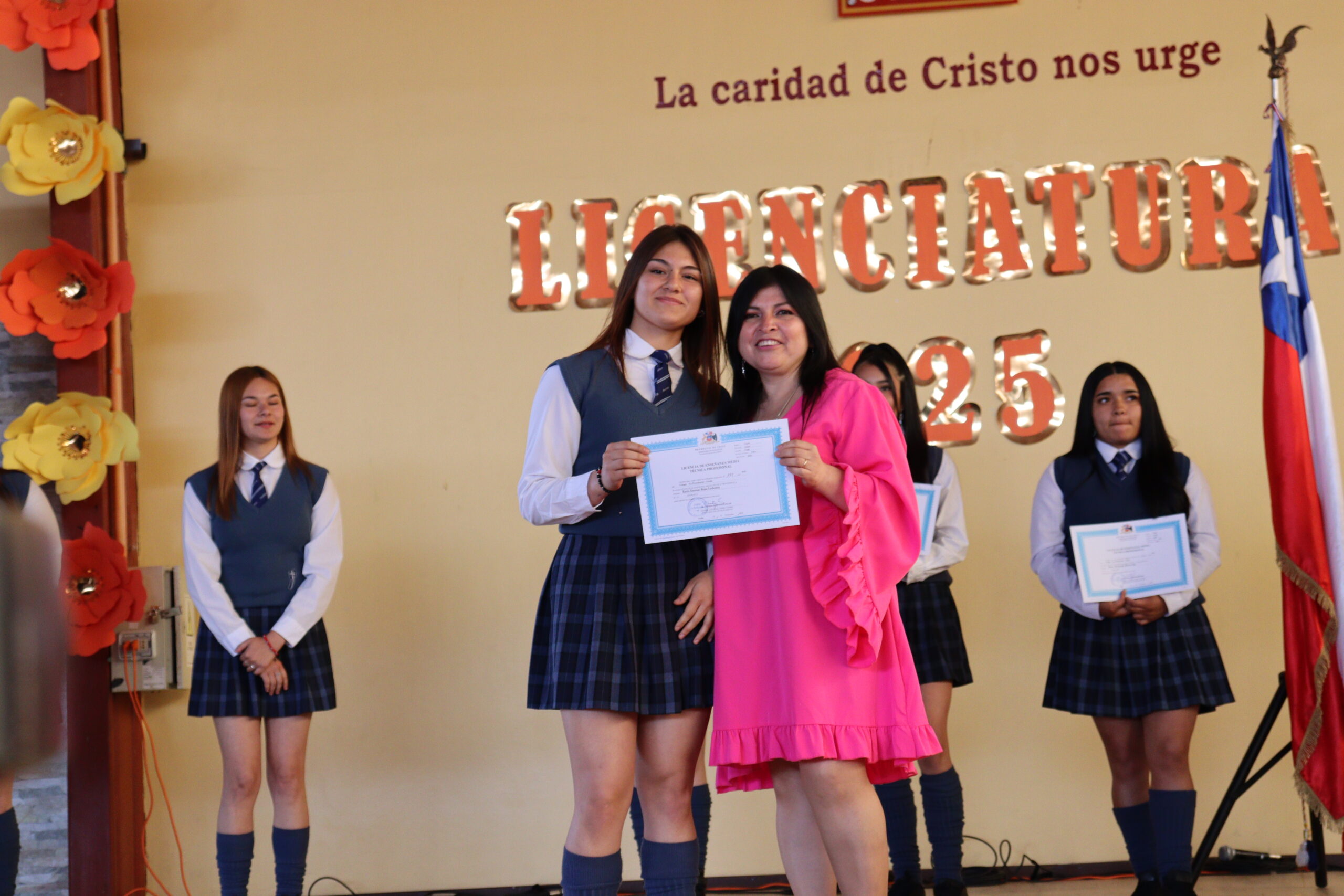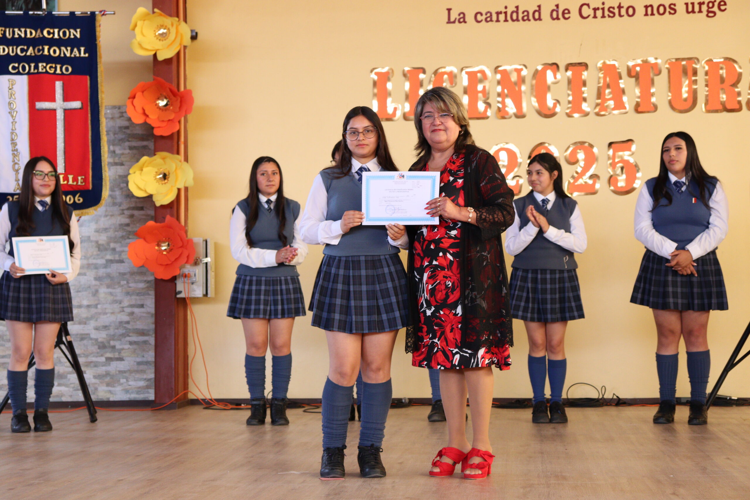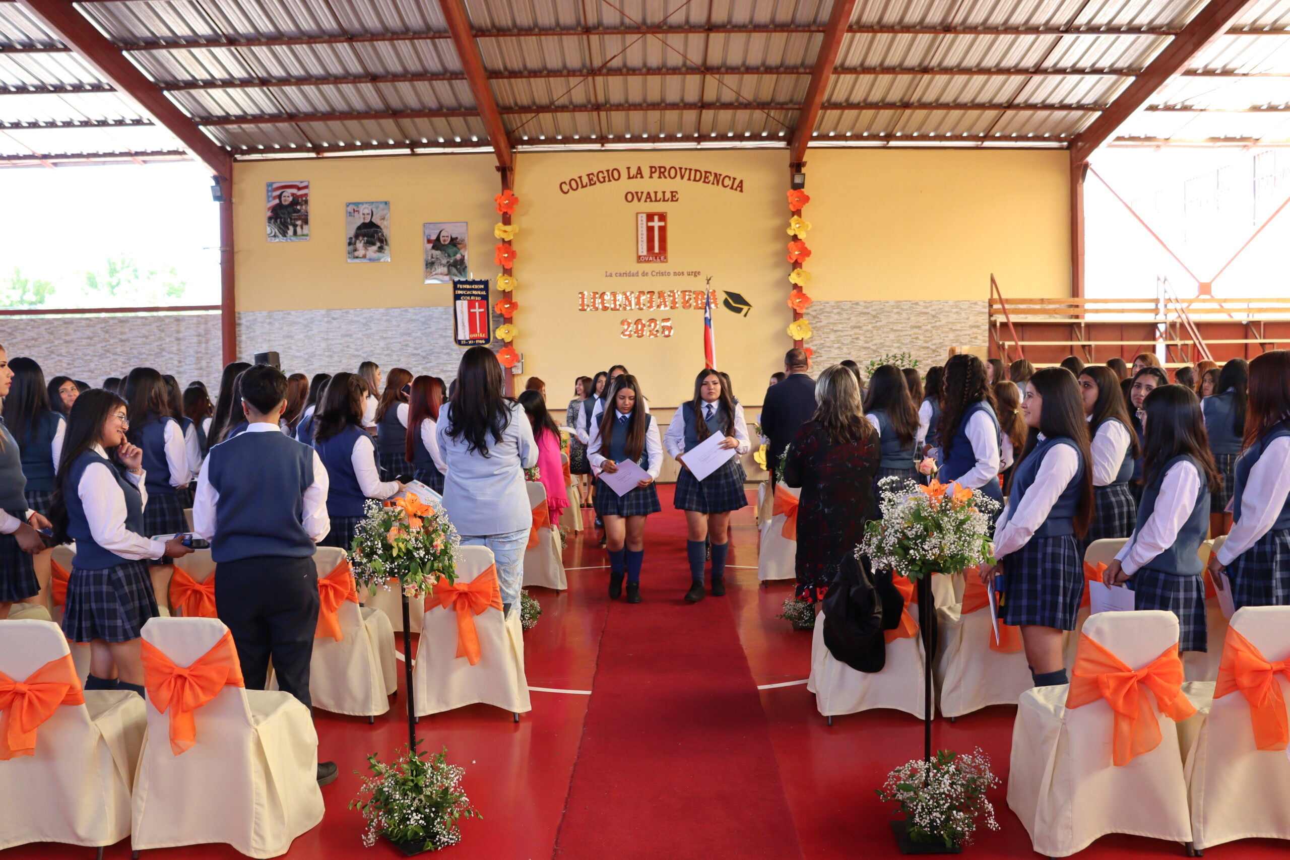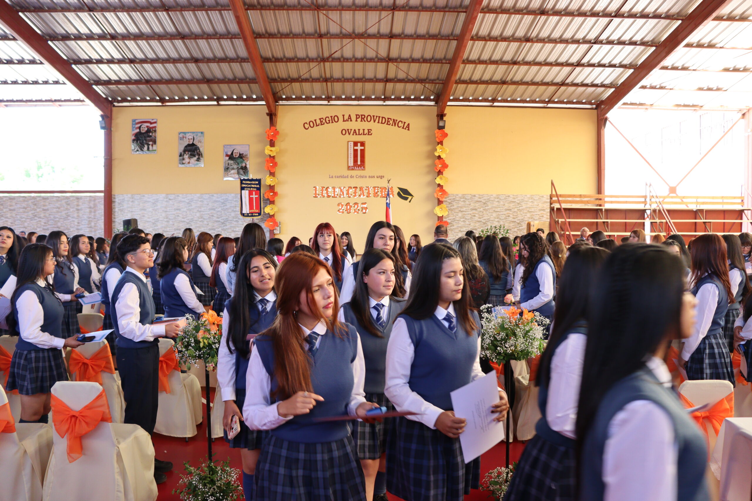 Desde muy temprano, estudiantes y familias llegaron a nuestro establecimiento para compartir la culminación de una etapa inolvidable: el término de la enseñanza media de la Generación 2025. La ceremonia reunió a docentes, asistentes de la educación, miembros del directorio de la Fundación Educacional y a las Hermanas de la Providencia, Hna. María Eugenia Arancibia y Hna. Elvira Letelier, quienes acompañaron este momento especial para nuestras 218 estudiantes.