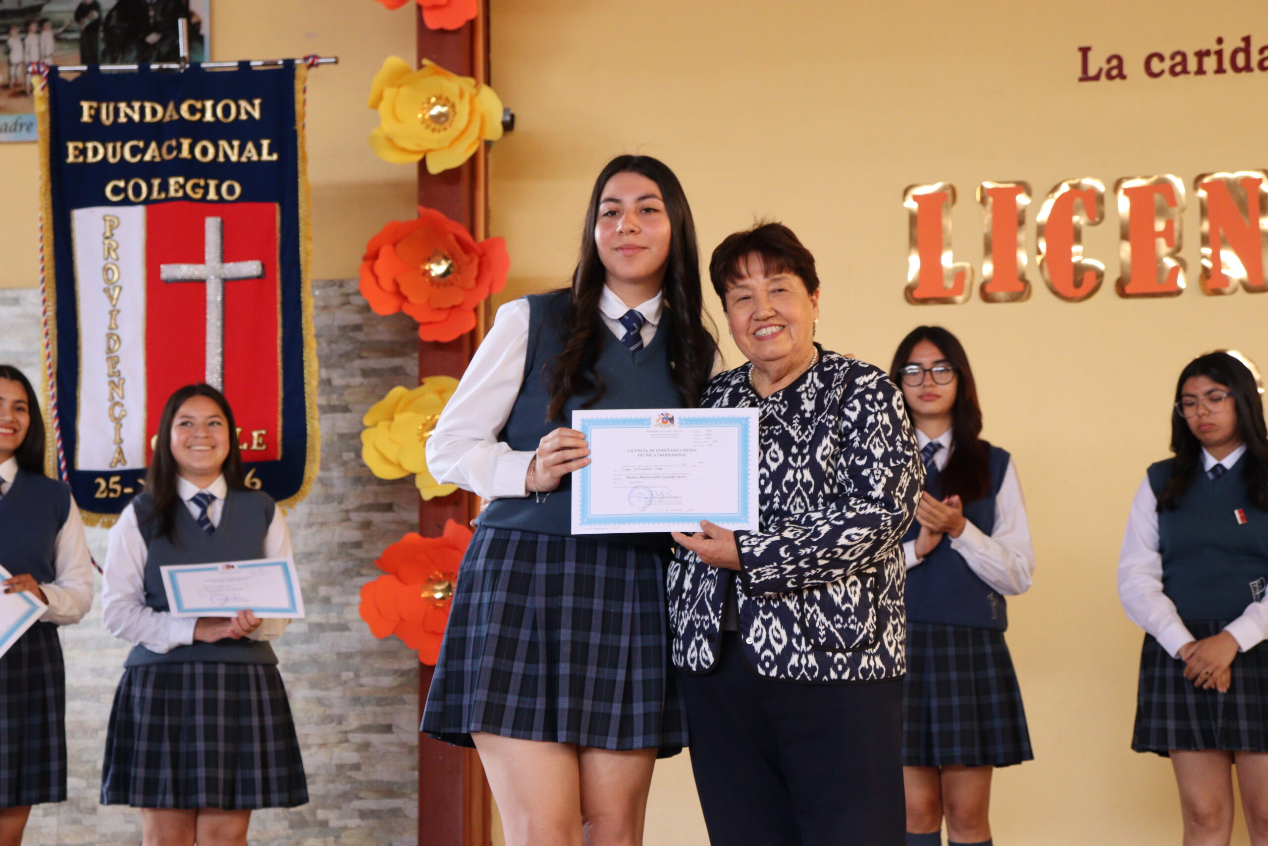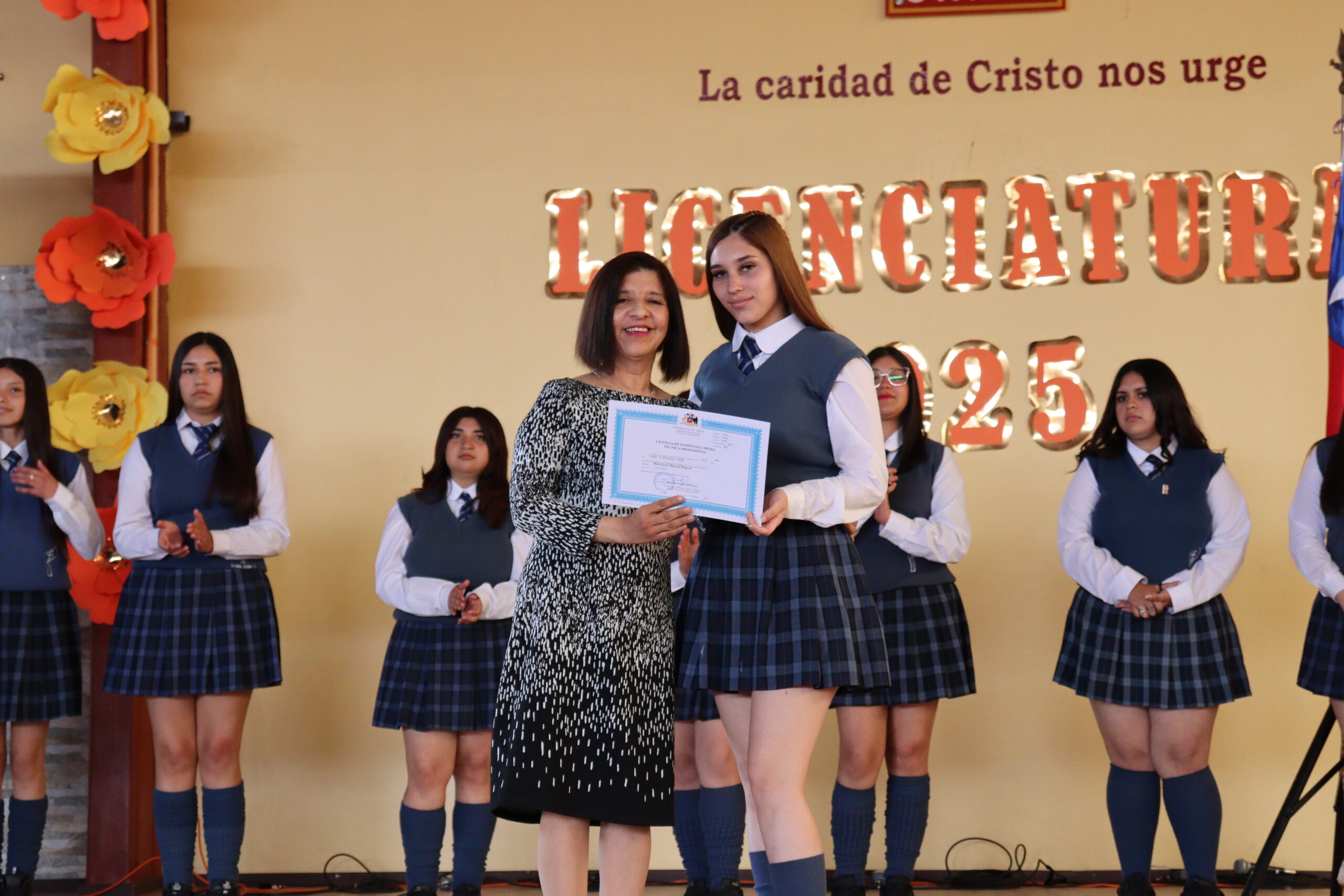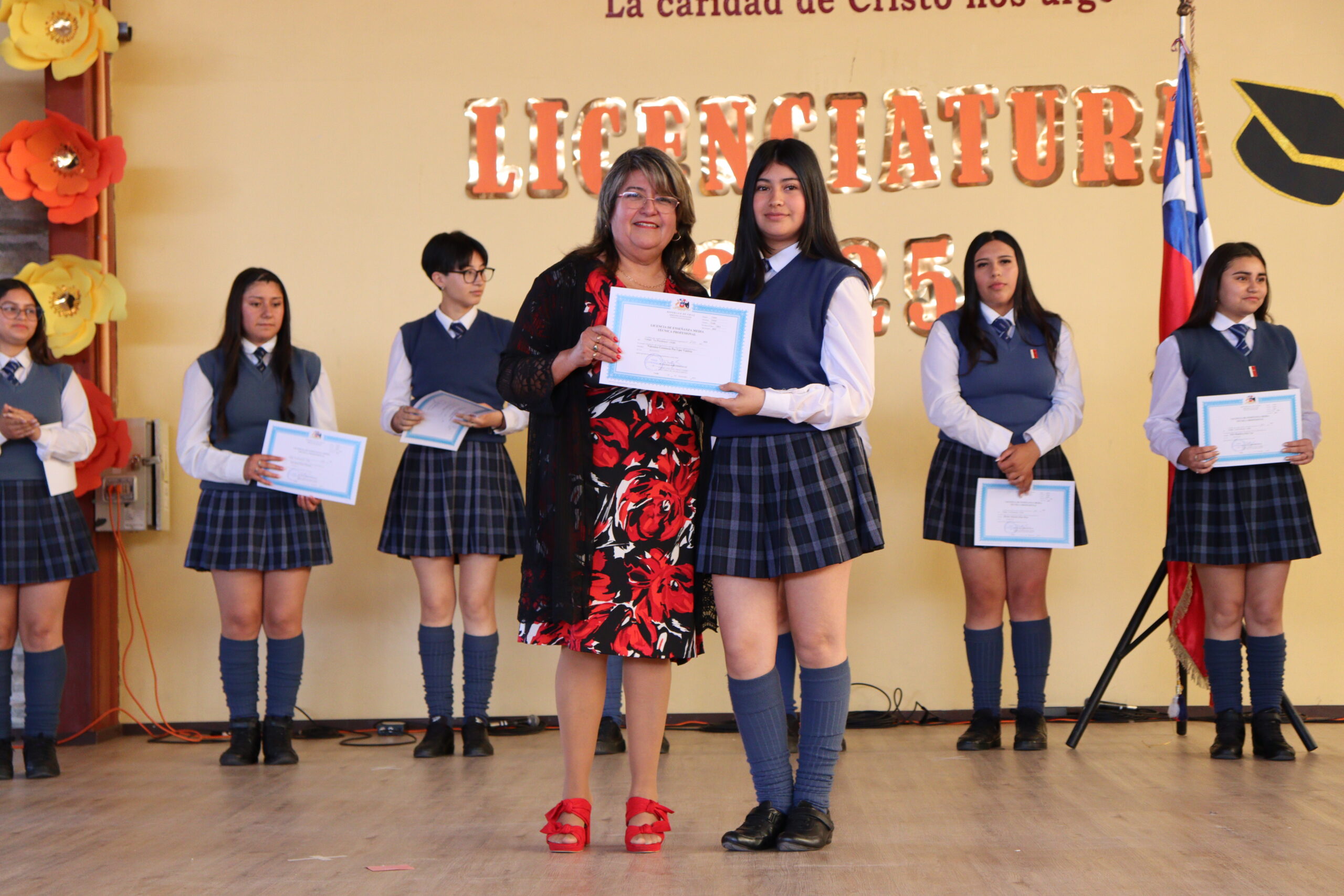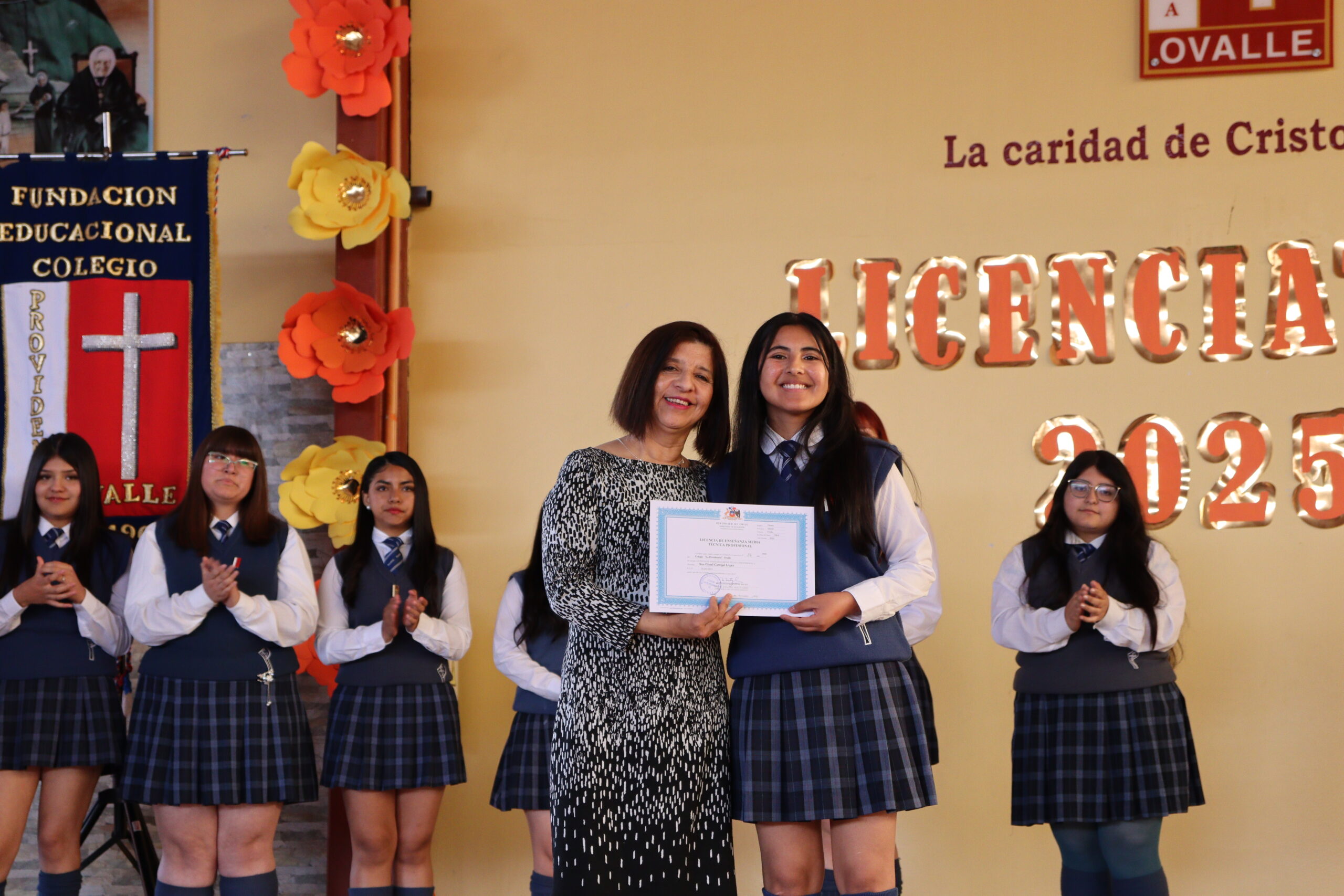 Desde muy temprano, estudiantes y familias llegaron a nuestro establecimiento para compartir la culminación de una etapa inolvidable: el término de la enseñanza media de la Generación 2025. La ceremonia reunió a docentes, asistentes de la educación, miembros del directorio de la Fundación Educacional y a las Hermanas de la Providencia, Hna. María Eugenia Arancibia y Hna. Elvira Letelier, quienes acompañaron este momento especial para nuestras 218 estudiantes.