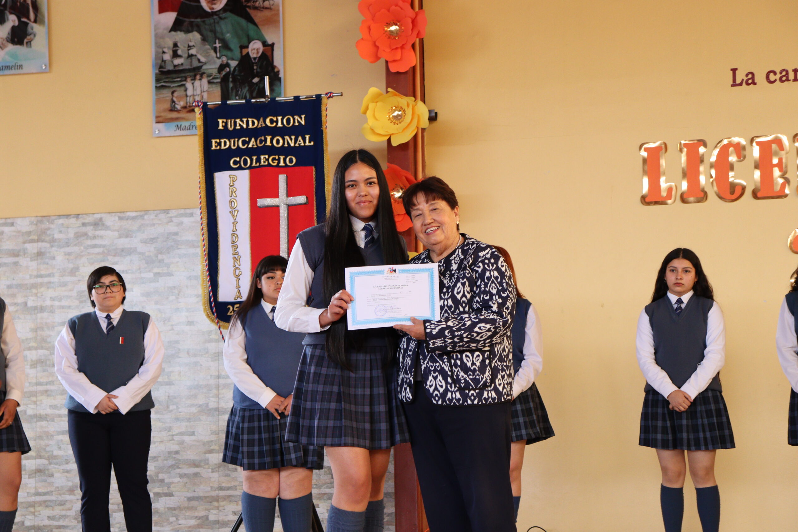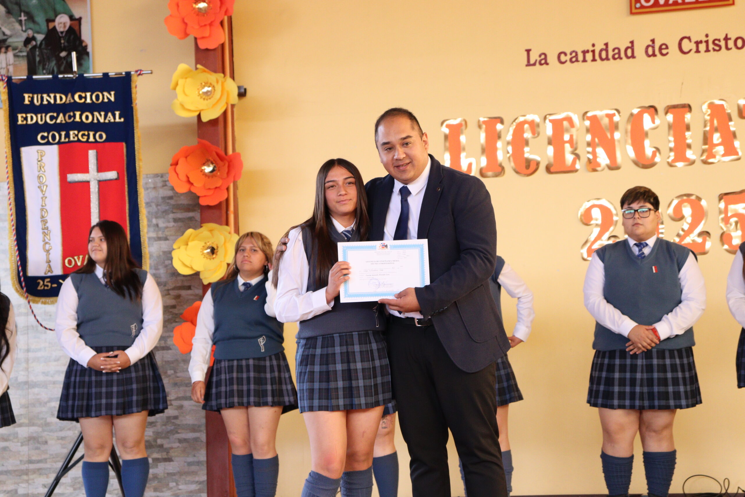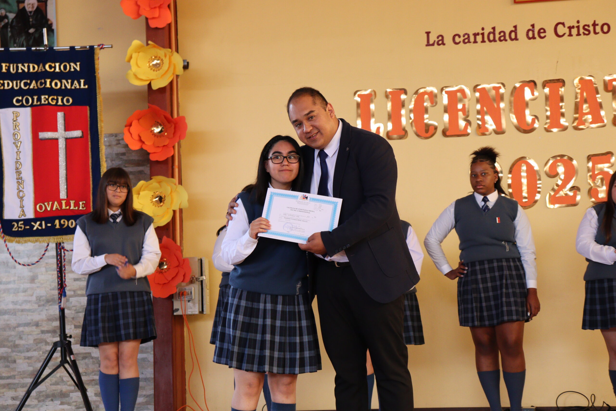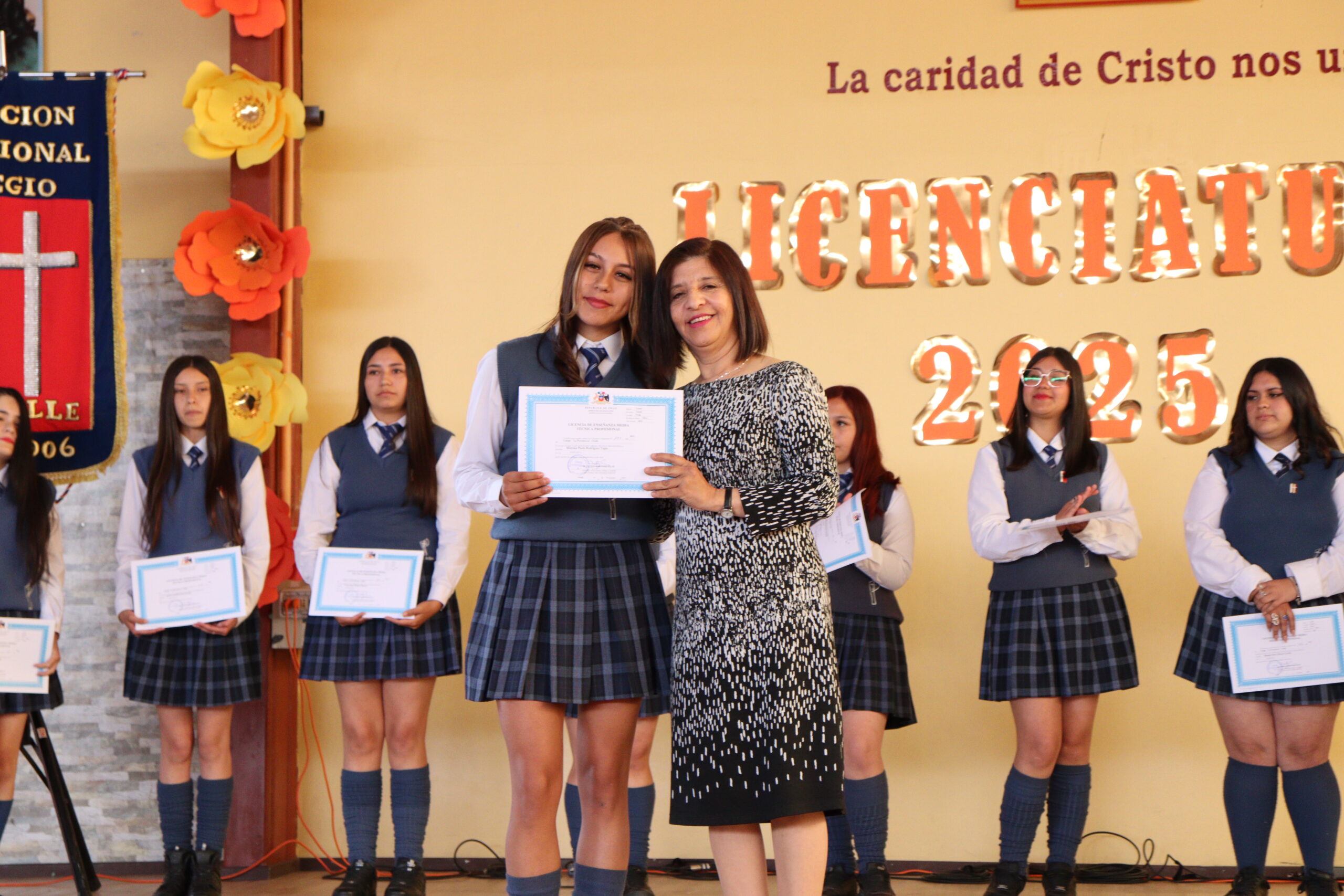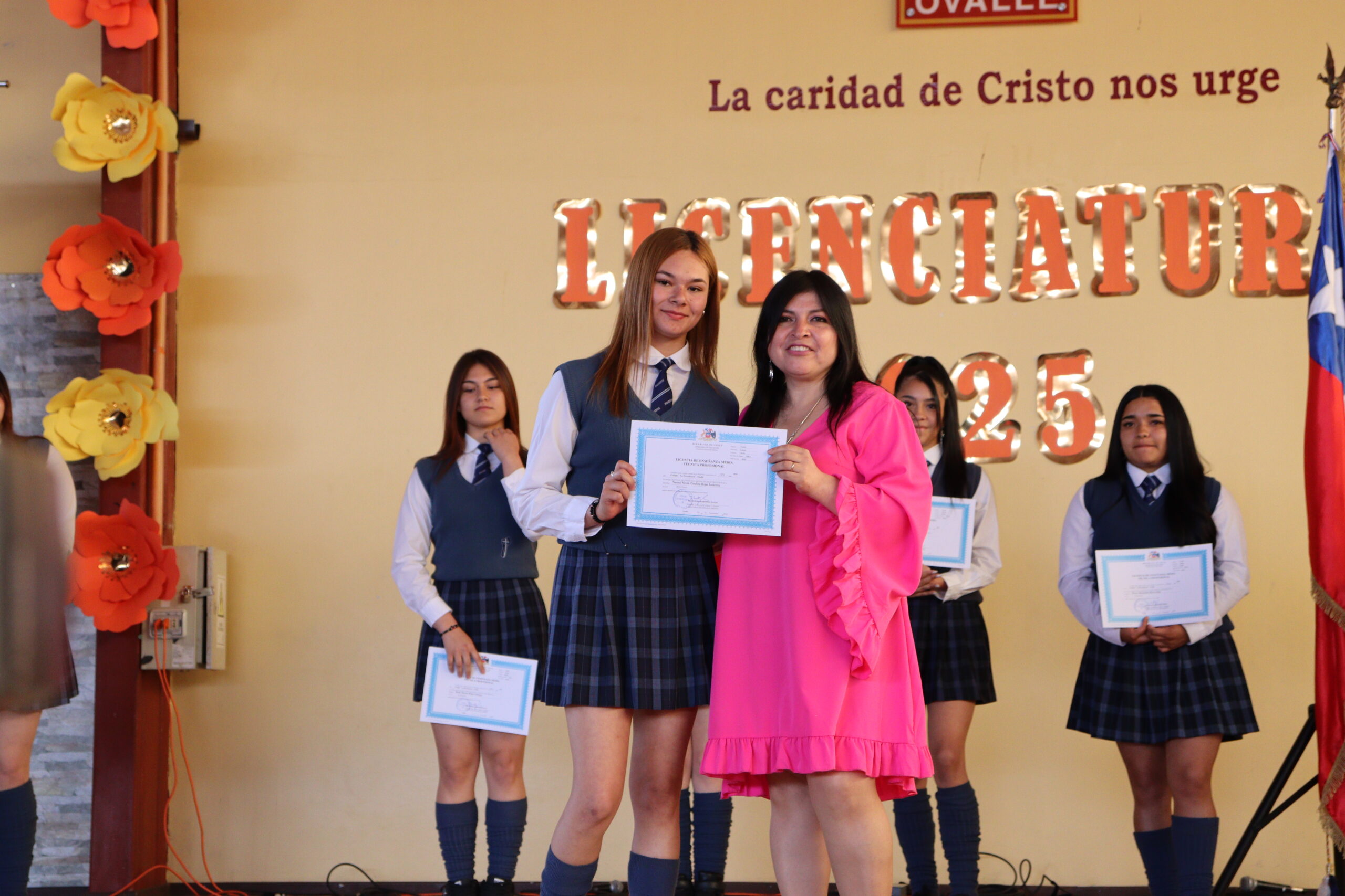 Desde muy temprano, estudiantes y familias llegaron a nuestro establecimiento para compartir la culminación de una etapa inolvidable: el término de la enseñanza media de la Generación 2025. La ceremonia reunió a docentes, asistentes de la educación, miembros del directorio de la Fundación Educacional y a las Hermanas de la Providencia, Hna. María Eugenia Arancibia y Hna. Elvira Letelier, quienes acompañaron este momento especial para nuestras 218 estudiantes.