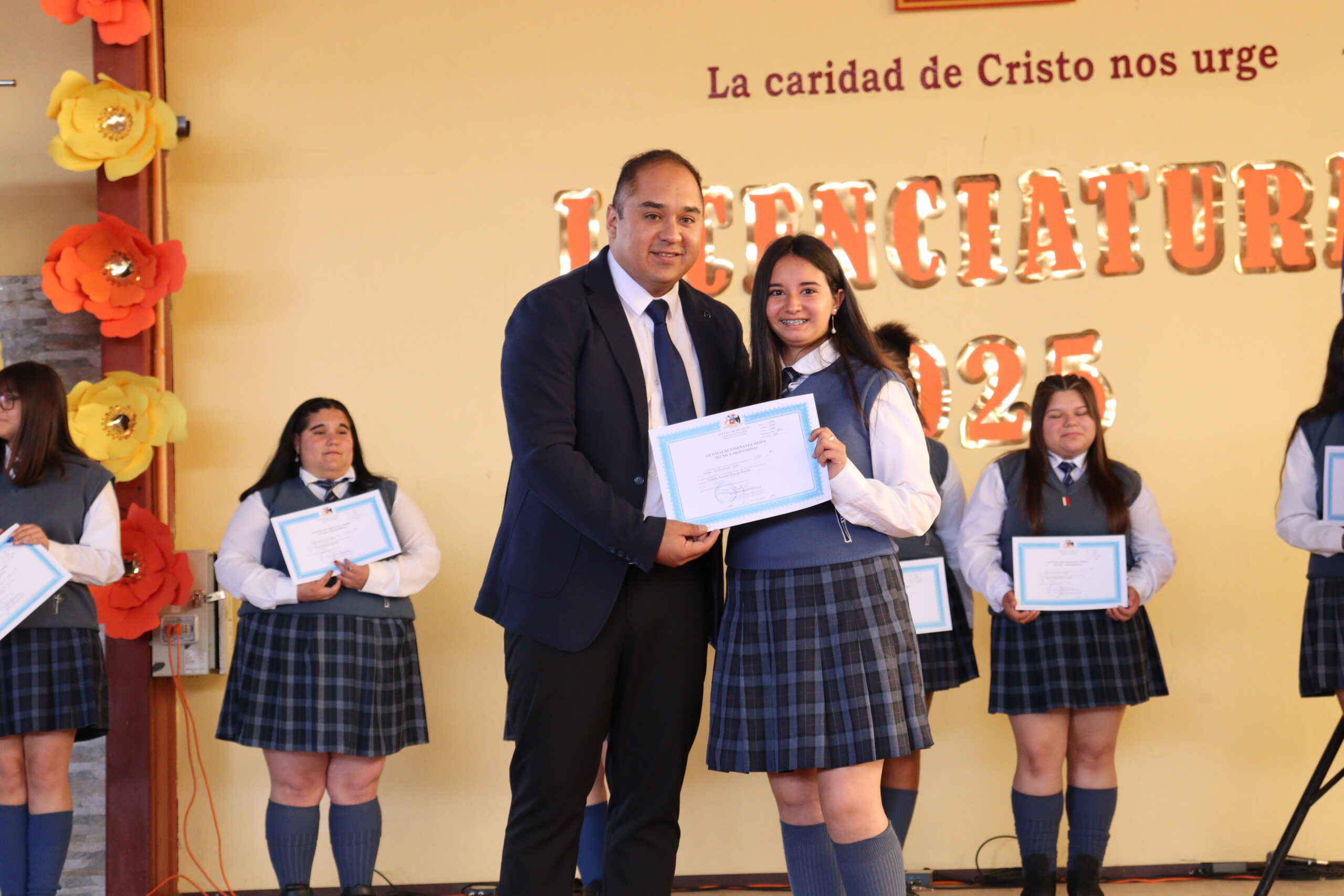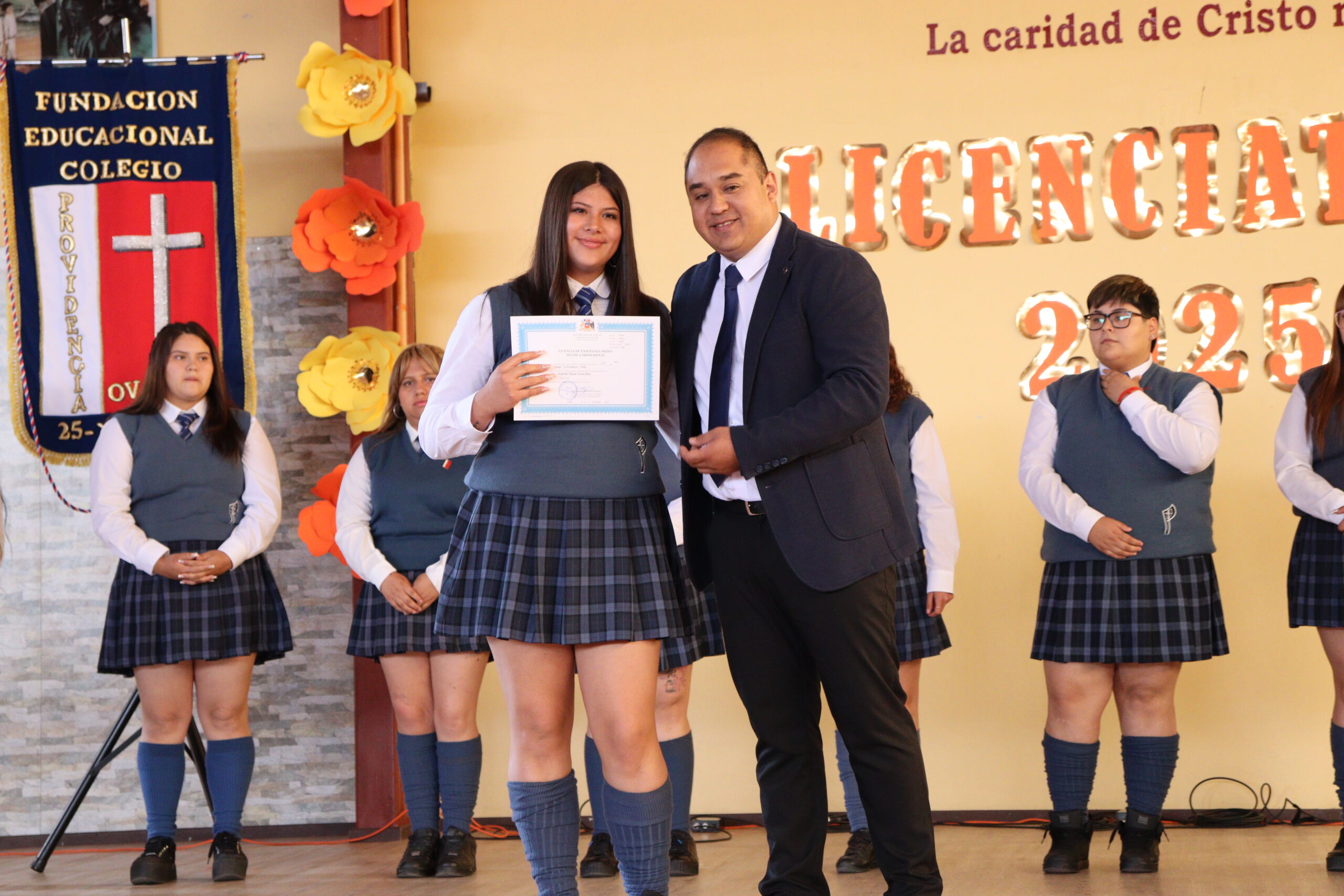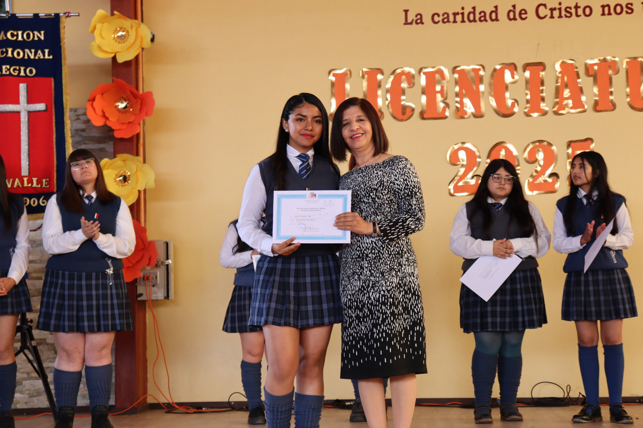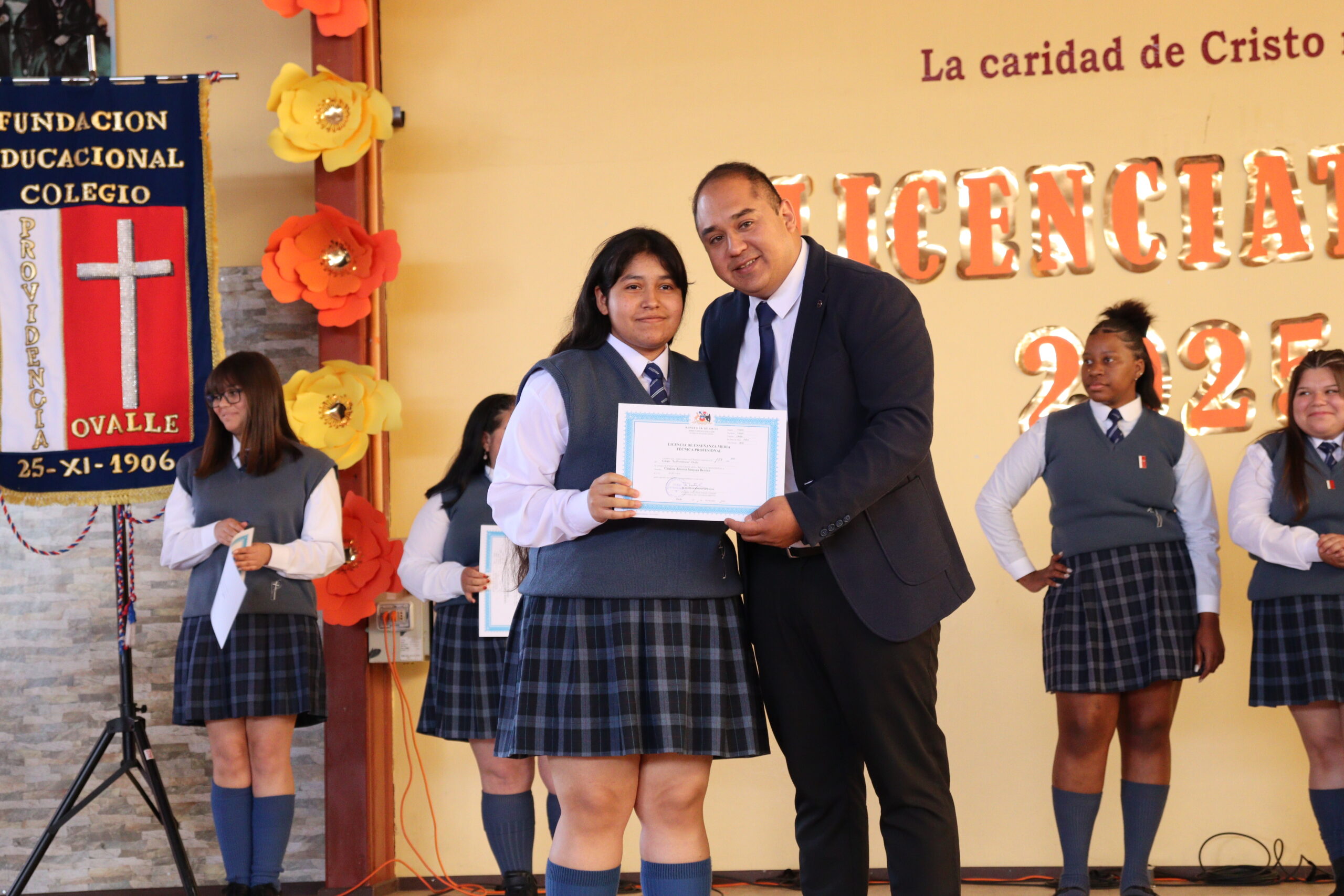 Desde muy temprano, estudiantes y familias llegaron a nuestro establecimiento para compartir la culminación de una etapa inolvidable: el término de la enseñanza media de la Generación 2025. La ceremonia reunió a docentes, asistentes de la educación, miembros del directorio de la Fundación Educacional y a las Hermanas de la Providencia, Hna. María Eugenia Arancibia y Hna. Elvira Letelier, quienes acompañaron este momento especial para nuestras 218 estudiantes.