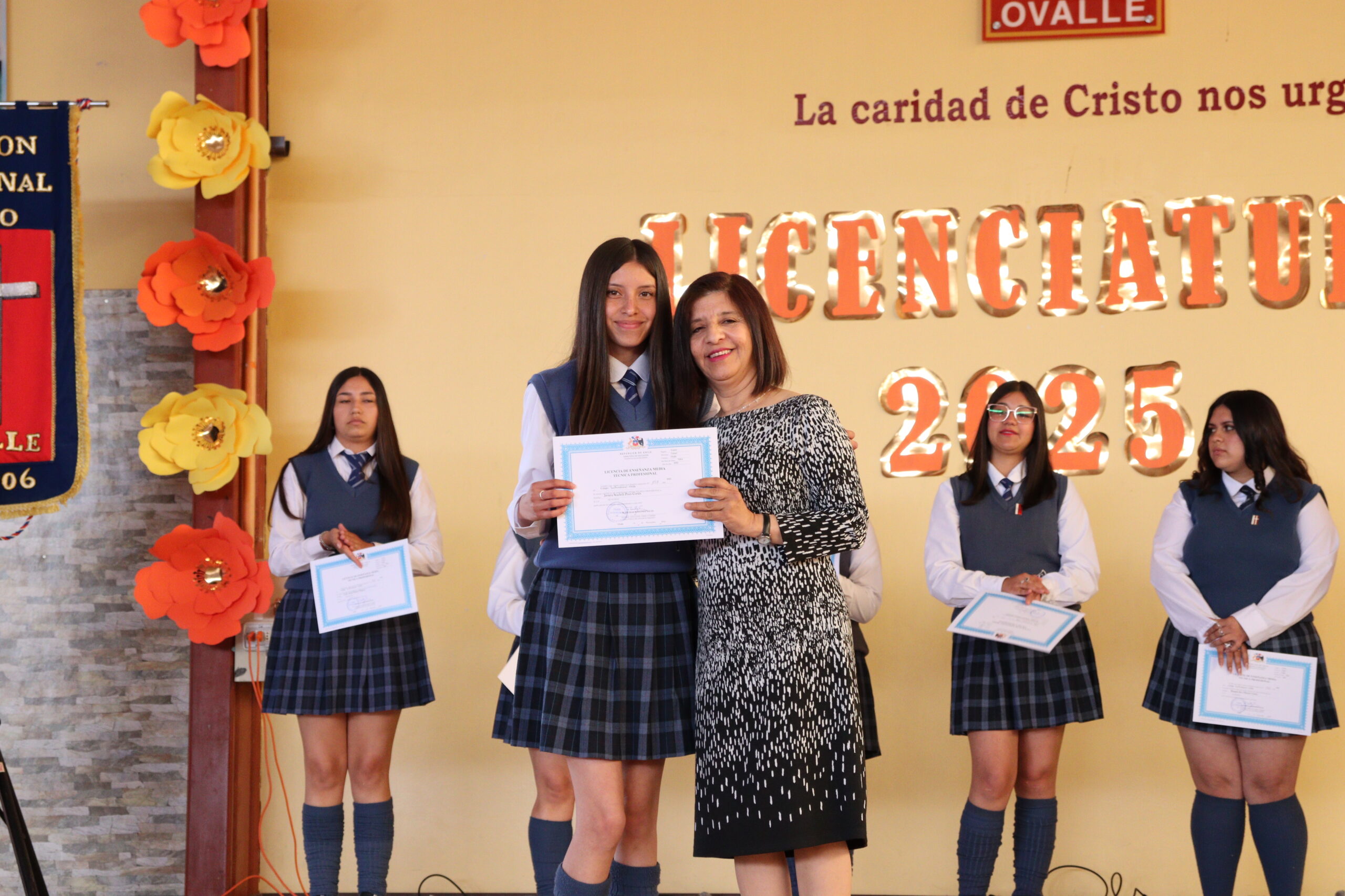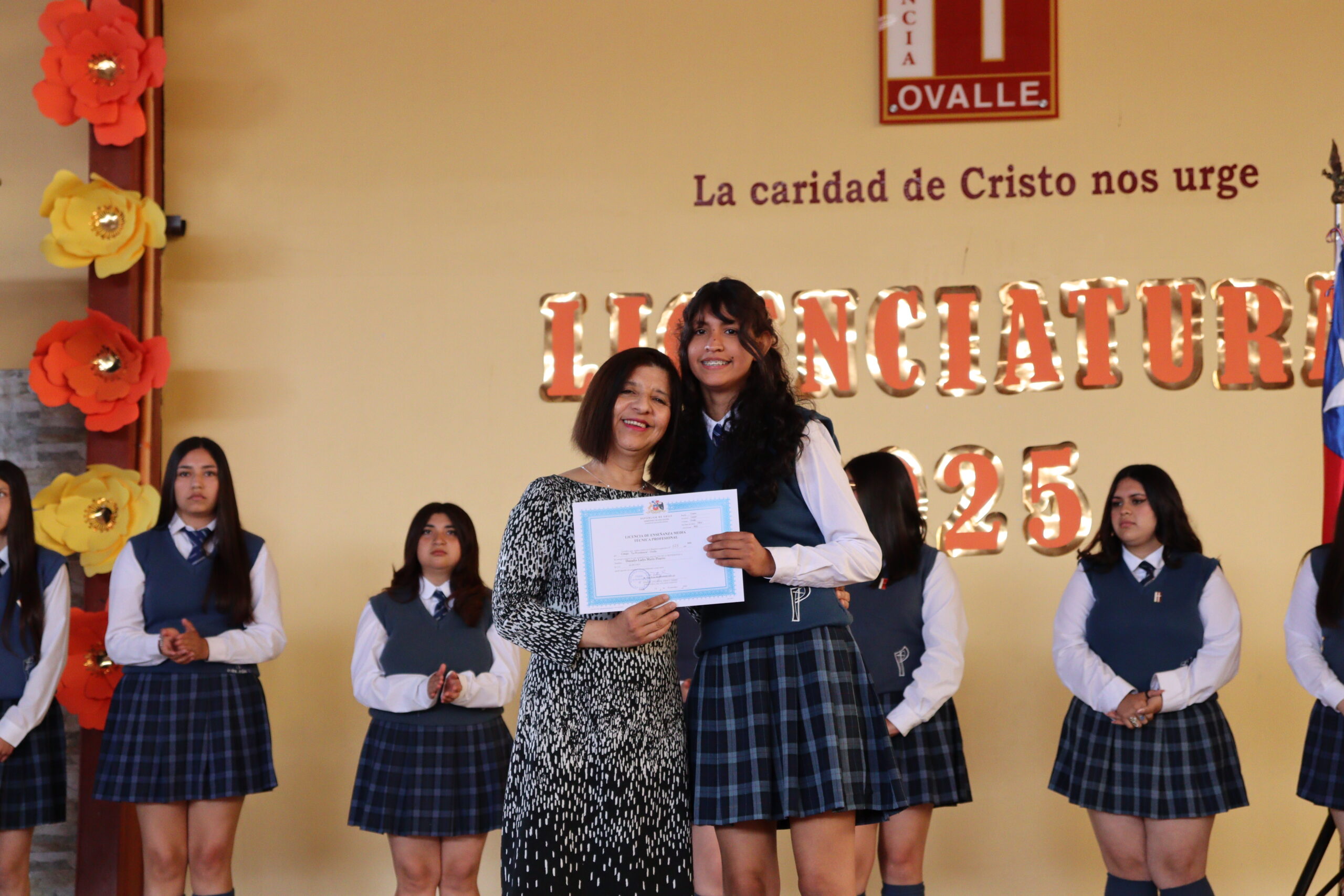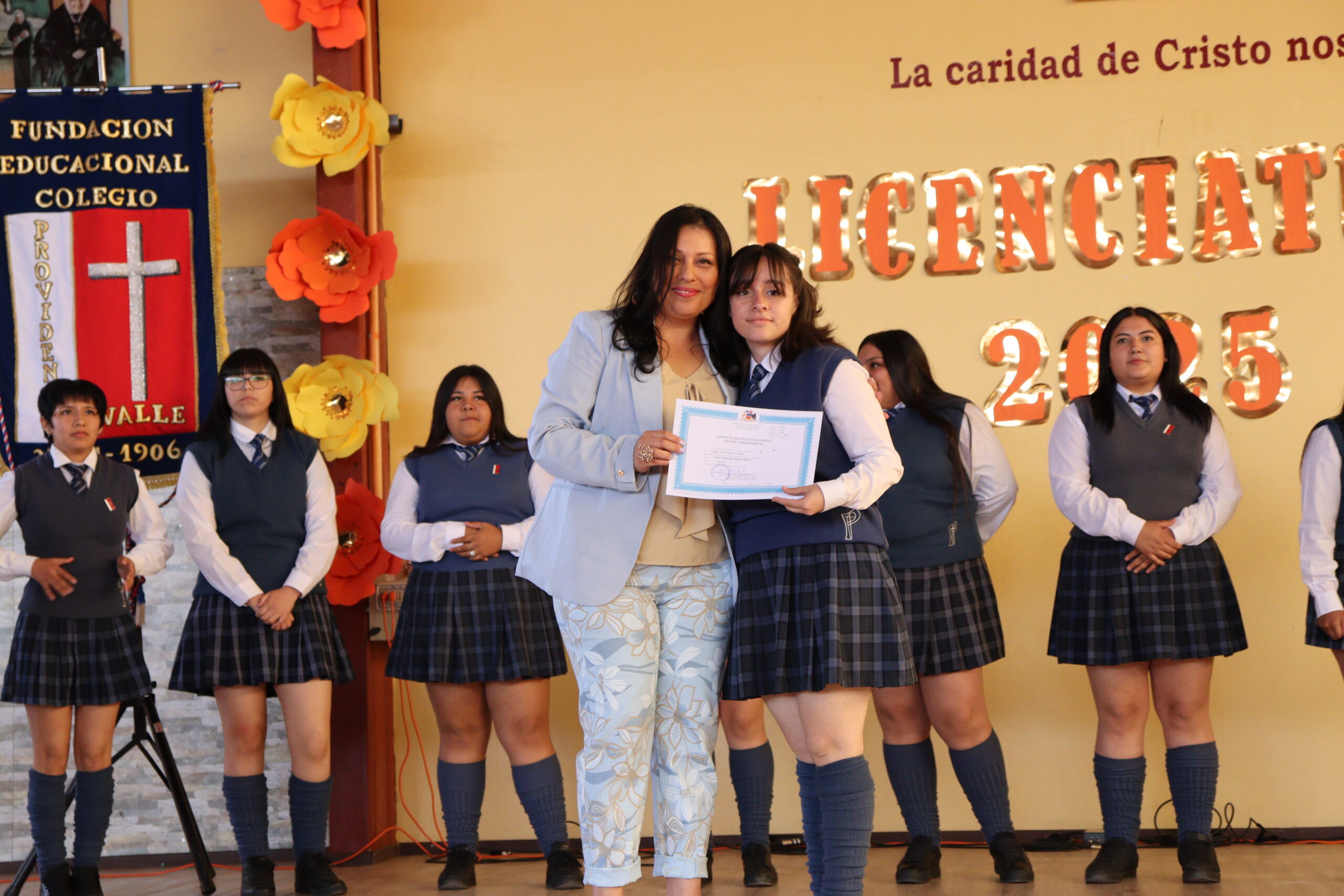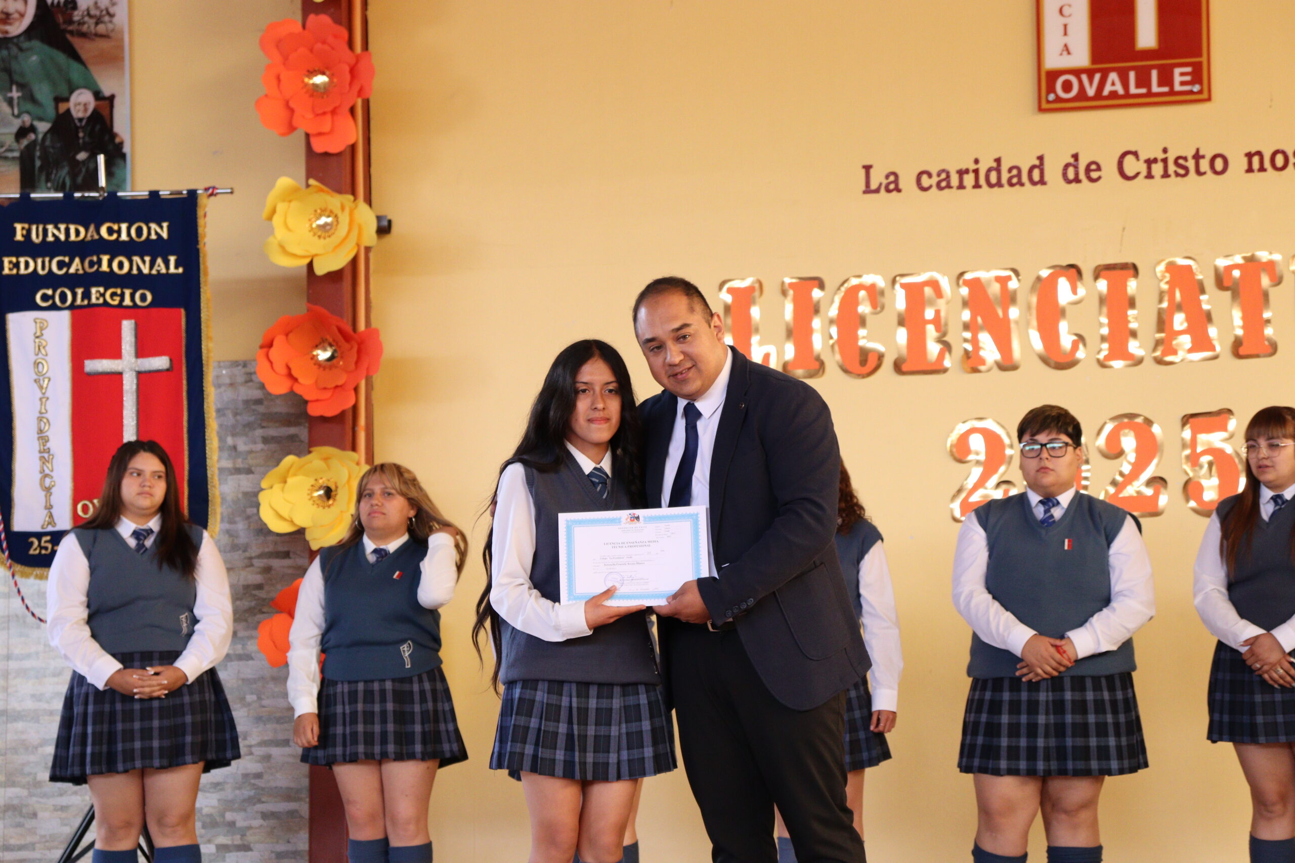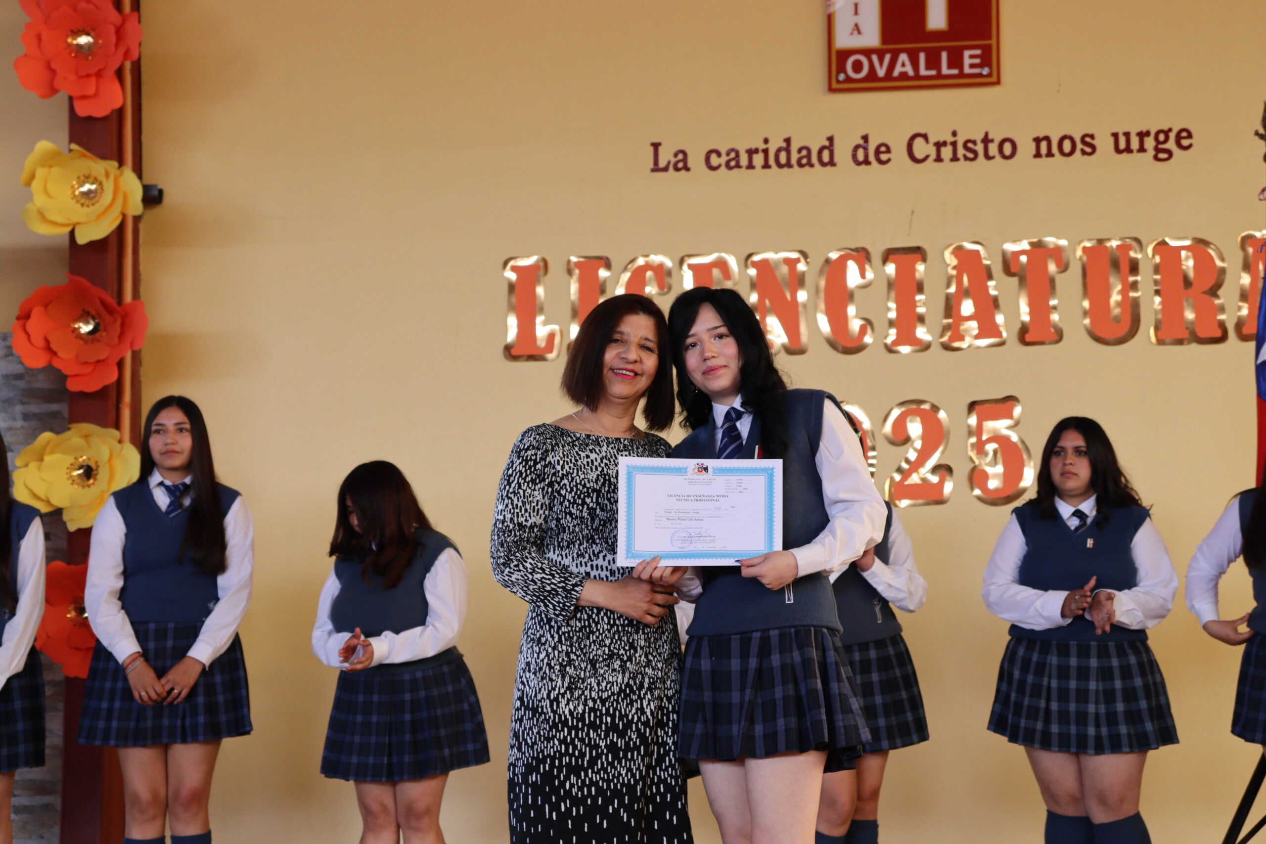 Desde muy temprano, estudiantes y familias llegaron a nuestro establecimiento para compartir la culminación de una etapa inolvidable: el término de la enseñanza media de la Generación 2025. La ceremonia reunió a docentes, asistentes de la educación, miembros del directorio de la Fundación Educacional y a las Hermanas de la Providencia, Hna. María Eugenia Arancibia y Hna. Elvira Letelier, quienes acompañaron este momento especial para nuestras 218 estudiantes.