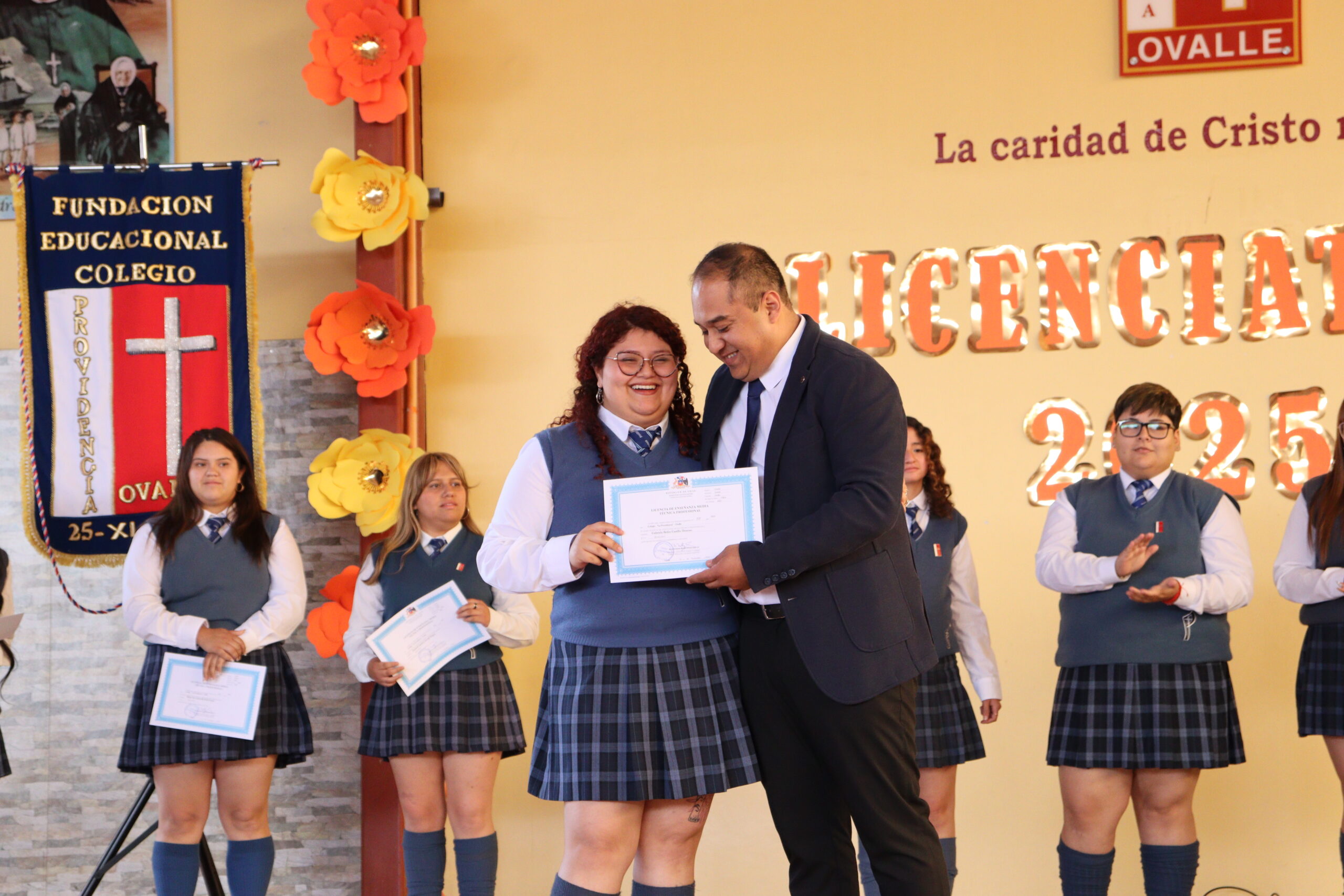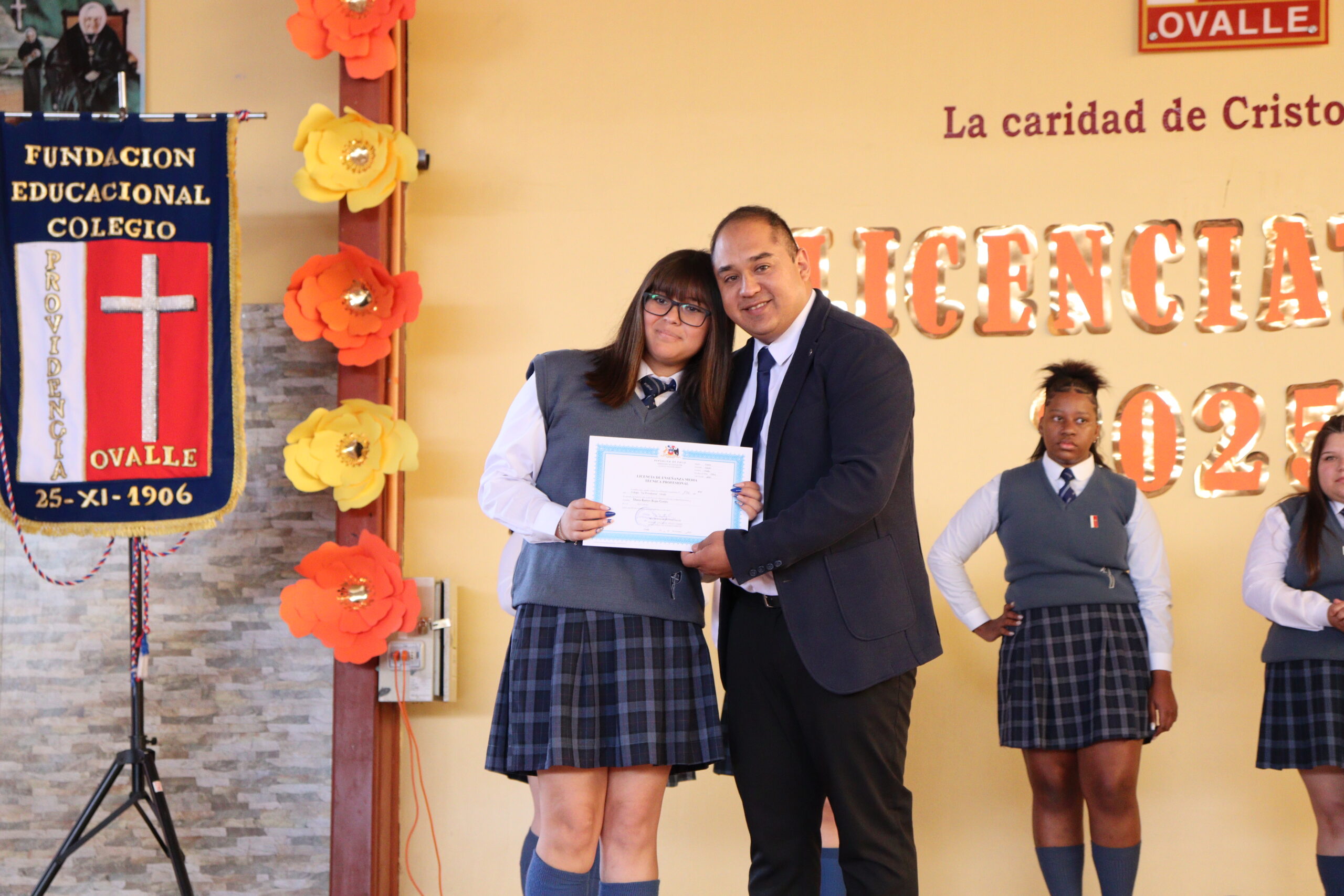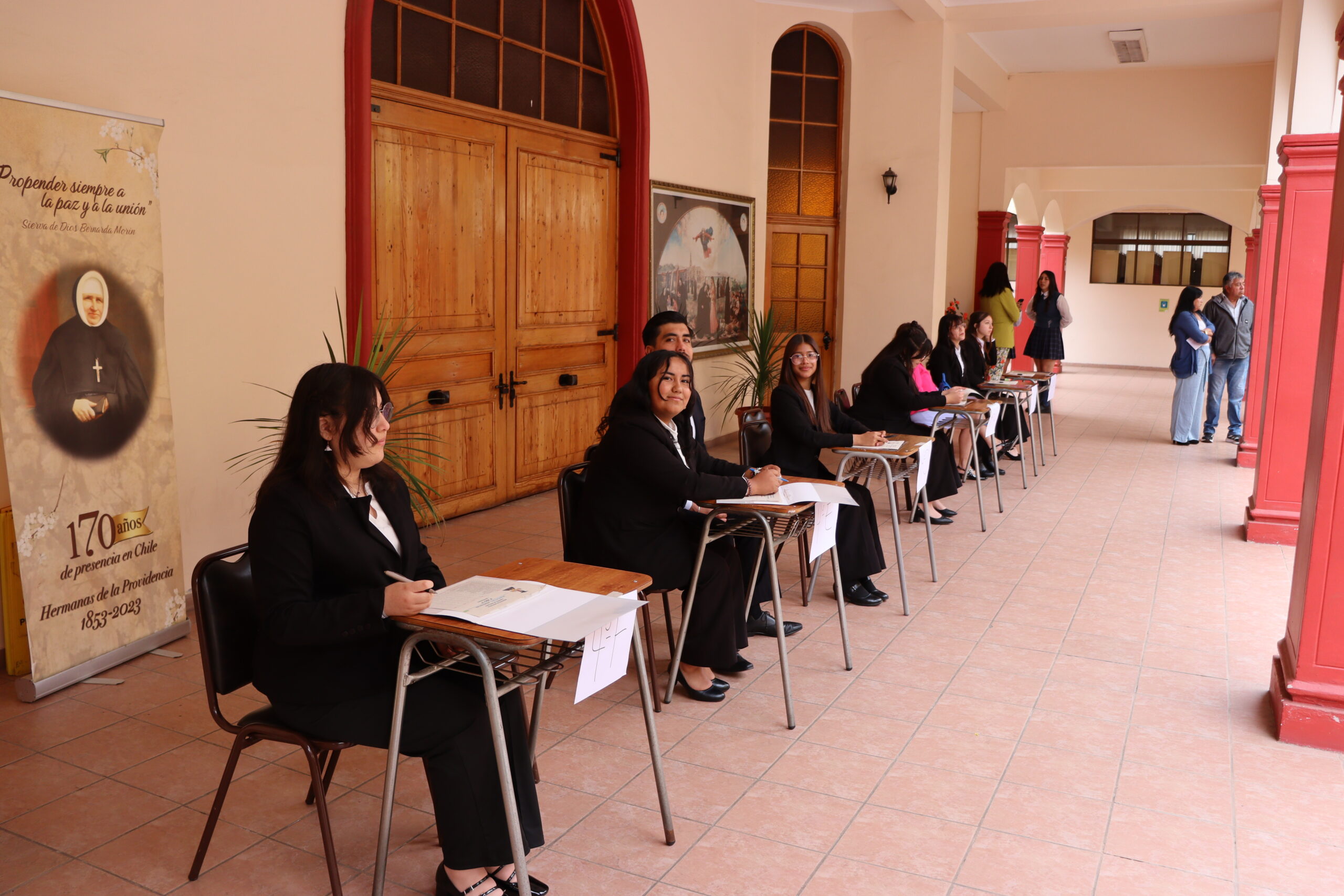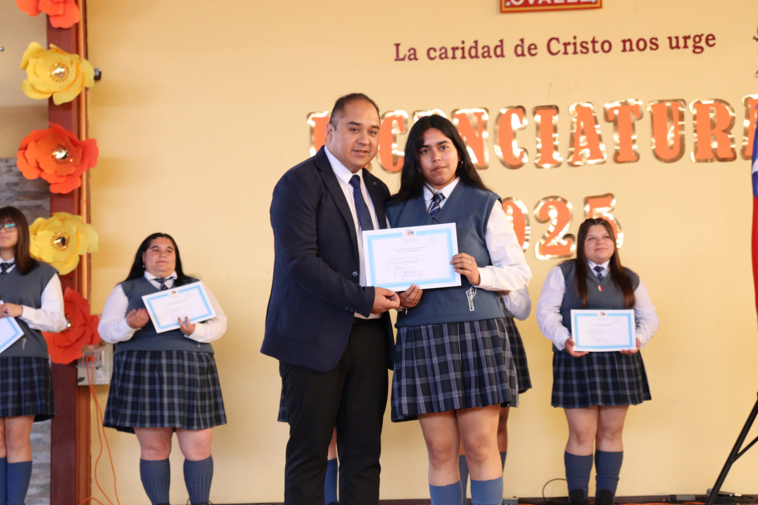 Desde muy temprano, estudiantes y familias llegaron a nuestro establecimiento para compartir la culminación de una etapa inolvidable: el término de la enseñanza media de la Generación 2025. La ceremonia reunió a docentes, asistentes de la educación, miembros del directorio de la Fundación Educacional y a las Hermanas de la Providencia, Hna. María Eugenia Arancibia y Hna. Elvira Letelier, quienes acompañaron este momento especial para nuestras 218 estudiantes.
