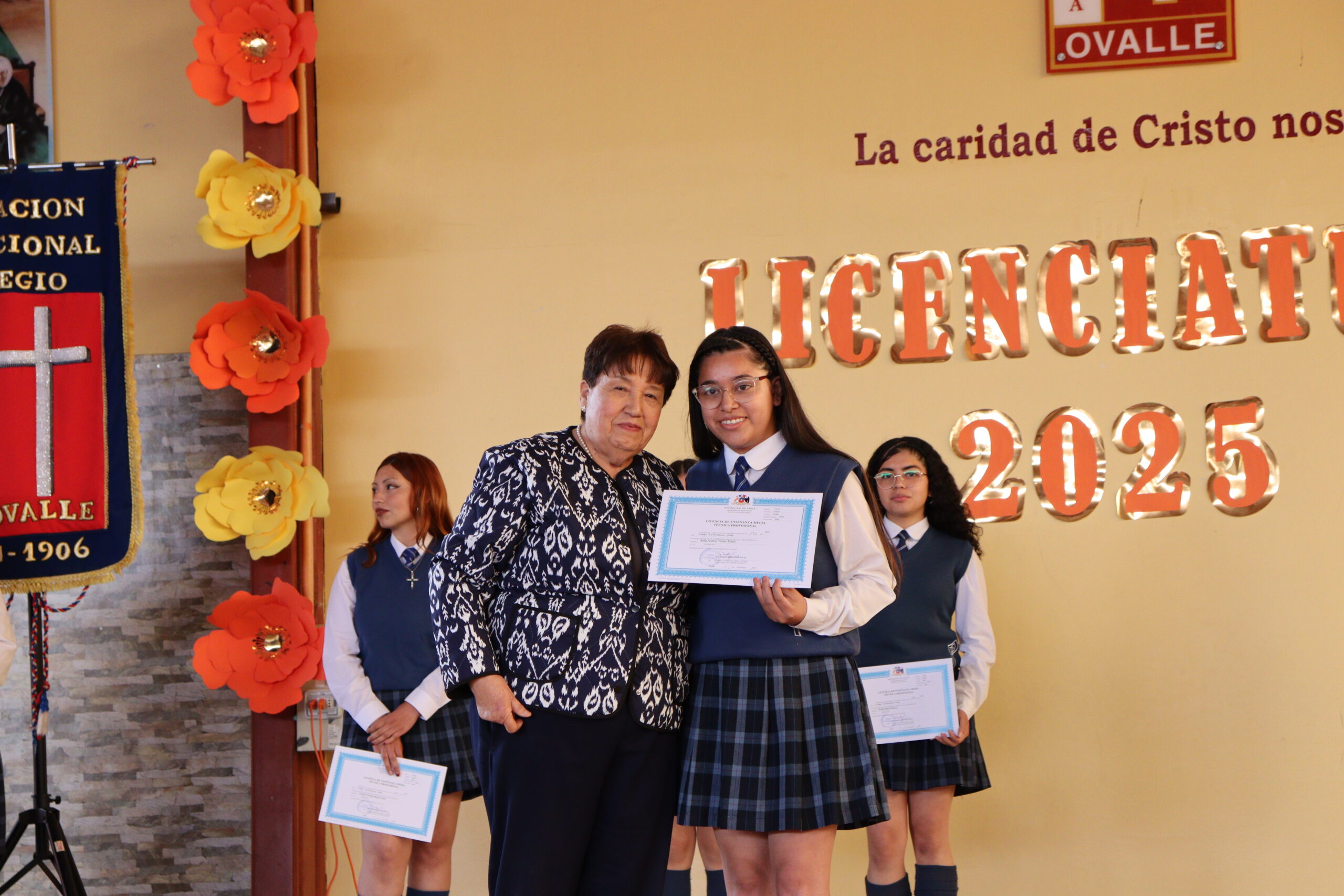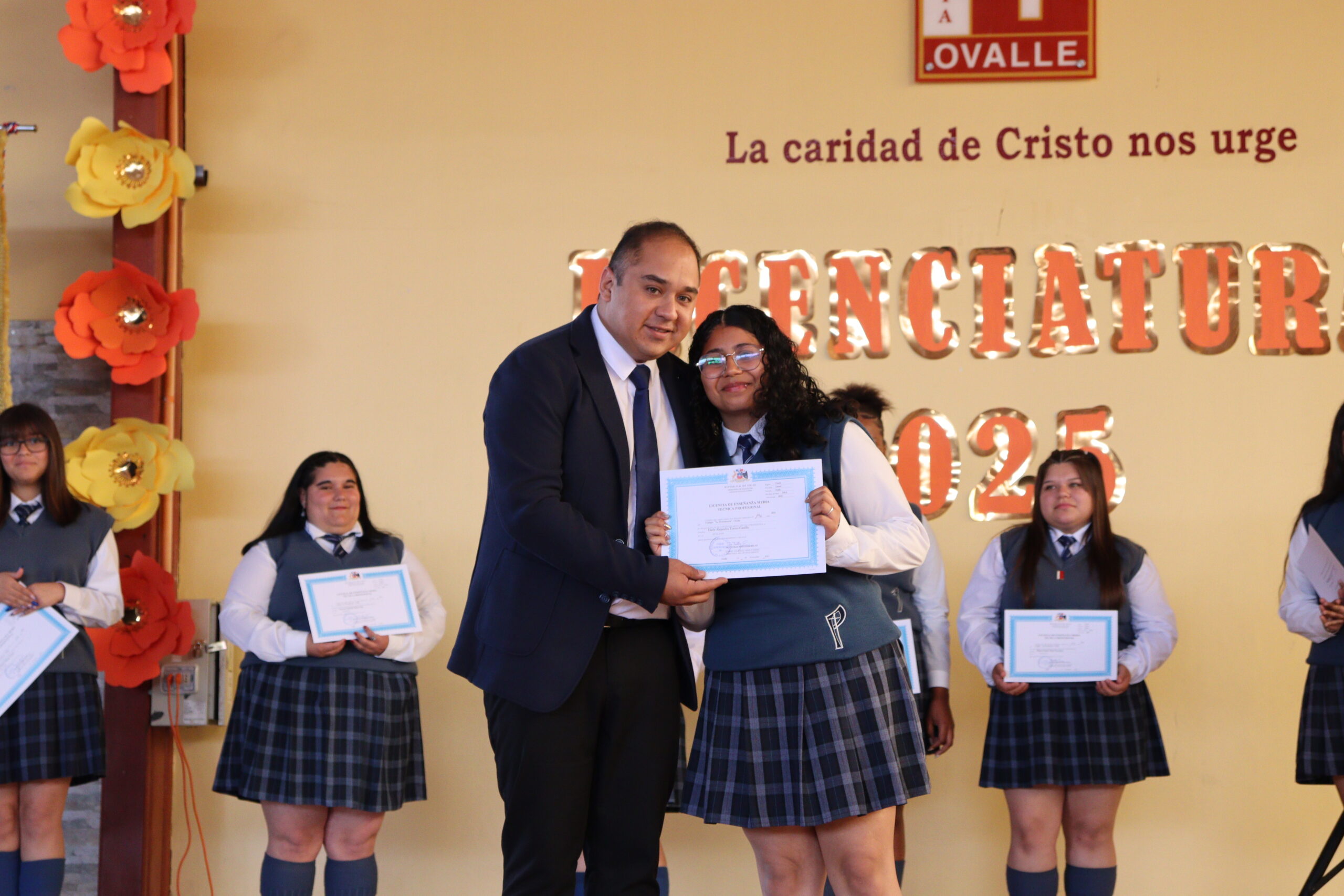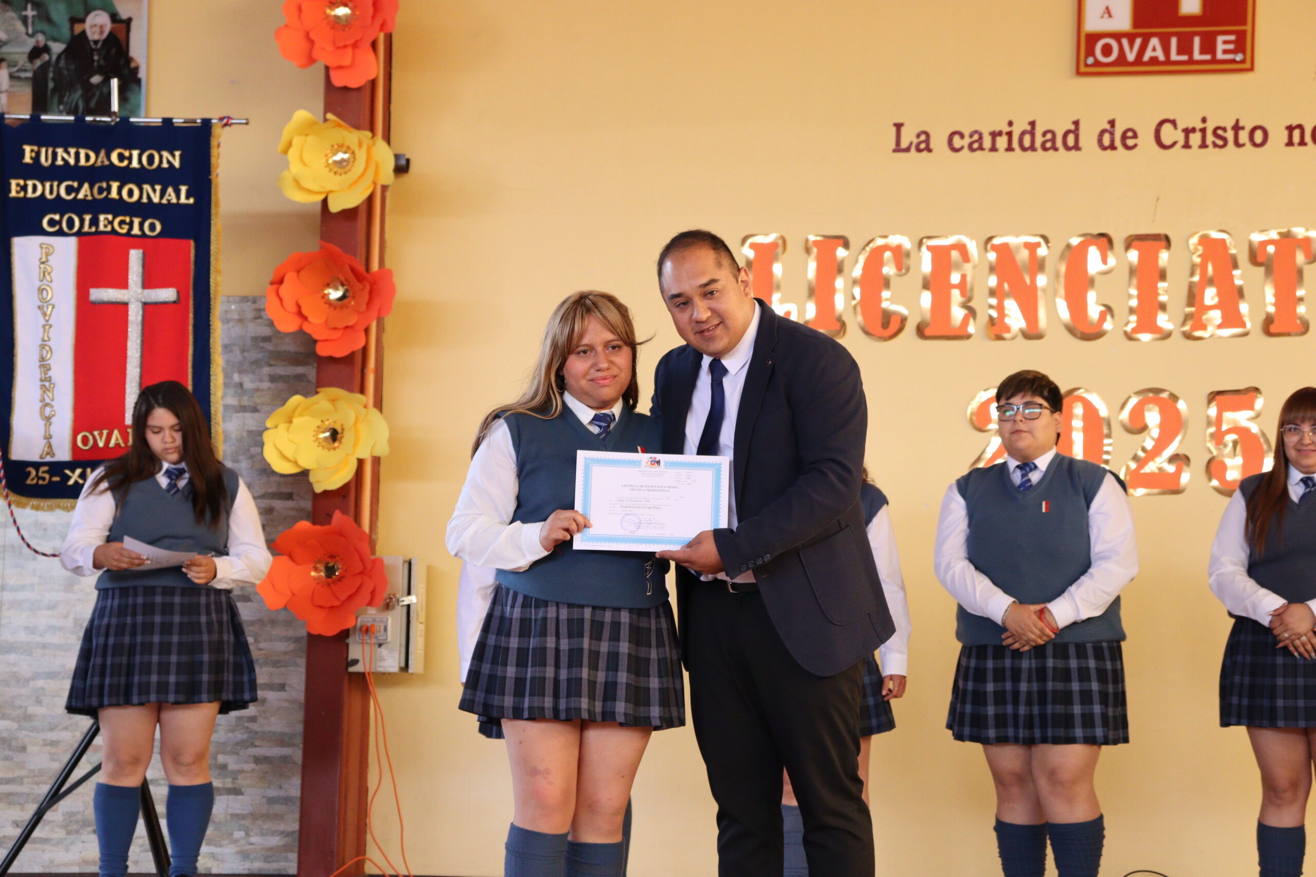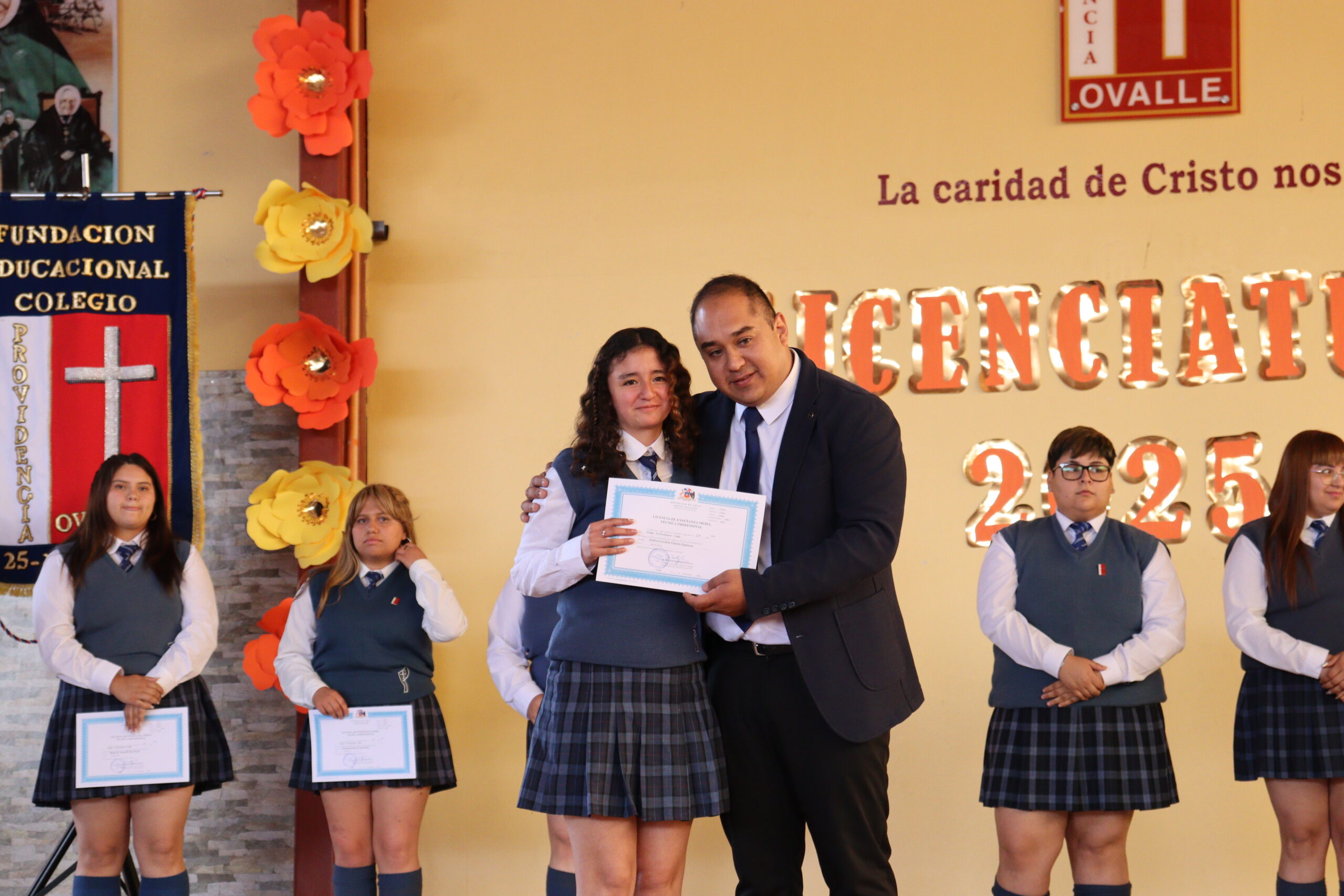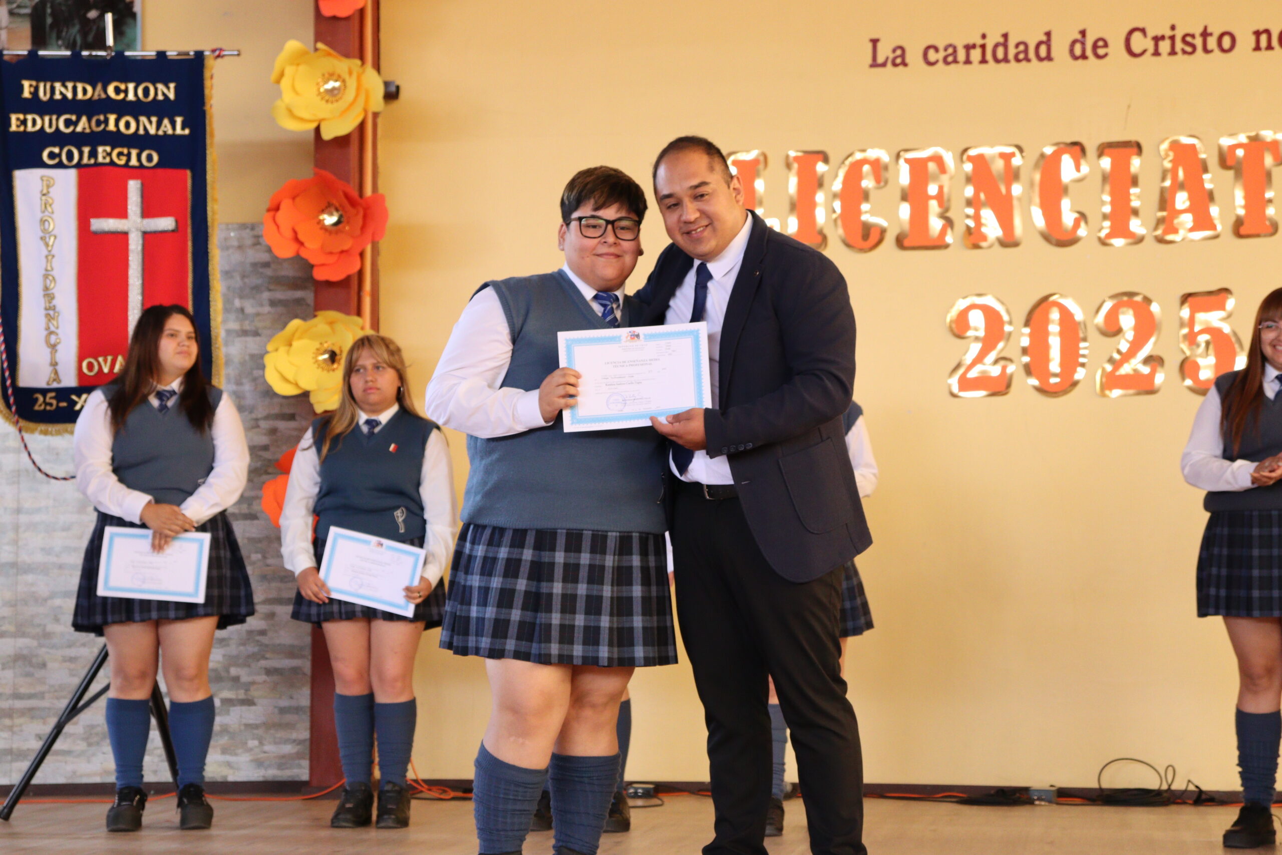 Desde muy temprano, estudiantes y familias llegaron a nuestro establecimiento para compartir la culminación de una etapa inolvidable: el término de la enseñanza media de la Generación 2025. La ceremonia reunió a docentes, asistentes de la educación, miembros del directorio de la Fundación Educacional y a las Hermanas de la Providencia, Hna. María Eugenia Arancibia y Hna. Elvira Letelier, quienes acompañaron este momento especial para nuestras 218 estudiantes.