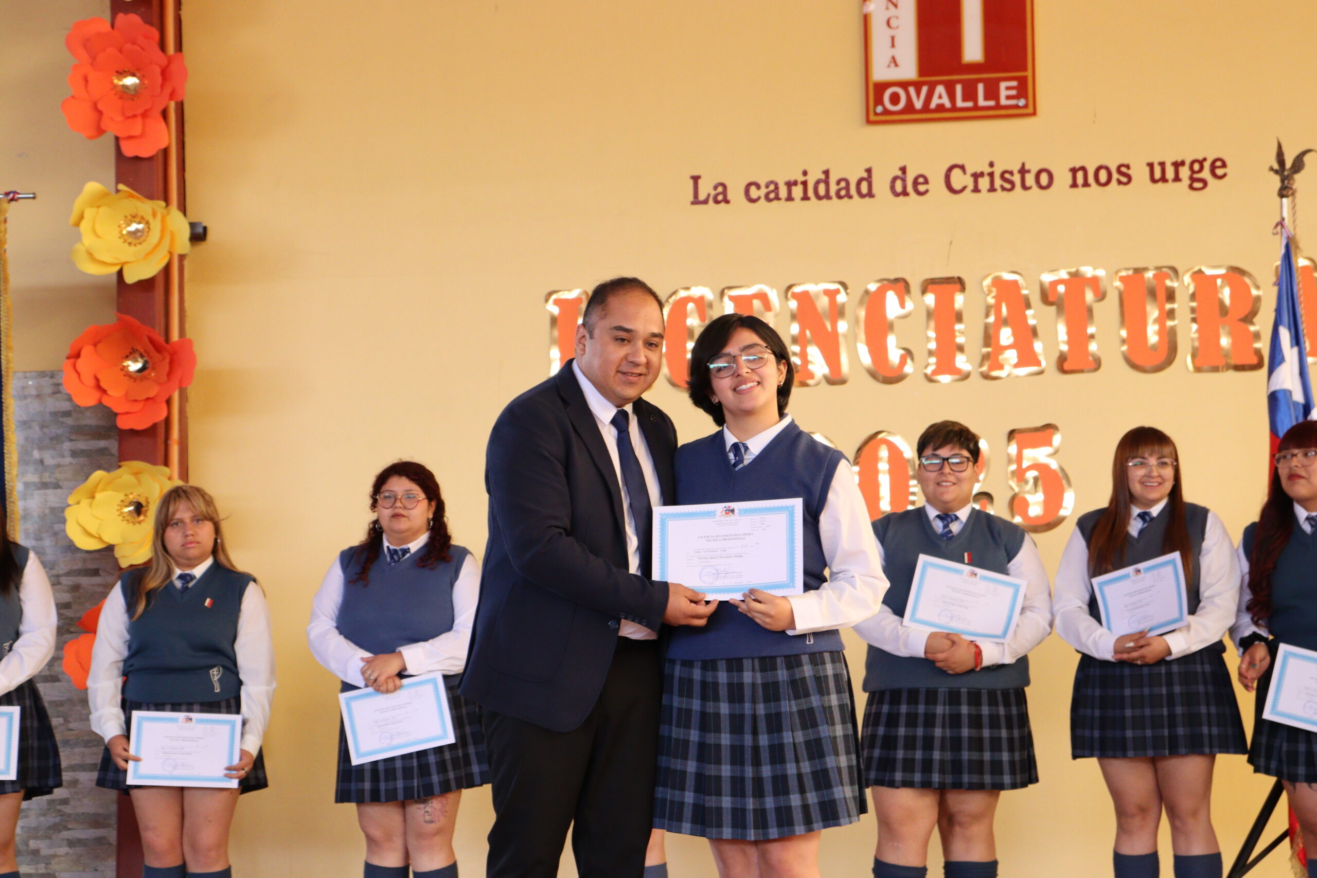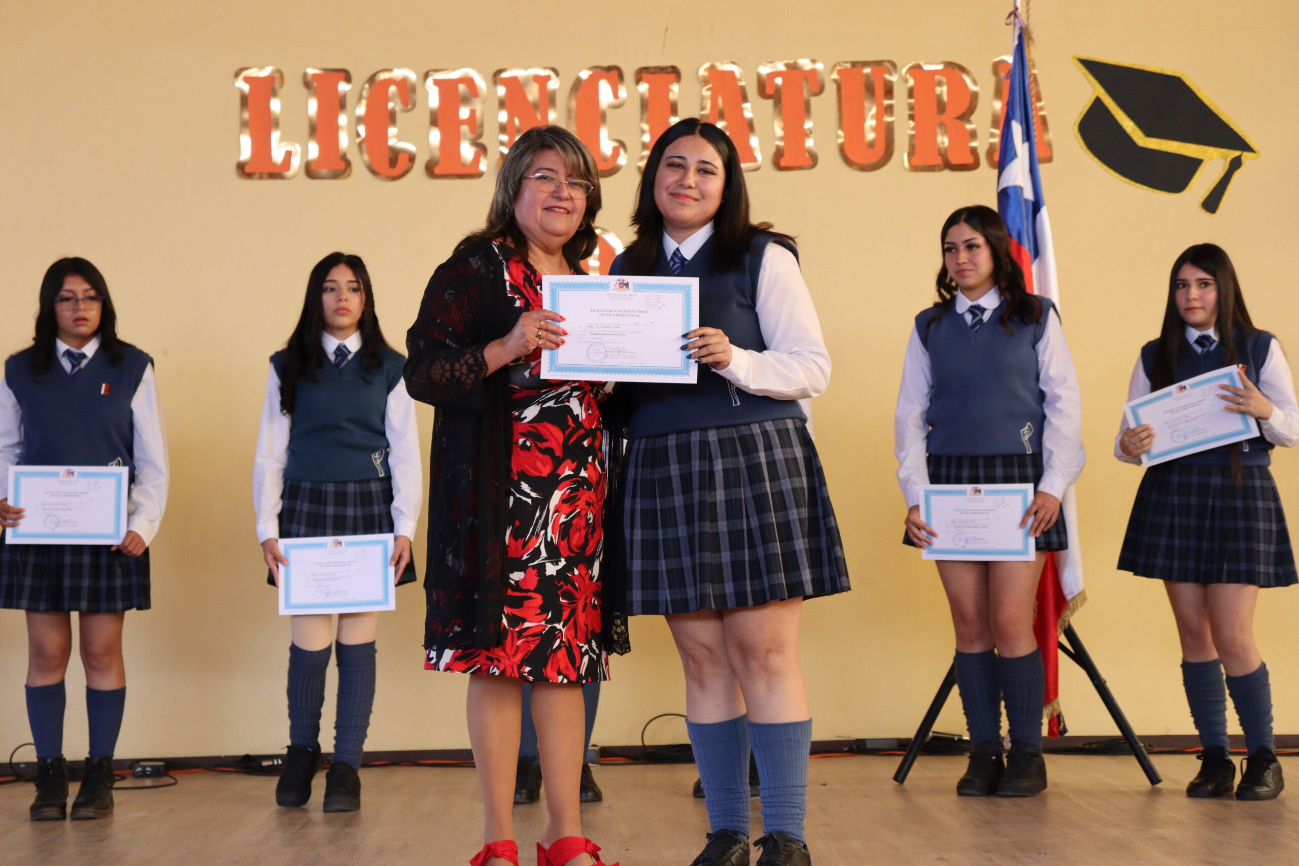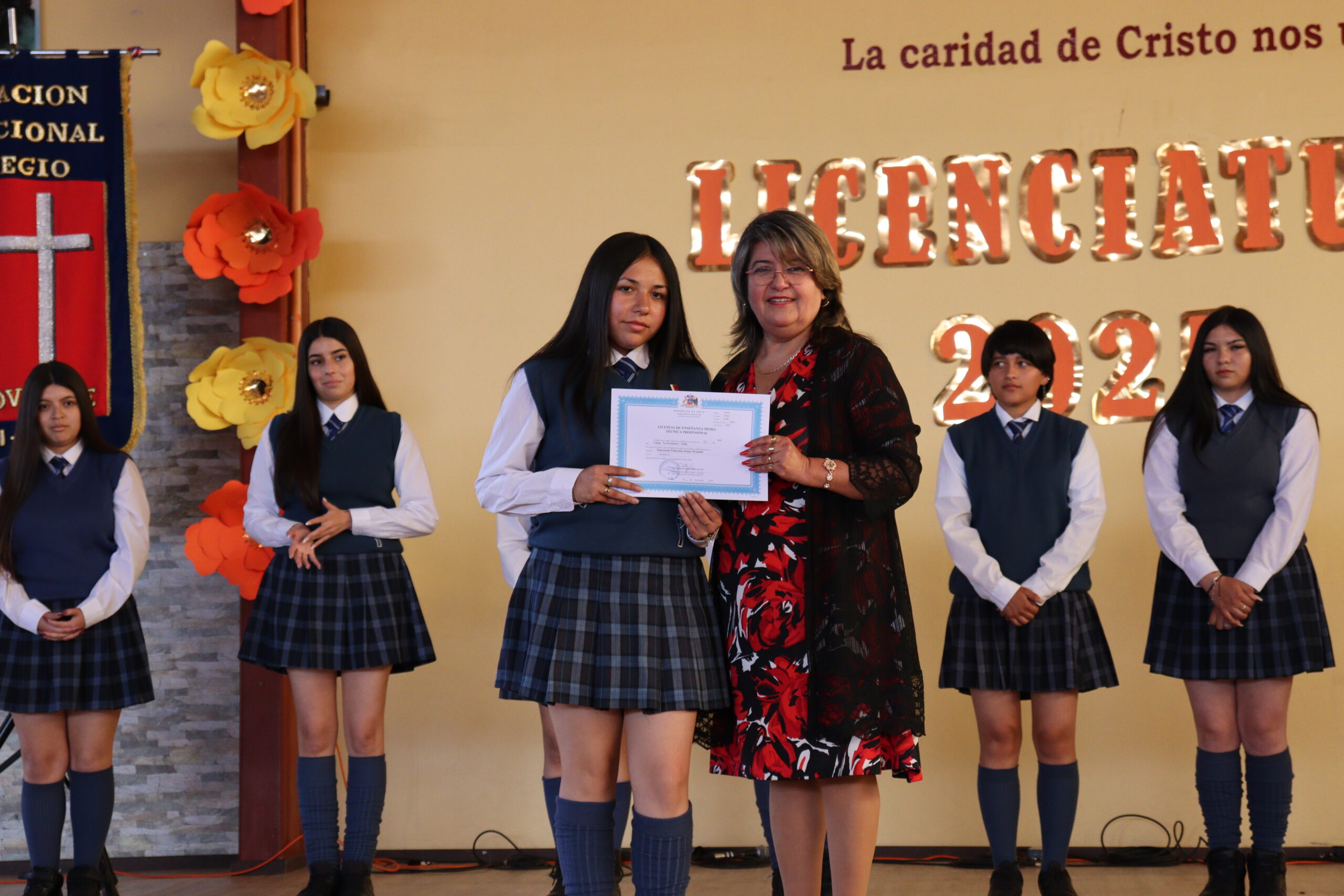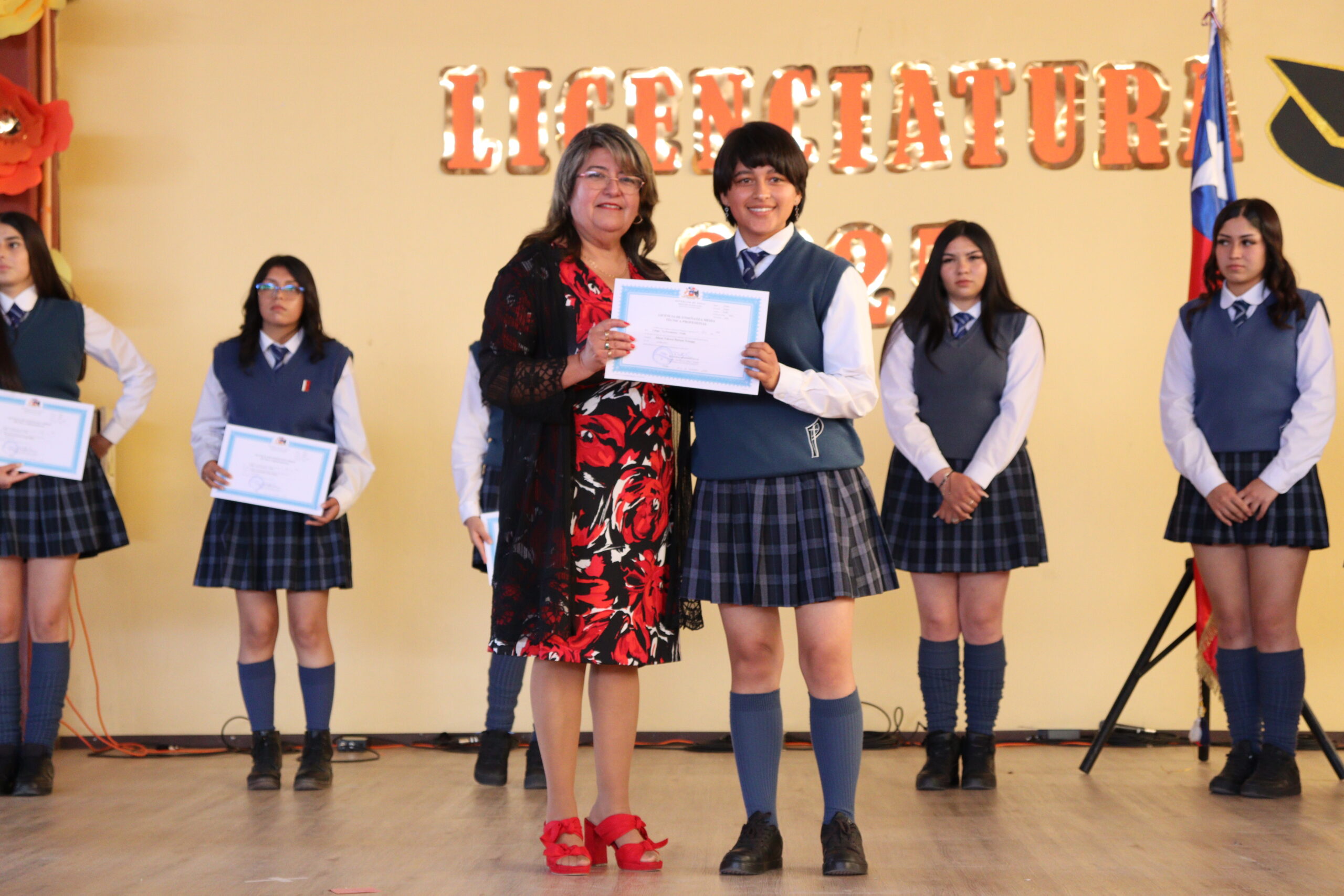 - Mejor rendimiento académico: Antonella Rojas Araya (4°A), Ana Carvajal López (4°B), Kathalina Anabalón Rojas (4°C), Licett Zarricueta Castillo (4°D), Zayoret Núñez Araya (4°E) y Scarleht Pinilla Campusano (4°F).